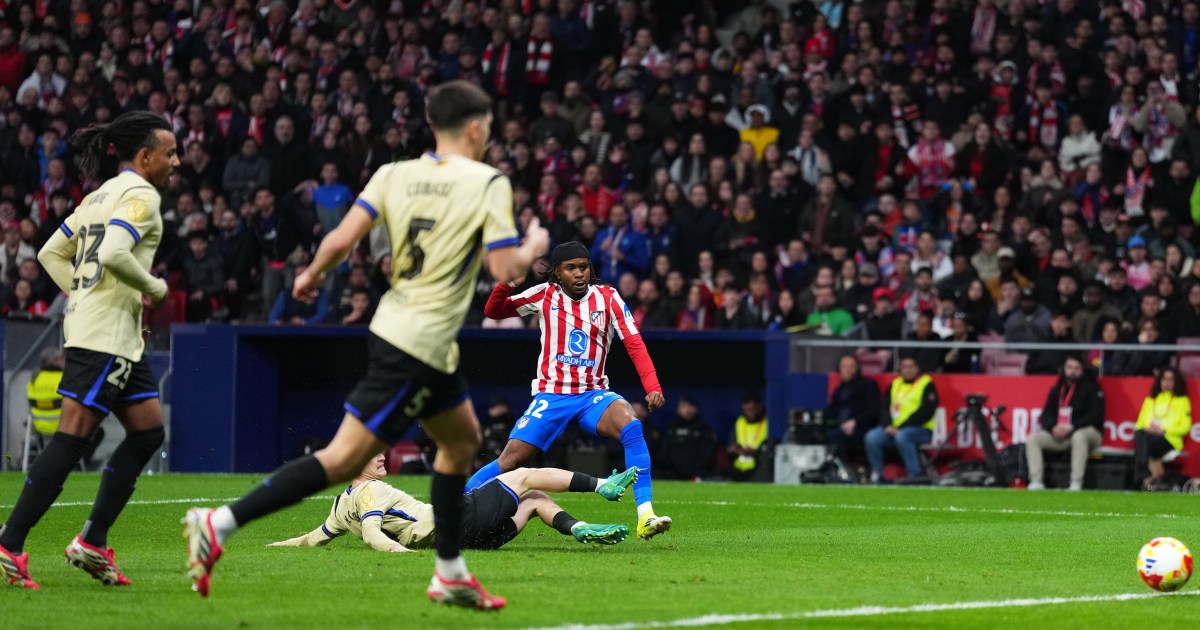 Atletico Madrid tear the holders apart with four first-half goals in the first leg of their Copa del Rey semifinal. Share Save Atletico Madrid tore Barcelona apart with four first-half goals to secure a 4-0 victory in the first leg of their Copa del Rey semifinal, leaving the holders staring at a near-impossible task in the return match. Diego Simeone’s side needed only 45 minutes at home to seize control of the tie on Thursday, capitalising on a calamitous early error, before carving Hansi Flick’s team open at will to move to the brink of April’s final in Seville. Atletico took the lead in the sixth minute in extraordinary fashion. Barcelona defender Eric Garcia rolled a routine pass back, but goalkeeper Joan Garcia, already scanning upfield, allowed the ball to slip under his boot and towards goal. His desperate dive came too late as it had crossed the line. Eight minutes later, they doubled their lead with a flowing move. Ademola Lookman collected a long ball on the left and fed Julian Alvarez, who switched play to Nahuel Molina. The right back slipped a clever pass inside for Antoine Griezmann, who controlled smoothly and guided the ball into the bottom corner. The third goal, in the 33rd minute, was another counter. Giuliano Simeone drove down the right and crossed low to Alvarez, who squared for an unmarked Lookman to fire into the bottom corner. Flick reacted by sending on Robert Lewandowski in the 37th minute for Marc Casado. The change did little to stem the tide. Instead, Atletico struck again before half-time. Lookman and Alvarez combined once more, the Nigerian forward sliding a pass into the centre for the Argentinian to unleash a strike into the top corner from just inside the box. Atletico goalkeeper Juan Musso denied Fermin Lopez early in the second half as Barca searched for a lifeline before the March 3 return leg at Camp Nou. They thought they had one in the 52nd minute when Pau Cubarsi turned in a rebound from a free kick, only for the effort to be ruled out for offside after a lengthy VAR review lasting nearly six minutes. Atletico remained dangerous and nearly added a fifth late on. Substitute Alex Baena was racing through unmarked in the 86th minute when Garcia brought him down from behind. The referee initially produced a yellow card but upgraded it to a straight red after consulting the pitchside monitor. “It was crazy. Even more so against Barca,” defender Marcos Llorente told Movistar Plus. “The team did everything right. We stuck together at the back, we didn’t sit back, we pressed high up the pitch, we broke up the space really well. Everything went our way.” The winners of the tie will face Real Sociedad or Athletic Bilbao in the final. Real Sociedad hold a 1-0 advantage before their second leg in San Sebastian on March 4.