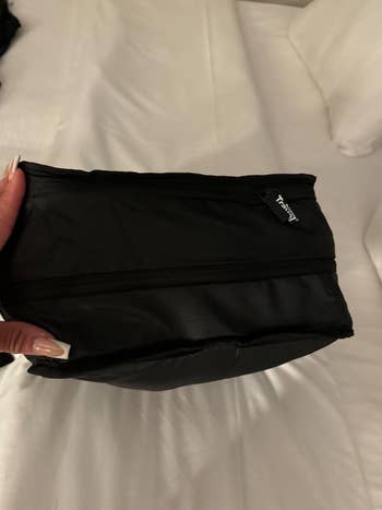 We hope you love our recommendations! While every product is independently chosen by our editors, BuzzFeed and our publishing partners may collect a share of sales or other compensation from the links on this page. You can read more about how our affiliate partnerships work in our Editorial Standards & Ethics Guide. These products are about to earn (and keep!) a place in your suitcase. Plus, the zipper compartment at the bottom can be used for putting all your dirty clothes in, so they don't get mixed with clean items. Promising review: "I just love it. I travel a lot. Now, I don’t have to hang anything up but my organizer. I can see what I pack and where everything is. Just love it. I can easily fit seven days' worth of outfits and three pairs of shoes in a carry-on suitcase. Just great." —Amazon Customer Get it from Amazon for $27.99+ (available in two sizes and five colors). Promising reviews: "I saw this on TikTok and purchased it for my trip! Got back home and use it in my own bathroom. I love it that much! Best Amazon purchase I’ve ever made!" —Amazon Customer "I bought this bag specifically for when I travelled across the country with my two small children. One of whom is a medically complex child. I put ALL of my toiletries, ALL their toiletries, and ALL of my son's medications in this bag. Everything fit perfectly, and nothing was broken. The hanger is durable and carried lots of weight when it hanged on the back of the bathroom door. I bought the largest size, and it was 100% worth what I paid for. If you are traveling by yourself, I would recommend the smaller size. But if you are packing for others or just pack heavy, definitely buy the larger size. I absolutely loved it! And it was very compact in my suitcase. Very sturdy as I carried it. I HIGHLY recommend buying." —Hannah Funderburk Get it from Amazon for $17.99+ (available in two sizes and 10 colors). This contraption provides 360-degree support thanks to a wraparound design and clips that connect it to your seat's headrest. Promising review: "Just took a 15-hour flight with this travel pillow, and this was the best travel pillow by far. I've used inflatable and memory foam neck pillows before; the major problem is that they don't secure your head and torso, so either your muscles have to hold up your body, or your head and torso will end up swinging around, and both are disruptive to sleep. With this travel pillow, my muscles can relax, and the padded eye mask will hold up my head and torso. One minor downside is that the pillow needs to be mounted on your seat's headrest; if someone bumps your seat, it can be disruptive, but this rarely happens. Its size and weight are also much less than memory foam neck pillows, and I don't have to bring an extra eye mask, so it is very travel-friendly." —Sky Get it from Amazon for $18.99+ (available in nine colors). Promising reviews: "I would absolutely recommend this for anyone who travels, especially internationally, because of all the extra costs for going over in weight. We were among the few people in line who didn’t need to rearrange our luggage at the airport to meet the weight requirements in Milan. So easy to pack and take with you." —Addison "This little device was well worth the money spent. It saved us a lot of money on our flight home since we knew the weight was over and could pre-purchase the overage in the app instead of paying double at the airport. I’ll never travel without it!! Very easy to use." —Michael Ellis Get it from Amazon for $9.45+ (available in four colors and also as a two-pack). PS: The genius Airplane Pocket is a small biz! Check out a TikTok of the Airplane Pockets tray table cover in action. Here's what BuzzFeeder Emma Lord has to say: "I used this on a round-trip from NYC to Tokyo, both with connecting flights in Canada, and cannot sing its praises enough. It fit all four of the different tray tables I used it on and was so ridiculously handy for keeping track of all my littler odds and ends like AirPods, the plane's headphones, earplugs, a sleep mask, a book, gum, a scrunchie, and little snacks. The hanging end of it easily tucked into the built-in sleeve of the seat in front of me for takeoff, and when other passengers needed to scoot past me in my aisle seat. Usually, I feel like a hot mess and get frustrated rooting around in the grimy sleeve for my stuff, and this was such a refreshing solution! Several flight attendants even asked where I got it to buy one for themselves!" Promising review: "Every time I whip this thing out, someone leans across the aisle, asks what it is, and then makes a note to buy one when they get home. On a long-haul flight, it's simply a must for organizing your reading materials, headphones, sanitizing wipes, etc. My favorite use for this thing is when I've fallen deep asleep along the way, only to wake up in a fog and in a rush to deplane. Instead of having to hastily dig things out of the seat back pocket, I just slip the entire thing off of the tray table, pop it in my bag, and worry about sorting things out when I get to where I'm going — safe in the knowledge that I didn't leave anything behind. Love it!" —justinglen It's also been known to work for postoperative and chemotherapy-induced nausea. It applies pressure on your wrist to help ~restore balance~. Read more about acupressure and nausea at Memorial Sloan Kettering Cancer Center. Promising review: "I'm eight weeks pregnant and have had morning sickness nonstop every single day, and it has made my appetite go away so much that I feared for my baby's health. I needed a quick fix so I could eat again. It worked amazingly. I went to Denny's and ate my weight in pancakes! It feels so good not to feel nauseous all the time." —Kindle Customer Get it from Amazon for $8.19+ (available in six colors). Promising review: "I finally gave up and bought a charging station for several devices. I travel a lot, and taking turns charging my iPhone, A