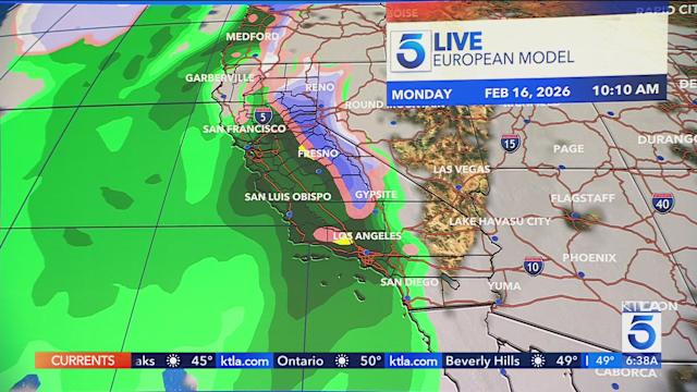 Southern California will enjoy one more day of sunny, ideal weather conditions before the next storm arrives, trading sunshine for clouds, cooler temperatures and rain. Meteorologists expect a Pacific storm system to sweep into the region late Sunday, bringing light to moderate rain across Los Angeles, Ventura, Orange and San Bernardino counties. “The latest ensemble solutions are converging on at least 1 to 3 inches of rain for the coast and valleys with the first system Monday and 2 to 5 inches in the mountains,” the National Weather Service said. Road ponding and flooding is possible. Light showers are likely to begin in northwest San Luis Obispo County by Sunday afternoon, spreading into SoCal by the evening. Highs will cool into the 60s across the region. Forecasters say two upper-level low pressure systems will move through region in the first part of the week. The first will produce the highest rainfall totals, with hourly rainfall rates possibly reaching 1 inch. Rain intensity will ease Monday night into Tuesday, though scattered showers will continue. Meteorologists expect the wettest window to stretch from Sunday night through Monday morning, with showers lingering well into midweek. Copyright 2026 Nexstar Media, Inc. All rights reserved. This material may not be published, broadcast, rewritten, or redistributed. For the latest news, weather, sports, and streaming video, head to KTLA.