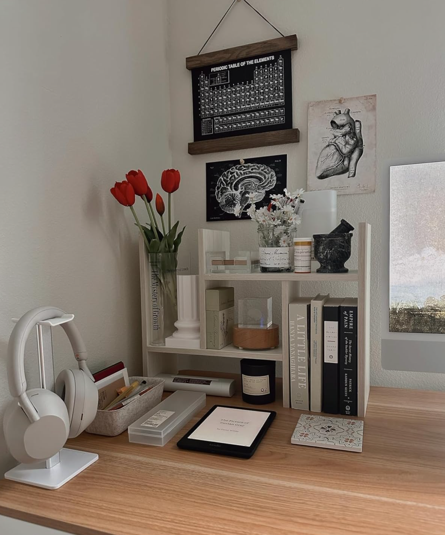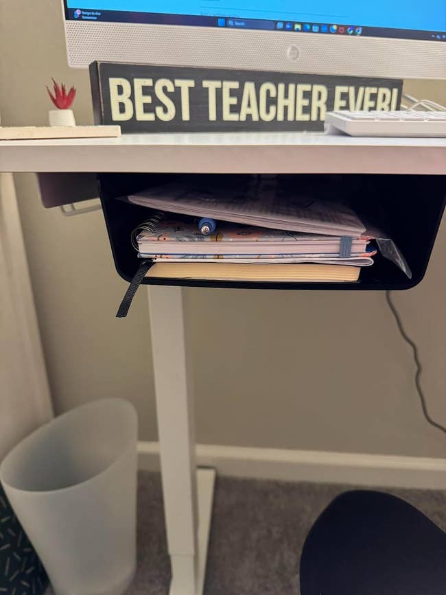 We hope you love our recommendations! While every product is independently chosen by our editors, BuzzFeed and our publishing partners may collect a share of sales or other compensation from the links on this page. You can read more about how our affiliate partnerships work in our Editorial Standards & Ethics Guide. Cute and organized > messy and dysfunctional. Promising review: "My desk was always a disaster because of my unorganized stacks and my husband’s unorganized stuff. I ordered one to help me, and my husband ordered one for himself. Much better now. We also like the small drawer that I use for paper clips, rubber bands, etc. It was so easy to assemble that I put them both together." —Dream Catcher Get it from Amazon for $24.87+ (available in three colors). Promising review: "This has streamlined my charging and power needs. Its vertical design and flat plug allow it to fit seamlessly in tight spaces, making it an ideal solution for desks and corners. With different outlets and USB ports, it efficiently charges several devices simultaneously. This tower power strip is a space-saving and functional addition that simplifies and enhances my power management." —James Get it from Amazon for $29.99+ (available in two colors and four cord lengths). Promising review: "Need something simple so I could plug in all the electronics at my desk. This is much nicer than just a standard power strip since it doesn't add any more cords to the chaos. Plugs are angled enough that they don't get in the way of you having several things plugged in. For reference I usually have my laptop charger, monitor, Google home mini, lamp, and phone charger plugged in at any given point in time. Night-light is a nice addition." —Samantha And since you're about to be making labels left and right, here's a refill for when you inevitably need a restock. Promising review: "I love how easy it is to use! You can customize your labels how you please on their app, or you can use their lite mode, and with those you can do simple labels. I really like how easy a quick it is. I think I'm going to label EVERYTHING in my house! LOL." —Stephanie Lopez Get it from Amazon for $26.40+ (available in five colors). Promising reviews: "It was time to declutter the office workroom counters, looking for replacements for the standard wire desktop file folder sorter that we were using to hold various forms. After endless days of looking at wall file folder pockets that were hideously expensive, I stumbled across this and instantly knew my search was over! This item is beautiful on the wall; it lays virtually flat vs. standard wall pockets that protrude. I wish I had more empty walls so I could buy more. And the price can't be beat." —MamaK "The colors are great, and they really help me keep my paperwork off my desk! I'm always moving from project to project, so this keeps everything neat and tidy. I really appreciate how I can bring everything home for weekend work and then hang it up behind my desk." —Shannon G. Get it from Amazon for $12.07+ (available in three colors). Promising review: "I've been looking at these for months and finally decided to buy one. Super happy with my purchase. I didn’t want to replace my entire work desk so I opted for this. The entire unit slides up and down easily. Plenty of room around the monitor for speakers, pens, notes, even a fan. easily assembly. Not too heavy. I’ve really enjoyed being able to stand at my desk. I’ve been struggling with lower back pain and standing more seems to be helping. I find myself wanting to stand more often than I thought." —halaly Get it from Amazon for $129.99+ (available in three sizes and in wood or particle board). Promising review: "Simple straightforward product. Easy to mount and run wires to a power source. Works awesome under my standing desk and adds additional USB support for my gear." —Amazon Customer Get it from Amazon for $17.99+ (clip the coupon on the product page to get it for $12.99+; available in four colors). Promising review: "I have a few papers that I need for reference while I’m working, but not enough to justify needing an entire file cabinet to store them. This is such a cute way to keep things handy without making my desk look super cluttered. It’s part desk decor, part organization system." —Paige Get it from Amazon for $15.99+ (available in three colors). Promising review: "This desk drawer is a great addition to your desk providing extra storage. The plastic is high quality, the adhesive is extremely strong. Highly recommend." —A-Designer Get it from Amazon for $22.99 (also available in a two-pack). Promising review: "Fantastic — bought it for work to organize my drawers and still had some units to do my office drawer at home. I love it. My drawer is transformed from a messy free-for-all to little trays with items of similar function. The different-size trays are ideal for playing around with and finding the best fit. The little silicone studs at the bottom stop the trays, preventing them from sliding around when you open the drawer." —Susan Lawrence Get it from Amazon for $16.14+ (available in eight colors). Promising review: "This was a perfect piece to fit a small section of my desk that was only 15" x 15". I needed a little bit more shelving to organize some books in a little nook area of my desk. I put it together in about 5-10 minutes after work. The screwdriver I needed to put it together was included. I was able to set it up the same day I got it and organized my small desk area the way I wanted to. It was perfect." —Gina6982 Get it from Amazon for $23.99+ (available in seven colors and also in a two-pack). Promising review: "I am well pleased with this piece! It looks just as described and is great for storing home office supplies. I'm using it for my home office and am able to keep my stationery items and office items (i.e., pencils, pens, markers, batteries, tape, stapler, staple, etc.) in the bot