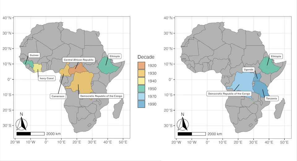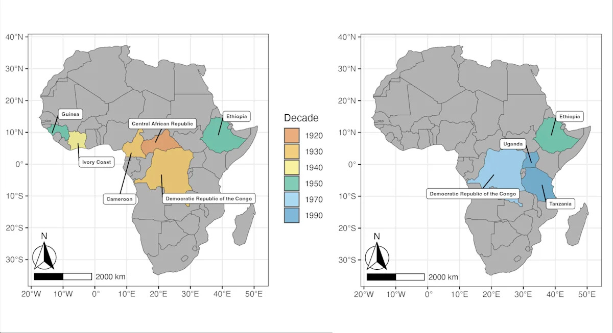 For anyone who relies on coffee to start their day, coffee wilt disease may be the most important disease you’ve never heard of. This fungal disease has repeatedly reshaped the global coffee supply over the past century, with consequences that reach from African farms to cafe counters worldwide. Infection with the fungus Fusarium xylarioides results in a characteristic “wilt” in coffee plants by blocking and reducing the plant’s ability to transport water. This blockage eventually kills the plant. Some of the most destructive plant pathogens in the world infect their hosts in this way. Since the 1990s, outbreaks of coffee wilt have cost over US$1 billion, forced countless farms to close and caused dramatic drops in national coffee production. In Uganda, one of Africa’s largest producers, coffee production did not recover to pre-outbreak levels until 2020, decades after coffee wilt was first detected there. And in 2023, researchers found evidence that coffee wilt disease had resurfaced across all coffee-producing regions of Ivory Coast. Studying the genetics of plant pathogens is crucial to understanding why this disease continues to return and how to prevent another major outbreak. While early outbreaks of coffee wilt disease affected a wide range of coffee types, later epidemics primarily affected the two coffee species dominating global markets today: arabica and robusta. First identified in 1927, coffee wilt disease decimated several varieties of coffee grown in western and central Africa. Although farmers combated the fungus with a shift to supposedly resistant robusta crops in the 1950s, the reprieve was short-lived. The disease reemerged in the 1970s on robusta coffee, spreading through eastern and central Africa. By the mid-1990s, yields had collapsed and coffee production could not recover in countries like the Democratic Republic of Congo. Separately, researchers identified the disease on arabica coffee in Ethiopia in the 1950s and watched it become widespread by the 1970s Although coffee wilt disease is currently endemic at low and manageable levels across eastern and central Africa, any future resurgence of the disease could be catastrophic for African coffee production. Coffee wilt also poses a threat to producers in Asia and the Americas. Coffee wilt disease evolved alongside coffee itself. Over the past century, it has repeatedly reemerged, attacking different types of coffee each time. But did these shifts reflect the rapid evolution of new types of disease, or something else entirely? Fungal disease has devastated plants for millennia, with the earliest records of outbreaks dating from the biblical plagues. Like humans, plants have an immune system that protects them against attacks from pathogens like fungi. While most fungal attempts at infection fail, a small number do succeed thanks to the constant evolutionary pressure on pathogens to overcome host plant defenses. In this evolutionary arms race, pathogens and hosts continuously adapt to each other by genetically changing their DNA. Boom and bust cycles of disease occur as one gains advantage over the other. The rise of modern agriculture has led to widespread monocultures of genetically uniform crops. While monocultures have significantly boosted food production, they have also contributed to environmental degradation and increased plant vulnerability to disease. Crop breeders have attempted to protect monocultures by introducing disease resistance genes, with farms widely applying fungicides and other environmentally damaging products. But these relatively weak protections for hundreds of acres of identical plants have resulted in outbreaks decimating crops that people depend on. It’s likely that modern agriculture’s reliance on monocultures has enabled and accelerated the evolution of new types of pathogen capable of overcoming resistance in plants. As a result, crops become more susceptible to disease outbreaks. Understanding the lessons of the past is essential to avoiding future plant pandemics. But this can be challenging, because the specific pathogen strains that caused previous disease outbreaks may no longer exist in nature or may have changed substantially. In my research on the evolutionary arms race between host and pathogen in coffee wilt disease, I sought to address these problems by “resurrecting” historical strains of the fungus that causes the disease, Fusarium xylarioides. Researchers know little about why the earlier and later outbreaks targeted different types of coffee, so I explored the genetic changes in F. xylarioides that underlie this narrowing of its hosts. I reconstructed historical genetic changes in the major coffee wilt disease outbreaks over the past seven decades by using strains from a fungus library – culture collections that preserve living fungi. These libraries store long-term living data and reflect the fungal genetic diversity present at the time of collection. Whether a pathogen takes the upper hand in the evolutionary arms race depends on its ability to generate new types of genes. It can do so either by changing and rearranging its DNA sequence or by moving DNA sequences between organisms in a process called horizontal gene transfer. These mechanisms can create new effector genes that enable pathogens to infect and colonize a host plant. Initially, I sequenced six whole genomes of strains involved in outbreaks before the 1970s as well as later outbreaks that specifically targeted arabica or robusta coffee plants. I found that strains of F. xylarioides specific to arabica or robusta genetically differed from each other, with most of these differences inherited from parent to offspring. This process is called vertical inheritance. However, I also found that several regions of the F. xylarioides genome were potentially acquired horizontally from F. oxysporum, a global plant pathogen that infects over 120 crops, including bananas and tomatoes. These included