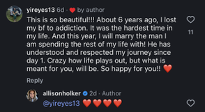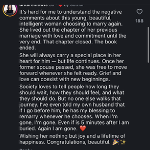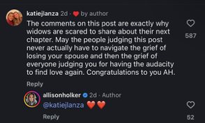 "The comments on this post are exactly why widows are scared to share about their next chapter." I'm Chelsea, the Weekend Editor at BuzzFeed, where I cover everything from pop culture and politics to TV and celebrity news. One commenter wrote, "I know she has to move on but she moved on fairly quickly after Twitches passing." Another called the engagement "so weird." "RIP Twitch!!!" one person said as another called Allison's post "gross." "I'm happy if she is but it doesn't need to be this over the top," the person continued. "Respect the first husband and just say you found love again. This need to verbally vomit your love on Rodeo drive is a bit much." "I don't think the problem is her finding love again," one person wrote. "I think the problem is her starting the post 'most romantic night of my life'...... I think anyone can read between the lines and find the subtle shade thrown at Twitch. 'One of' the most romantic nights of my life probably would have received less backlash. We all remember twitch and I don't think there's anything wrong with honoring that love respectfully as she explores new love." Another agreed, writing, "Saying its the most romantic night of your life is a put down to Twitch!" "This woman was married before and this was the best night of her life," one more commented. "No I'm not happy for yall." Dial 988 in the United States to reach the National Suicide Prevention Lifeline. The 988 Lifeline is available 24/7/365. Your conversations are free and confidential. Other international suicide helplines can be found at befrienders.org. The Trevor Project, which provides help and suicide-prevention resources for LGBTQ youth, is 1-866-488-7386.
