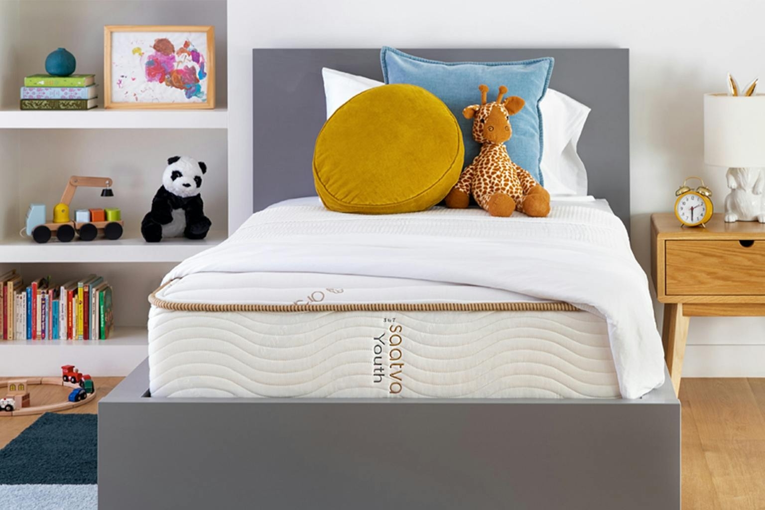 We hope you love our recommendations! While every product is independently chosen by our editors, BuzzFeed and our publishing partners may collect a share of sales or other compensation from the links on this page. You can read more about how our affiliate partnerships work in our Editorial Standards & Ethics Guide. From affordable basics to organic splurges, all of these are worth considering. Kids need support that grows with them, comfort that keeps sleep fuss to a minimum, and materials that make you feel good about what they're lying on night after night. Parents love mattresses that handle the everyday stuff: from giggles and tumbles to unexpected spills and accidents, without sacrificing quality or price. I'm talking spill-friendly foam that's easy to clean, non-toxic materials for sensitive sleepers, and budget-friendly picks that don't skimp on support or durability. Whether you're outfitting a toddler's first big-kid bed or upgrading a tween's longtime mattress, this is a list of the best kids' mattresses that strike the sweet spot between comfort, longevity, and everyday practicality. A Brooklyn Bedding BB Kids mattress if you want something straightforward, well-made, and genuinely kid-appropriate without the fluff. It's a medium-form foam mattress made with nontoxic materials, which checks the boxes parents actually care about. The stain-resistant cover helps with real-life spills, and the foam construction is supportive enough for growing bodies without feeling too firm. I have two kids — both under 5 years of age — and we got this mattress when my eldest was ready to transition out of her crib. It comes rolled up pretty tightly, which made hauling it up several sets of stairs MUCH easier than an already expanded mattress. It also didn't need time to off-gas, which is always a win in a busy household like mine. This thing is sooooo comfortable. On many occasions, I've fallen asleep next to her during bedtime; it's that comfortable. My daughter sleeps soundly and wakes up well rested, which is the absolute best case scenario for any parent. I have recommended it to many friends with small kids. Promising review: "We are so happy with our Brooklyn Bedding purchase. We bought two twin mattresses to upgrade our girls to 'big girl beds.' The mattresses are excellent quality, very comfortable, and suitable for growing kiddos. Our girls have slept amazingly in these, and all through the night. I did a ton of research on mattresses, and I’m so happy we went with Brooklyn Bedding!" —Alexis D. Get it from Brooklyn Bedding for $292+ (available in sizes: twin, twin XL, and full). An Egohome 5-inch twin mattress for kids who want that sink-in memory foam feel and parents who want something affordable, supportive, and easy to live with. It's medium-firm with pressure-relieving foam and a cooling green tea gel layer, which can help keep sleep from getting stuffy if your kid wiggles around at night. It's available in different thicknesses and sizes, and is a solid pick for bunk beds, first big-kid beds, or anywhere you want comfort without spending real-bed-for-life money. Promising review: "I bought a full 8” for my 12-year-old stepson’s room in our house. Based on the timing of his stay with us, I only had 24 hours to unroll and set up the mattress. I was pleasantly surprised that within 24 hours, it had expanded to full size and had no smell. He seems to have slept very well, and his comment to his dad in the morning was “that bed was really comfortable!" —Katie S Get it from Amazon for $67.67+ (available in six thicknesses and sizes: twin, twin XL, queen, and king). A Novilla hybrid mattress that's doing a lot for under $100. It combines a coil base with a thin layer of gel memory foam, which means you get real structure and airflow instead of an all-foam slab that traps heat. The low profile makes it a good fit for bunk beds and trundles, it's got all the right certifications, and the sheer popularity at this price point explains why so many people treat it as a reliable, low-risk kids' mattress rather than a long-term splurge. Promising review: "This mattress is fantastic. I only wanted the 6-inch so it didn't rise too high in the bunk bed. Despite only being 6 inches, it's still soft and supportive, and you can't feel the bunk bed's wooden support beams under it. While you never really get to the surface much because of fitted sheets and such, the mattress has a nice fabric feel, and I was very relieved that it had no smell. It came vacuum-packed and rolled tight in shrink wrap in a sturdy and compact box, which was great for delivery and taking up the steps to the bedroom. We couldn't be happier with it, it's great quality at a fantastic price." —Bill M. Get it from Amazon for $94.75+ (available in five thicknesses and sizes: twin, twin XL, full, and queen). A Saatva Youth Mattress for parents willing to spend more upfront in exchange for something their kid won't outgrow in two years. It's a dual-sided hybrid with coils, targeted lumbar support, and different firmness levels designed for ages roughly three through 12, so you're essentially buying one mattress to cover different growth stages instead of replacing it mid-childhood. Add in the high-quality materials, certifications, and overall durability, and the higher price starts to make sense as a long-term buy rather than a temporary kids' bed. Promising review: "Our son loves his comfy new mattress! We weren’t sure how easy the transition from toddler bed to full-size would be, but it’s been magical. We lay him down, and he doesn’t get up all night because he’s so comfy. We need to consider one for us now!" —Jessica Get it from Saatva for $799+ (available in sizes: twin, twin XL, and full). An Amazon Basics memory foam mattress that parents keep bookmarking because it feels genuinely plush without being flimsy. The layered foam setup is designed to sleep cooler than you'd expect, without breathable 