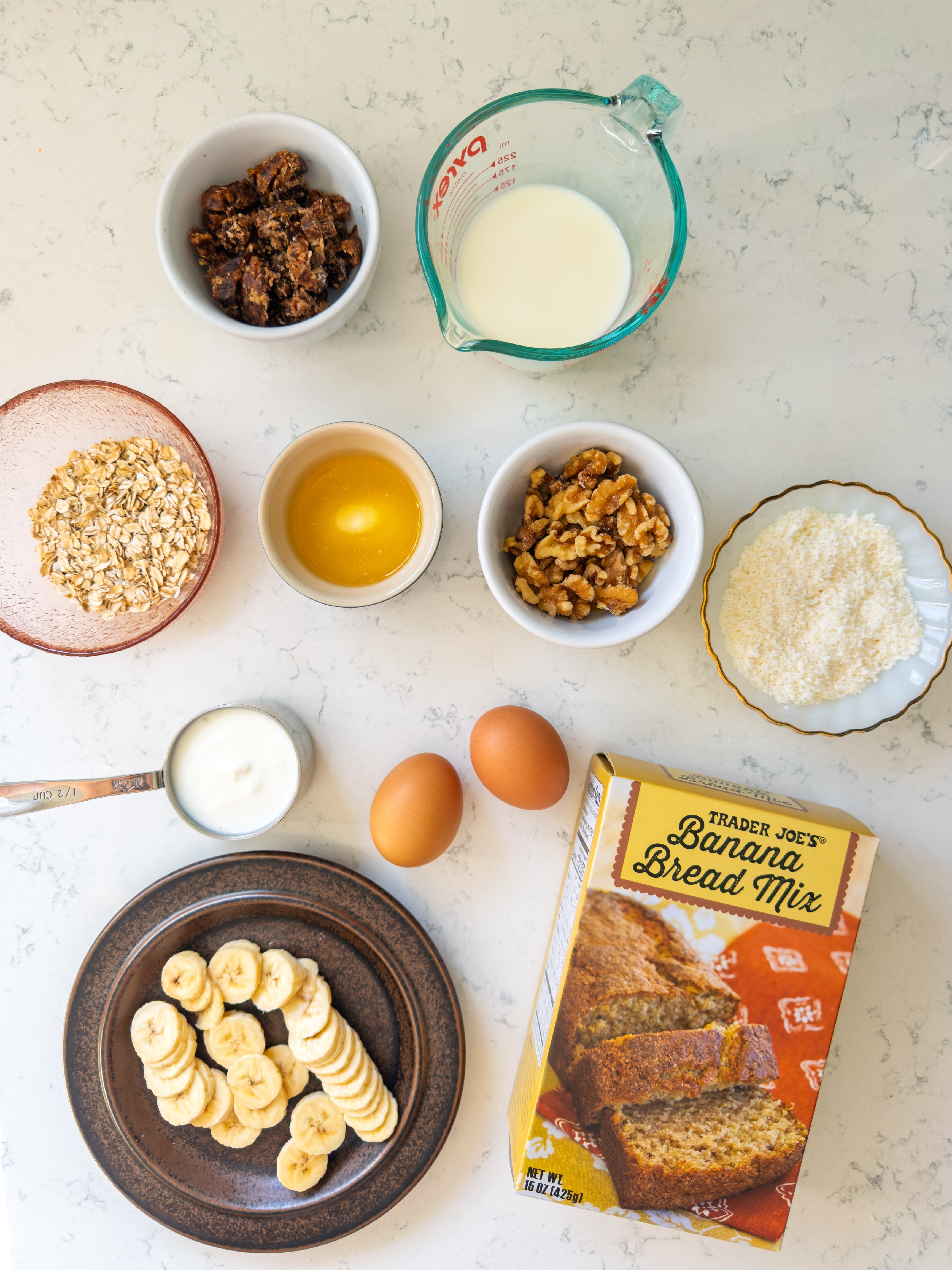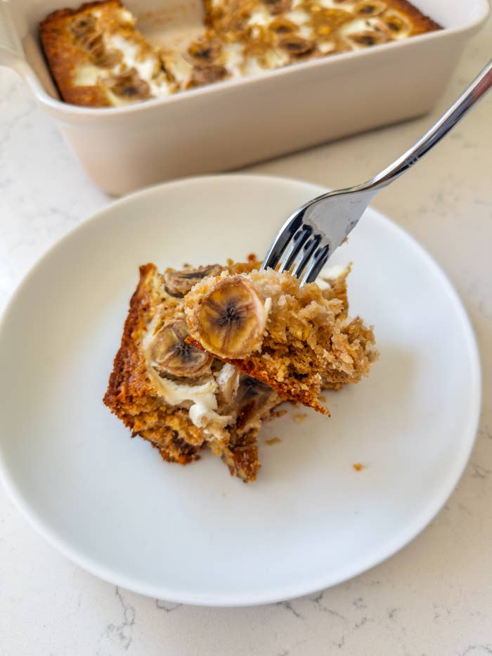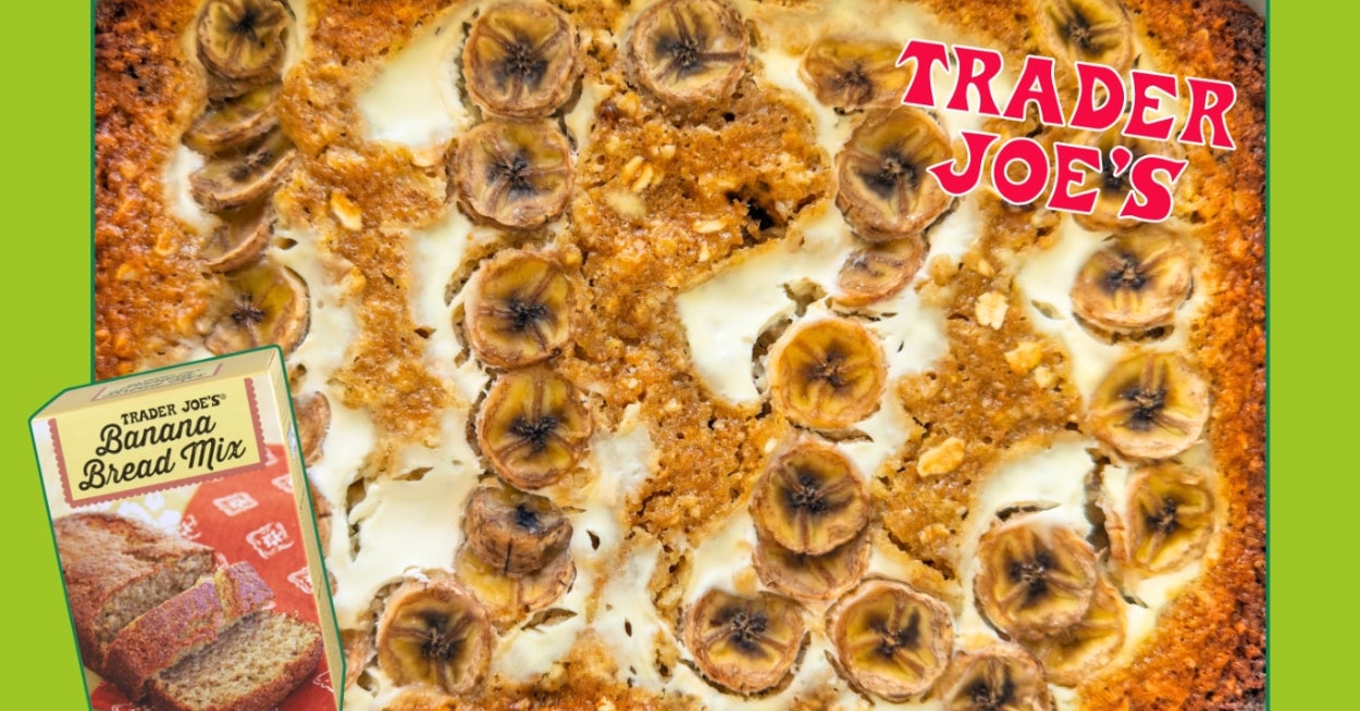 Simple add-ins transform this mix into a satisfying morning bake. As a Tasty contributor, I write test-driven stories about grocery store staples, viral recipes, and cozy comfort foods, focusing on what’s actually worth making at home. My goal was to keep the base mix itself intact and focus on small adjustments that would shift the texture and balance rather than reinvent the recipe entirely. 1. Whole milk instead of water and melted butter instead of vegetable oil, two of my go-to swaps for boxed mixes 2. Oats, shredded coconut, chopped dates, and walnuts for texture and substance 3. Sliced banana and a yogurt swirl baked right on top for moisture and nutrition And to make the recipe easier to remember, especially on busy mornings, I also turned to a simple rule: ½ cup of pretty much everything. - ½ stick unsalted butter, melted and cooled Serve warm or at room temperature. Full disclosure: halfway through my first bite, I said out loud, “This would be great with whipped cream or ice cream.” If you want more boxed mix recipes, check out my past articles: –Trader Joe's Cinnamon Roll Blondie Bar Mix –Trader Joe’s Gingerbread Cake & Cookie Mix