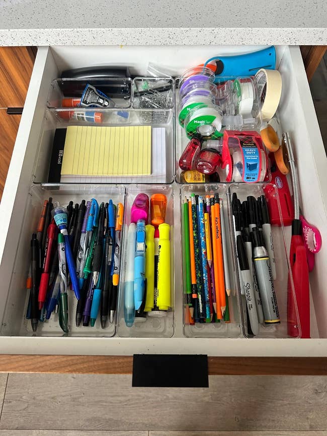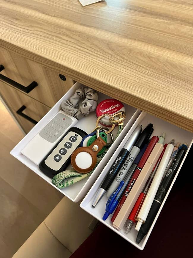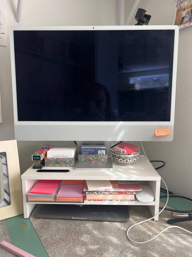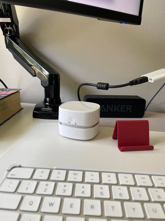 We hope you love our recommendations! While every product is independently chosen by our editors, BuzzFeed and our publishing partners may collect a share of sales or other compensation from the links on this page. You can read more about how our affiliate partnerships work in our Editorial Standards & Ethics Guide. You’ll be shooketh at how much more productive you feel when your matcha isn’t balancing on a stack of papers. And if you're team Android, I got chu, too — check out this charger. Promising review: "Great to have on your desk at work. No matter how busy my day is, I never have to worry about running low on my charge on any of my Apple products — from earbuds to my watch to my phone. I’m good, no matter how much video streaming or other activities happen to me during the day. I’m always ready to recharge, simple and easy." —Chris Dennis Get it from Amazon for $39.99 (available in four colors). It's also small enough to live on your desk without taking up an obnoxious amount of space. Promising review: "This vacuum cleaner is a game changer for keeping my desk tidy. It is super efficient at picking up dust, crumbs, and small debris without being noisy or bulky. The compact size makes it easy to store, and it works perfectly on desks, tables, or any small surface. I love the energy-saving auto power-off function, which is a smart feature to prevent unnecessary power use. It’s easy to empty and maintain, and the suction power is surprisingly strong for its size. If you're looking for a simple, efficient way to keep your workspace clean, this vacuum is definitely worth it. Highly recommend!" —Jack Get it from Amazon for $13.98+ (available in two colors and with battery charging, USB charging, or wireless charging). Promising review: "This headphone stand was super easy to assemble and feels very sturdy. The aluminum bar and solid base give it a premium feel, and it holds my headphones securely without any wobble. I liked it enough that I ended up buying a second one. Great value and does exactly what it’s supposed to." —Austin Plitt Get it from Amazon for $6.99+ (available in black and white). There's also an option that will hold up your phone, too! Promising review: "What a simple, but ingenious concept. I hate sticky notes all over my desk, but I still put them there! Having them front and center, eye level, makes me acknowledge them more. I address what's on the note faster, and can trash the note after I'm done. Or I use a very hot pink sticky for things I want to be aware of all the time. The eye level thing is key. This is a great product and easy to install." —Kelly in MI Get it from Amazon for $6.98+ (available in three variations). Promising review: "This was the second one I have purchased because they do a great job. It holds the paper securely, and it's easy to transfer from one side of the computer screen to the other as I often do for ergonomic reasons." —C Oregon Get it from Amazon for $17.49+ (available in three colors). It also comes in a number of variations that have either a built-in phone charger, a calendar, a mini lamp, an aromatherapy pad, or a calculator! Promising review: "This dry-erase surface is not only excellent for writing, but it is also incredibly functional in terms of organization. One of the best features is the built-in storage compartment, which has helped me keep my desk much tidier by storing pens, sticky notes, and other small items right inside. It also works perfectly as a keyboard stand, creating a more ergonomic setup and freeing up space on my workspace. The writing surface is smooth and erases completely without any residue or ghosting, even after extended use. If you're looking for a versatile and space-saving dry-erase solution that goes beyond just writing, this is a fantastic option. Clean, practical, and thoughtfully designed — I highly recommend it!" —Priscila Carmo Get it from Amazon for $25.99+ (available in 25 variations across 4 colors). Promising review: "This aluminum laptop stand exceeded my expectations. It’s incredibly sturdy, with a sleek, modern design that looks great on any desk. The ergonomic height and angle make a big difference for comfort during long hours of work, reducing neck and back strain. I love that it’s detachable — it makes it easy to pack and take on the go. It keeps my laptop cool with great ventilation and stays firmly in place without wobbling. A simple, high-quality solution that’s worth every penny!" —TB Get it from Amazon for $16.99+ (available in six colors). Promising review: "This monitor stand is exactly what I needed! The two-tier design gives me extra space underneath for storing notebooks, pens, and even my keyboard. It looks clean and modern on my desk, and I love the built-in phone holder and cable slots to keep everything organized. Super sturdy and functional — highly recommend!" —SH Get it from Amazon for $20.99+ (available in two sizes and five colors). Beyond 3D Creations is a small business that creates small, useful daily items with a 3D printer. Promising review: "Fits perfectly under my desk and I love that my devices can stay out of sight when I'm not using them. Highly recommend!" —Michelle Cheng Get it from Beyond 3D Creations on Etsy for $15.88. Promising review: "It’s so sleek and affordable — just what I needed for my home office. I love that it displays the time/date and temperature, so make sure not to lose your remote! It came with non-damaging 3M wall stickies, so it functions as a wall clock, but it also came with a small desk stand, so you can also display it on your desk. I appreciate that you can change the brightness levels too — I‘m obsessed!!!" —Anna Shim Get it from Amazon for $16.99+ (available in four colors and with or without a physical/digital remote). Promising review: "It is super cute, minimalistic, easy to flip. It makes for a cute, but professional calendar display." —Tori Get it from Amazo