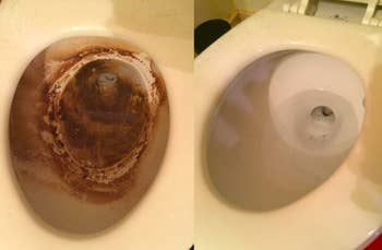 We hope you love our recommendations! While every product is independently chosen by our editors, BuzzFeed and our publishing partners may collect a share of sales or other compensation from the links on this page. You can read more about how our affiliate partnerships work in our Editorial Standards & Ethics Guide. If your toilet bowl has a dark ring worthy of it's own horror movie...trust me, you need to read this *entire* list. Bathrooms are notoriously easy to make filthy but difficult to clean. Between the grout in between tiles and the nooks and crannies behind the toilet, there's *a lot* of places for dirt, rust, and dust to accumulate. Luckily, products like mildew-removing spray, toilet-cleaning wands, and TubShrooms (aka the mighty hair-catcher) exist! Take a peek at these products that make cleaning the hardest room an easy (and non-scary) task. Just apply this to the stained surface with a damp cloth, leaving it untouched for a few minutes (or longer for stubborn buildup). Next, scrub it in using a circular motion and then wipe or rinse it off with water. Promising review: "Wow. Don’t waste your time with any other formulation that you found online. I’ve literally tried EVERYTHING! The soap/vinegar/baking soda, the expensive store-bought 'hard water cleaners.' I’ve scrubbed for HOURS! But this…. This product is like magic. It’s kind of like a paste that you can rub on with a microfiber towel and the hard water stains literally just RUB OFF. Like butter! Seriously, the easiest option I have tried yet. I stopped within the first five minutes of cleaning to do this review because I’m in shock lol. Coming from someone who never writes reviews! Take that as a sign to buy this immediately. What a game changer, I’m mad I’m just now finding this stuff lol!" —_kayla_carter Promising review: "I had tried everything to get the hardware stains off my shower. CLR, metal scrubbing pads, vinegar, and many other things. I thought I'd end up having to replace all the faucets. I saw this in a BuzzFeed article and thought, no way it's THAT good... It's that good. It's better than good. It's wild how good it is. My shower looks better than new. It took rust stains off the tile. It took years of hard water scale buildup off in seconds. It is literally a miracle product." —Amazon Customer Get it from Amazon for $5.97+ (available in three sizes). Blue Poppy Bath is a Wisconsin-based small business that sells all-natural, eco-friendly, handmade products like body lotion, shower steamers, cleaning bombs, and more. Promising reviews: "I saw these recommended on a BuzzFeed. I tried them and as a housecleaner, as a profession, I have not seen anything clean so well and easy. Somehow the toilet even stays cleaner longer!" —Marcie Johnson "Fantastic, quick shipping! These smell wonderful without being overpowering. The fizz is very satisfying, gives you the feeling that it’s working immediately! Leaves the toilet bowl clean, no chemical after smell. Looking forward to ordering more of these and trying the other scents as well!" —Margaret Drost Get it from Blue Poppy Bath on Etsy for $13.50 (available in eight scents). The kit comes with a wand, six refill heads filled with Clorox, and a storage caddy. The wand has a convenient button you can use to dispose of the used sponge heads in the trash, and the heads are uniquely shaped to fit under the rim of your toilet. Promising review: "So, we have a toilet that belongs to the cats. We don't use it, we don't look at it, we like to pretend it does not exist. Even with semi-regular flushing, cat waste is pretty nasty stuff that builds up quickly in the bowl. One of these wands cleaned it up in a single session (pictured above)!" —Whitney Check out a TikTok of the foaming pink drain cleaner in action. Promising review: "Wow! I don't think I've ever been more excited to use a cleaning product before. Who knew you could get so much satisfaction from a drain cleaner. I could probably make an ASMR video and post it, as it is that satisfying! Even though I had to angle this over my sink drain, to avoid the low faucet, it worked perfectly. The foam went down the drain and up through the overflow, bringing lots of black, yucky gunk with it. I have used lots of drain cleaners before, but not one that actually came up through the overflow. I'd never even considered what stuff was in there. It did a great job of cleaning everything out and it left the sink smelling fresh and clean as well." —Amazon Customer Get it from Amazon for $15.98 (also available as a two-pack). Promising review: "I bought this RMR-86 spray with low expectations, even with the good reviews. I sprayed a small patch in the evening and let it sit overnight. The next morning, the grout where I had sprayed was as white as if it were brand new. I decided to spray the entire wall and part of the roof. The next day, everything I sprayed had no visible mold. By the third night, I was pretty much spraying everything left in the shower. This stuff is amazing." —John Werner Get a 32-ounce bottle on Amazon for $15.99 (available in three sizes and multiple quantities). This pad can fit any 10” to 12” microfiber mop, can last up to 100 washes, and works on pretty much any surface, from wood to tile to stone. Turbo Mops is a small business! Promising review: "These are life-changing. I used a Rubbermaid spray mop for years that I never really loved and when it broke I got a Swiffer and was using the old Rubbermaid mop cloth pads with it still. They didn't fit the Swiffer great and I decided to get new ones. These scrub so much better and pick up way more dirt than my other mop pad. I have two dogs and their dried water and drool is around the kitchen and I used to have to scrub to get that up each time. Not with these pads! I never thought I'd swoon over a cleaning product but...here we are :)." —JB Get a pack of two from Amazon for $9.95 (available in multi-packs). Promising r