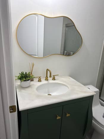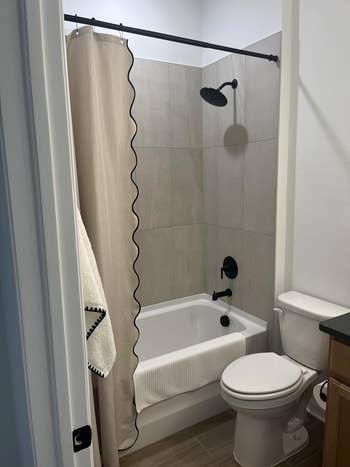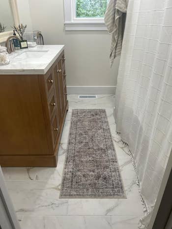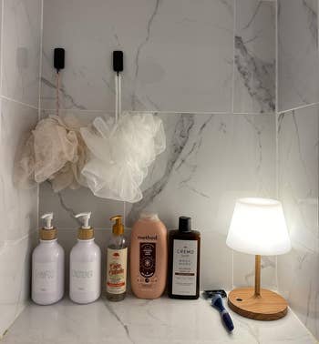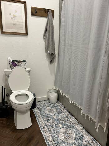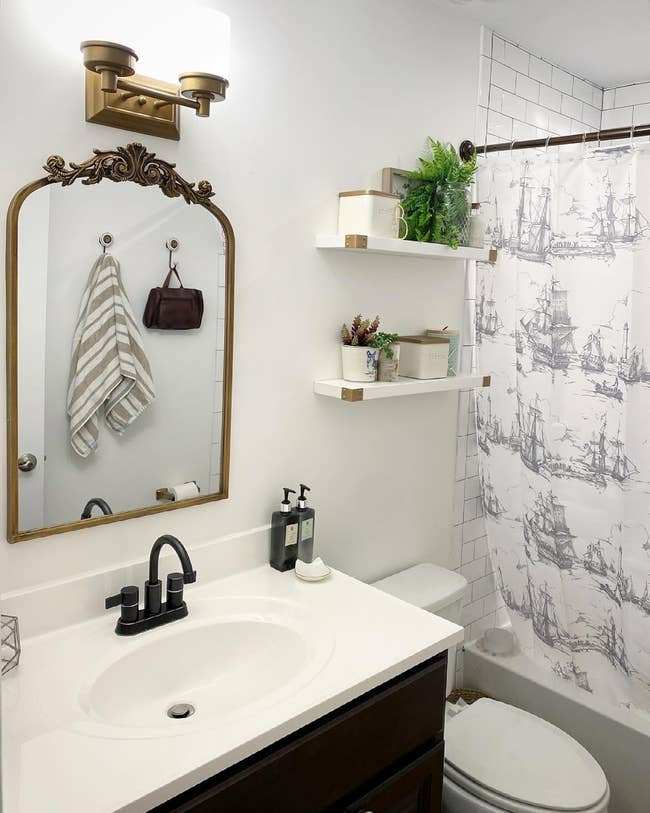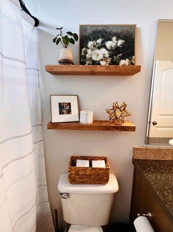 We hope you love our recommendations! While every product is independently chosen by our editors, BuzzFeed and our publishing partners may collect a share of sales or other compensation from the links on this page. You can read more about how our affiliate partnerships work in our Editorial Standards & Ethics Guide. If your bathroom is more of an afterthought than a thoughtfully styled space, you're definitely not alone. That said, a few quick changes can instantly update the design. From peel-and-stick tiles and over-the-toilet storage towers to bamboo bath mats and sleek soap dispensers, these products can help elevate your everyday routine. PS: They come from MaisoNovo — a small biz! Promising review: "We have a narrow bathtub/shower with little space. I love this product, it’s so easy to install. I used a level to keep them aligned. Wait 24 hours before you use them. Great price, great quality, I highly recommend." —Karen Kopecki Get it from Amazon for $24.70+ (available in six different styles and quantities of one, two, or three). Promising review: "I didn’t think I’d ever say my bathroom is a cozy space, but this canvas gets me many compliments from guests! It is SUPER affordable and of incredible quality. It really does look like a painting in person. The wood framing is very realistic. Highly recommend" —Sarah Gawronski Get it from Amazon for $9.99+ (available in seven sizes and 36 designs). Promising review: "The perfect runner for a bathroom superrrr soft and beautiful pattern. Get tons of compliments on where I found this rug def a great buy!!" —Panda Get it from Amazon for $23.99+ (available in six sizes and nine colors). Promising review: "This shower curtain is such a good find! The linen texture looks high-end and adds a soft, neutral vibe that works with any bathroom style. It’s lightweight but hangs beautifully, and the length is perfect for extra height. I’m honestly shocked at how much it upgraded the whole space for such an affordable price. If you want a simple, chic, easy bathroom refresh — this is it!" —MrsBlandford Get it from Amazon for $15.99+ (available in six sizes and 22 colors). Promising review: "I hopped on the gold ornate mirror trend and spent a long time trying to find one within my budget. I was worried at first because there weren’t any reviews when I first bought this. It looked amazing online and was the perfect size, so I went ahead and got it. I am THRILLED with this purchase!!! One of the best things I’ve gotten from Amazon. It’s beautiful and exactly how it looks in the pics." —McKinlee Mayer Get it from Amazon for $82.99+ (available in 10 sizes and four finishes). Promising review: "Looks great in our bathroom! Good quality, easy to hang, and the size is perfect. Really elevates the space." —Ellen Bryant Get it from Amazon for $79.99+ (available in three sizes and four finishes). Promising review: "We use this as a stylish way to store our toothbrushes and toothpaste in the family bathroom. It prevents toothbrushes from getting splashed when we wash our hands. It's very easy to use, and looks great. I appreciate the functionality and how it helps keep things organized. I think the price was worth the small upgrade in our home." —Jessica S. Get it from Amazon for $23.99 (available in five colors). This is IP44 waterproof certified, meaning it can withstand splashes of water. DO NOT put this in the water with you (obviously!) or place it somewhere precarious where it can fall into the water or will get wet — but know that it'll be ok if splashed. Your nighttime shower mood lighting will be just as cozy with this on your bathroom counter or shelf. Safety first! Hear one TikToker's thoughts on the shower lamp. Promising review: "I bought this kind of as a joke for our shower, but it's the best thing I've purchased so far in 2025! It's easy to use, love the dimmer, and it creates a nice ambience." —Holla Get it from Amazon for $33.99+ (available in six colors). Check it out in Julianna Christensen's gorgeous bathroom in this TikTok video. Promising review: "Pleasantly surprised at the ease of use and durability of these! Once in place, they truly look like professional pieces in your shower! A thousand times better than traditional Command hooks!" —Kindle Customer Get a pack of two from Amazon for $19.99+ (available in five metal finishes). Promising review: "If you need a small but thin trash can for the bathroom, bedroom, or any room, I suggest this one. It's so pretty and very well-made. I got 10 lemon deodorant tabs that just slide inside. It's the perfect green for my newly designed bath. A gold step opens and closes automatically and softly. I am so pleased, as this is exactly what I wanted." —Nancy M. Payne3 Get it from Amazon for $29.99 (available in three colors). Promising review: "I love this. It keeps my towels organized because I don’t have enough space in the cabinets. It is very appealing as well. Very sturdy. It was super easy to put together. Definitely recommend." —Cari Thompson Get it from Amazon for $19.99+ (available in two sizes and four finishes). Promising review: "Perfect to organize and clean up my vanity top. Actually a little larger than I anticipated, but it's very pretty, and the gold accents match well with the other gold hardware accents in the bathroom." —Lorrie Nijjar Get it from Amazon for $9.99+ (available in two sizes and three colors). The large-capacity warmer can fit two to three oversize towels or one large towel and a bathrobe. A rotary knob allows you to pick between 10 timer settings (30–120 minutes), and the clear LED screen makes it simple to monitor and adjust. If you have little ones or pets, it also has a locking lid for safety. Promising review: "Purchased as a birthday present for my wife. WE love it (yes, we, because I use it as much as she does. In fact, I use it more because I prep her towels and mine.) The warmer is small enough, yet it does a p