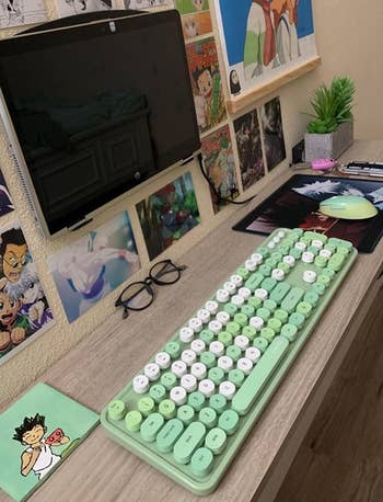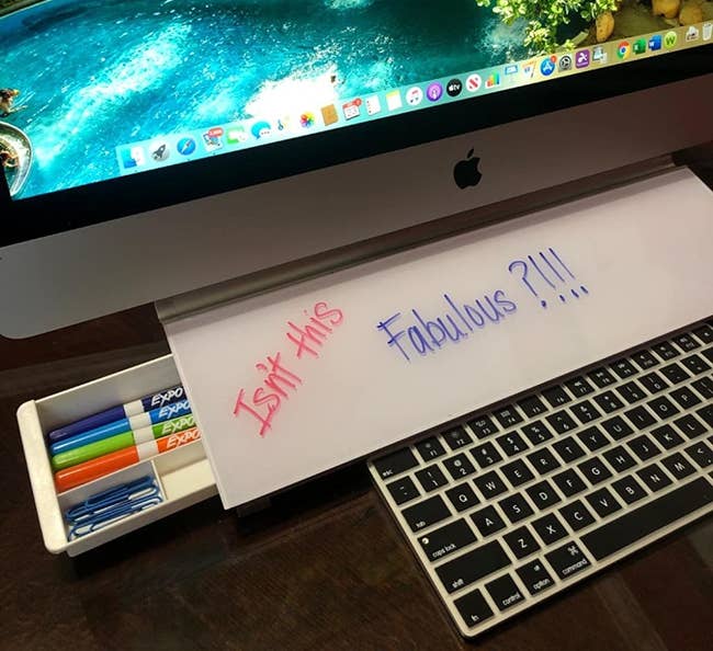 We hope you love our recommendations! While every product is independently chosen by our editors, BuzzFeed and our publishing partners may collect a share of sales or other compensation from the links on this page. You can read more about how our affiliate partnerships work in our Editorial Standards & Ethics Guide. If you're seeking serotonin, wherever you can get it. The set includes a wireless keyboard and a wireless mouse with a USB receiver. Pick up some AA batteries — both will need them! Promising review: "Every time I walk into my red office and see this beautiful keyboard, it makes me happy. It looks just like it does in the photo. It's such a jolt of color, and with its cool circular retro buttons, it's just a pleasure to use. If you need a pick-me-up (and who doesn't this year?), I can't recommend this highly enough." —CA-girl Get it from Amazon for $32.99+ (available in 13 styles). This style was made popular by Logitech, but this one comes in a fun range of colors! Promising review: "When it comes to my desk setup, I’m all for aesthetics but also practicality. I genuinely need a wrist rest for my keyboard, and I’m super picky about the way they feel. This wrist rest is super squishy and AMAZING quality. It’s comfortable and super cute. I’m obsessed!" —Mel🤍 Get it from Amazon for $13.45 (available in 22 colors). Read more about how an ergonomic mouse can help prevent carpal tunnel at Cleveland Clinic. Promising review: "The design is gorgeous and so comfy that I even take it when I travel for business. This has relieved wrist pain from working on the computer every day." —Bianka P Gonzalez G Get it from Amazon for $24.99 (available in 26 patterns). iJoy is a small business selling a variety of tech accessories, speakers, and headphones. Promising review: "I rarely write a review (this is the second in the past few years). One of the best purchases in a long time. Nice design and very practical. It solves all of my problems as it can go any direction. It's worth every penny. I turned around and bought two more. I am about to buy my fourth one. Love this!" —Pond P. Get it from Amazon for $21.99 (available in three colors). Promising review: "A must-buy product for your messy home or office. Exactly what I was looking for to help save space and hide my cable cords." —Andrew Olson Promising review: "I LOVE this product! I live off lists every day at work, and this keeps me super organized! I have my daily list, top three priorities, things I need to remember for the next day, and miscellaneous notes all on the same page!" —Ldsappy Get it from Amazon for $7.99+ (available in 28 colors/styles and in six-packs). Promising review: "I have procrastinated in writing this review and am actually happy to say that after a year, the product is continuing to stay strong. The adhesion is as strong as it was on day one, and this product continues to meet and exceed expectations. I have noticed significantly less eye strain. If I were needing computer monitor backlighting again, I wouldn't hesitate to repurchase." —college_engineer Get it from Amazon for $7.99+ (available in seven styles and sizes). The velour cover zips off for easy cleaning in the washing machine. Promising review: "I've purchased similar items in the past that visually looked like this but were stiff and rigid. This is amazing. Totally eased my back pain from my quarantine-at-home desk job. Highly recommend." —Bellarosa555 Get it from Amazon for $41.39+ (available in seven colors). Promising review: "Got this for my office desk. It definitely stands out, and the older ladies at my work love it! It works well as a seat cushion, as my office chair is so thin I can feel the metal and plastic bits when sitting. With the cushion, it's super soft and comfortable!" —Jane Get it from Amazon for $20.24+ (available in two sizes and six colors). Reviewers suggest turning the heat down from high to medium once the drink gets down to about the halfway point so it stays a comfortable temperature! Check it out on TikTok (where one reviewer even has the genius idea to use it as a candle warmer at their desk, too)! BuzzFeed editor Jenae Sitzes wishes she had bought it sooner: "After seeing this coffee warmer all over BuzzFeed Shopping and even gifting my dad one for Christmas, I finally decided to buy one for myself. Based on all the reviews, I was pretty confident I'd soon be kicking myself for not getting it sooner, and that proved to be true: This thing not only looks good but works great for keeping my coffee warm all day long. (Because yes, I'm one of those people who'll sip on coffee until 5 p.m., all right!!) I was kind of worried it'd be too small for some of my larger mugs, but the center plate is bigger than expected and accommodated every mug in my (very eclectic) collection perfectly. I can confirm that flat-bottomed mugs are the best option for using with this warmer as they do stay hotter, but it still keeps my concave-bottom mugs warm enough for my taste. Also, I looove how sleek the white version looks on my white desk, and the auto-shutoff function is a nice safety feature as an absent-minded person." Get it from Amazon for $12.99+ (available in 12 styles). The whiteboard also comes with a dry-erase marker, an accessory channel (to hold the marker), and a storage drawer. Promising review: "Never thought something analog would be SO useful in my daily routine. I work from home and am constantly project managing a number of complex strategic projects. Having pertinent information directly in front of me and top of mind has done incredible things for my productivity. Never would have imagined it would make such a difference. For a nominal investment, I highly recommend it if you have trouble keeping up with things." —Captainflapjax Get it from Amazon for $26.10+ (available in five styles). 1801 & Co. is a Minnesota-based Etsy shop established in 2016 that specializes in family wall calendars, c