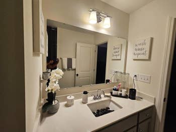 We hope you love our recommendations! While every product is independently chosen by our editors, BuzzFeed and our publishing partners may collect a share of sales or other compensation from the links on this page. You can read more about how our affiliate partnerships work in our Editorial Standards & Ethics Guide. Time to dig out the screwdriver and take some before and after pics as proof. Watching DIY YouTube channels, TikToks, and TV shows can be a bit discouraging if you've never held a drill before. But there are still TONS of manageable, easy (yes, really!) projects you can handle if your confidence in your home improvement skills is severely lacking. There are little tweaks you can make throughout your home, including doubling a closet rod's storage capabilities, installing a built-in night-light on an oft-used power outlet, and even zhuzhing up your old stained couch with a velvet slipcover that might make your spouse think you bought a new piece of furniture. Joke's on them! Read on for some extremely realistic DIY inspo. Promising review: "Easy to install. Lights provide ample lighting; USB allows lights to be a standalone fixture without tying up another wall socket. The USB interface also acts to turn the lights on and off with the TV. Backlighting also seems to make the screen seem sharper." —Shaun Get it from Amazon for $14.99+ (available in sizes S–XXL). Note that this ships with a $35+ order. Promising review: "Great shoe holder. Love these for shoe storage as they are sturdy and tall enough for chunky shoes." —Janet Promising review: "Where do I start? I absolutely LOVE this product. I wanted to replace our bathroom mirror, but due to the size, it would have cost a lot! I came across this on Amazon and decided to give it a try. The application process was super easy and applied without bubbles as long as you go slow and rub it down as you go. I kid you not. It looks like wood and feels like it, too! You can feel and see the 'wood grain.' It’s absolutely stunning and looks like I bought a whole new mirror." —Taylor Get it from Amazon for $6.98+ (available in two sizes). Promising review: "I like this so much that I actually just ordered another one for under the bathroom sink. Not only did it tidy the clutter and make items easier to find at first glance, but also made it possible for me to store another few items below the sink, including the spray cleaners I use for my countertops. I didn't configure it around pipes (as I see can be done), but actually used the flexible shelving options to place taller or larger items directly on the floor of my under-sink storage — rather than on the lowest shelf (see last photo) — to maximize my storage possibilities and keep regularly used items accessible. I also didn't fully extend the shelving, just as suggested by the manufacturer for stability purposes ... and still found it offered ample storage. Easy to assemble, with some flexibility for shelf height and placement — highly recommend!" —Amazon Customer Get it from Amazon for $24.87+ (available in three finishes). Promising review: "This bracket is awesome and was extremely easy to install. We were able to hang curtains over our vertical blinds in just a few minutes and didn't even need any tools. Great product!!!" —Amazon Customer Get a set of two from Amazon for $18.95 (also available in brown, black, gold, and brass, and also available in inside-mount brackets). Promising review: "So easy to set up! All you do is peel tape and adhere to a CLEAN and DRY door. Also looks great, I don't even notice it. I had a huge gap under my door. I could smell and hear everything from the hallway. Smells, drafts, and sound all are less of an issue now." —Brit B. Get it from Amazon for $8.99+ (available in four colors). Promising review: "I can't believe how well Old English works! I recently purchased a home where a dog previously lived and had horribly scratched the woodwork. I thought I may have to sand and refinish the woodwork around two doors. Old English saved me a lot of work!" —Behold Behold! Get it from Amazon for $4.82 (also available in a three-pack). Enhances the natural beauty and depth of grain on finished *and* unfinished wood. For use on antiques, dining tables, kitchen cabinets, wood doors and trim, etc. Promising review: "Very impressed so far. Just tried this stuff on one of our kitchen cabinets and it really did a nice job. The cabinets are 15-year-old cherry-stained hard work cabinets (oak, maybe?) and are scratched deeply in certain parts from the previous owner's dogs. Then, 20 minutes after applying this product and wiping it off, I can't complain at all about the results. It looks great in the picture, and even better in real life where you are not focusing on staring at imperfections. In addition to helping tremendously with the blemishes, it also leaves a nice glossy shine on the cabinets, making them look clean and fresh (not over the top glossy and fake). For the minimal price, I can't complain at all. Finally, I used about 1/3 of an ounce to do the 36-inch double base cabinets and the 36 inches wide drawer, so I believe the 16-oz bottle will last quite a while." —Patrick Gallagher Get it from Amazon for $10.88 (also available in a six-pack). Promising review: "I can’t believe how well these work! Much better than I was expecting. I just had my home interior painted and the painters damaged a fiberboard medicine cabinet when they removed the masking tape. It ripped off the fake wood veneer. These markers completely filled in the ugly spots and the colors blended well. I love that it appears to have some clear coat in it too as it dries with a slight shine that makes it look more like wood stain rather than marker. I also used them to stain wood filler in two spots in my maple kitchen cabinets where a previous home owner had hung a paper towel holder and I really struggle to see the hole! It looks fantastic. I highly recommend this s