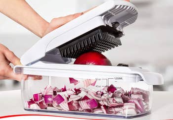 We hope you love our recommendations! While every product is independently chosen by our editors, BuzzFeed and our publishing partners may collect a share of sales or other compensation from the links on this page. You can read more about how our affiliate partnerships work in our Editorial Standards & Ethics Guide. It's all fun and games until you're exhausted but someone's gotta take out the (pink) trash bag. Check out a TikTok of the dolly trolley in action. Promising review: "I was getting so tired of making several trips to my car to retrieve my groceries after each shopping trip. I saw this trolley on Amazon and decided to buy it. Best purchase ever. I now can bring all my groceries in with one trip to the car. I also love that its wheel design allows the trolley to climb my front steps, making it so easy for me. I have used it in the house to help me carry things upstairs, and the climbing feature makes it safe and easy." —m Robinson Get it from Amazon for $92.62+ (available in five styles). Check out a TikTok of the foot masks in action. My colleague Emma Lord loves these: "I'm a long-ish distance runner and these were certainly an interesting experience for my feet! You slide them on and after a few minutes feel a tingling, mildly burning (in a good way) sensation. It doesn't quite numb your feet, but it relaxes them. I kept them on for 30 minutes and then toweled my feet off, and the tingling sensation slowly faded over the next 30 minutes. After that my feet felt very refreshed and relaxed at a time of day when they're usually aching from all the miles I put in. The whole thing was a mess-free, easy process, and I will definitely keep them on hand for longer run days!" Promising review: "Very soothing. My husband and l used these on our European vacation and they definitely felt good on our feet!" —KS2018 Get a set of three pairs from Amazon for $11.97. Promising review: "I recently moved into my first solo apartment and I knew I needed a step ladder to reach things because your girl is 5'2. This ladder is very sturdy, and I love that it folds up easily so I can hide it in my storage room. Would definitely recommend." —kmill Promising review: "Bought the 2-pack. Wanted my mother to be able to reach rarely used items in the topmost cupboard without getting on a step stool if my sisters and I weren’t available. I’m using the other one to pick up trash when out mudlarking. Sturdy and convenient that it folds up." —Kristen Promising review: "I was a little concerned this was going to be one of those gifts that were hyped up but it’s not. It’s not going to thaw a huge chunk of meat in an hour but I have thawed a chunk of chicken in a few hours. The product itself isn’t very thick which I like as it doesn’t take up a lot of space for storage. It doesn’t warm up, but pulls the cold from the meat, which makes the product thaw (like putting meat in cold water to thaw it faster and not cook it)." —Savannah A. It also comes with a lid so you can easily stack them and four fill lines (½ cup, 1 cup, 125 mL, 250 mL). Souper Cubes is a small business seen on Shark Tank that specializes in bake-and-freeze storage products. Promising review: "I'm extremely happy with my Souper Cubes! I cook chili and soup and always make too much, having the ability to freeze serving-size portions is perfect. Saves time and food quality by not having to thaw it all each time I want another serving. High quality and since it's silicone and not rigid plastic it won't crack in the freezer. Highly recommend!" —Alexander S. Waterman Get it from Amazon for $21.99 (available in three colors and packs of two). Promising review: "So easy to set up! All you do is peel tape and adhere to a CLEAN and DRY door. Also looks great, I don't even notice it. I had a huge gap under my door. I could smell and hear everything from the hallway. Smells, drafts, and sound all are less of an issue now." —Brit B. Get it from Amazon for $9.99+ (available in four colors). Check out a TikTok of the veggie chopper in action. Promising review: "Makes life so much easier. I can't imagine chopping onions or bell peppers by hand anymore, and it does so much more. We used to have a Prepworks chopper, which was a similar idea, but you had to press so hard to chop and it broke after not too long. This one requires very little effort to cut through the food and it has a generous container." —Amazon Customer Cup Cozy Pillow is a small biz as seen on TV specializing in cleverly designed cup holders. Promising review: "I liked that it worked with cups and mugs, perfect for clumsy friends." —YAZ "This thing is great! I’m home on maternity leave with my new baby and spend most of my time on the couch under a sleeping baby. This product makes it easy for me to keep my drinks, remote, etc close by even with crazy dogs running around. It’s a little more expensive than I would have liked but it works and I love it so money well spent!" —Amber Get it from Amazon for $29.99 (available in more colors). Sink Topper is a small biz that specializes in this product. Promising review: "Great for messy teenagers. Cool item for my teenager's bathroom. She likes to lay her hair/makeup stuff on it so she can keep her other bathroom decor on the sides. When she's done she puts what she was using under the sink and folds up the sink tray so it can slide under the sink as well." —Melina Get it from Amazon for $25.69 (available in two sizes and three colors). The set comes with the following spice blends: Chicken Allrounder; BBQ Allrounder; Vegetable Allrounder; Italian Allrounder; Avocado Topping; Casserole Allrounder; Stir Fry; Mexican Allrounder. Promising review: "Works exactly as it says it does. I have small hands and trouble gripping things. This makes opening jars extremely easy and it opens in seconds just by twisting the jar counterclockwise. I'm so glad I ordered two so I can give one to a family member who has trouble wi