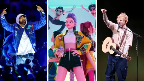 Oasis are big in Manchester, but even bigger in Scotland. Newcastle is wild for homegrown guitar hero Sam Fender, and Liverpool can't get enough of female pop stars. These are some of the revelations from a breakdown of listening habits on Spotify and YouTube in 2025 in more than a dozen of the UK's biggest cities. Taylor Swift and Drake were the clear winners on Spotify - except in Newcastle, where Fender broke their stranglehold. He was one of several artists to prove particularly popular in their hometown, while there was a clear north-south divide in Oasis's popularity as they reformed. Eminem dominated YouTube in 2025, ahead of the KPop Demon Hunters singers and Ed Sheeran - with Taylor, Drake and other pop giants also among the most played artists. But a number of surprises emerged from the lists, too. Here are the rankings for each of the featured cities: There's a lot of love for Lady Gaga in Northern Ireland's capital - she was the second most popular artist of 2025 on YouTube in Belfast, higher than in any other UK city. She was pipped to number one by the stars of KPop Demon Hunters, with Eminem in third. The rapper missed YouTube's top spot in just two of the 14 featured cities (the other being Nottingham). Belfast's most played artists on YouTube: Surprise package: Belfast trance producer Billy Gillies was just outside the top 10, in 12th, and had two tracks in the city's top 20 songs of the year on YouTube - DNA (Loving You) at 10 and Right Here All Along at 17. NB Spotify did not provide data for Belfast. Drake is the most-played artist on Spotify in Birmingham, and it is the only place outside London to also have his rival Kendrick Lamar in its top five. Brummie fans are the most devoted to US R&B singer Chris Brown - it's the only place to put him in its top 10 on Spotify (at nine), and also gives him his highest YouTube placing (at eight). D-Block Europe are big in Birmingham, too - the London-based hip-hop duo are second only to Eminem on the list of the year's most-played artists on YouTube, and it's also the only city to have them in its Spotify top 20 (at 15). Birmingham's most played artists on Spotify: Birmingham's most played artists on YouTube: Surprise packages: A string of Indian singers are bigger than many Western superstars on YouTube in Birmingham - Alka Yagnik was the third most popular act of 2025 overall with more than 7.5 million views in the city (above Ed Sheeran and Drake). Shake It To The Max by Ghanaian singer Moliy and Jamaican producer Silent Addy was also massive - it was the third most viewed track of the year on YouTube, higher than in any of the other featured locations. The tastes of fans on Spotify and YouTube differ a lot, judging by their charts. As in many cities, Taylor Swift was most popular on Spotify in Bristol, while Eminem topped the YouTube list. Bristol's listeners are, according to these rankings, the biggest fans of Olivia Dean outside her home city London, placing her ninth on the Spotify chart. Spotify: YouTube: Surprise package: It's the only place with any of BTS star Jung Kook's songs in the top 20 Spotify tracks, and he has two (3D at number 13 and Seven at number 18). As well as being number one on YouTube, Eminem was more popular on Spotify in the Welsh capital than in any other city, in ninth. Ed Sheeran is third on YouTube, behind KPop Demon Hunters, and also has his highest Spotify ranking, in 11th in Cardiff. Spotify: YouTube: Surprise package: It was big everywhere, but Benson Boone's Beautiful Things had its joint highest ranking on YouTube in Cardiff (in third), and the city was the only place to put the song in its Spotify top 10 tracks (at 10) in 2025. As Oasis reunion fever gripped the nation last year, Scotland went particularly mad fer it. The band were in the top five most-played acts on both Spotify and YouTube in both Edinburgh and Glasgow - higher than anywhere else, including their home city of Manchester. Edinburgh also likes its pop - it's the only city with Chappell Roan in its top 10 on Spotify, while superstar DJ David Guetta was higher on YouTube than anywhere else. Edinburgh and Glasgow are also the only cities to put Gracie Abrams in their Spotify top 20s. Spotify: YouTube: Surprise package: Hard rock band Disturbed's brooding 2015 cover of Simon and Garfunkel's Sound of Silence was just outside the top 10 most played songs on YouTube (in 11th). Taylor Swift reigns on Spotify (again), while Glasgow gives Tate McRae her highest placing. It's also the only city where Scotland's superstar DJ Calvin Harris makes it into both the YouTube (11th) and Spotify (18th) lists. Spotify: YouTube: Surprise package: Scotland, it seems, is keen on country music - Glasgow is the only place with US superstar Zach Bryan in its Spotify top 10. Edinburgh is the only other UK city with him in its top 20, in 14th place. In the absence of their own home town heroes (sorry Kaiser Chiefs), Leeds listeners are big on other northern acts - it's the only place outside Newcastle to have Sam Fender and the only place outside Sheffield to have the Arctic Monkeys in the Spotify top 10 (Oasis are also not far behind in 14th). Over on YouTube, D-Block Europe are big in Leeds - second to Eminem overall - their joint highest placing, alongside Birmingham. Spotify: YouTube: Surprise packages: Chrystal's infectious The Days was a big hit, but nowhere bigger than in Leeds, where it was the third most played song of the year on YouTube with a million plays - closely followed by her collaboration with MK, Dior, at number four. Liverpool fans can't get enough of female pop stars, judging by these lists. Taylor Swift is top on Spotify, while Billie Eilish gets her joint highest position in fourth, and Ariana Grande gets her highest at number nine. Just outside the top 10, it's also Lady Gaga's joint highest Spotify placing (at 11) and Lana Del Rey's best position of any UK city (at 12). Meanwhile, rising British star Skye Newman was parti