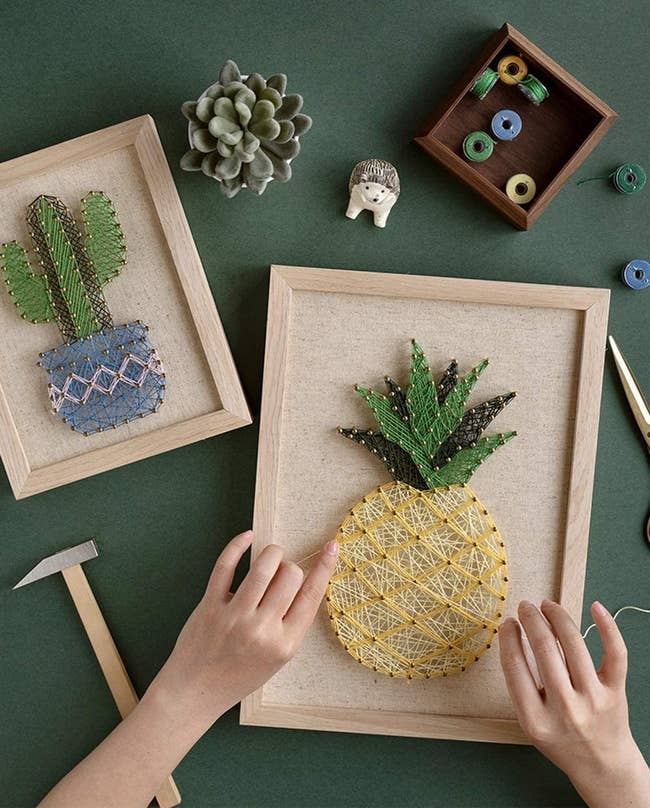 We hope you love our recommendations! While every product is independently chosen by our editors, BuzzFeed and our publishing partners may collect a share of sales or other compensation from the links on this page. You can read more about how our affiliate partnerships work in our Editorial Standards & Ethics Guide. Especially if you are like me and are on re-watch 20 of Big Bang Theory — it might be time for a hobby. In addition to the 40 colorful bundles of felt, this kit comes with felting needles, scissors, bells, protective finger cots, foam pads, stencils, and even plastic eyeballs so you can create tiny fur friends! Promising review: "So I have always been intrigued by needle felting, but I thought it would be much harder, so I never looked into supplies. This craft is SOOOO fun to pass the time and keep your hands busy. This little kit was so perfect for beginners and for the price!!!!? Perfect." —Tali Get the 40-color set from Amazon for $26.99 (also available in two smaller sets). The kit comes with a crafting board, small hammer, a holder, nails, glue, screws, cotton string, a frame, a pattern, and a detailed instruction manual, so there's no need to buy other supplies. Promising review: "These instructions are easy to follow — I finished it in two hours. This was so much fun and I love my finished results! It looks so beautiful. It was a gift for my friend. I would buy it again and recommend it to others." —yuyantan Get it from Amazon for $23.99 (clip the $6 off coupon on the product page for this price; available in nine styles). The kit comes with an ergonomic crochet hook, a yarn needle, stitch markers, eyes, colored yarn, and enough stuffing for six plants. Promising review: "It comes with everything you need to get started, including easy-to-follow instructions. As someone new to crochet, I found the materials and tools high-quality and perfect for learning. The kit is well-organized, making it easy to dive right into projects, and the step-by-step guide is super helpful. It's a great kit for adults looking to pick up a fun and relaxing new hobby. Highly recommend for anyone wanting to start crocheting!" —heidi vanderlee Rita Papers is a small business that specializes in personalized poster sets, stickers, and journaling supplies. Each pack varies in the specific stickers, posters, and construction paper you get, which honestly makes it more fun in my book! It will be a nice surprise to open. Promising review: "My package arrived today, and I'm over the moon!! The quality of the stickers is amazing, and you get a great variety for different aesthetics. My favourite would have to be the free sheet, it's very autumnal vibes. This would make a fabulous gift for anyone who loves to journal or craft. I would love to see Rita make customisable bundles in the future and will 100% be ordering from her again. 🩷" —Cassiopeia Jewellery Get it from Rita Papers on Etsy for $22.50+ (available in medium or large packs). Promising reviews: "This was my first sticker by number book. It was so fun and addictive to finish each one. I showed family and friends and they all ordered one. The photos of the flowers were so beautiful and following each piece was very easy. Highly recommend for a fun activity on a road trip or for just something extra to do while watching TV." —Nichole "I’m a young adult who spends a lot of time in the hospital due to bad health issues. Most of the time, it’s nerve-wracking and very boring. I ordered this little book to take with me for next time, and I was very happy with it! It kept me busy and calmed my nerves. It was easy to do and therapeutic. I like the variety of pictures!" —Cherry Promising reviews: "Plenty of stones. I like these small projects so that I can complete them in my lap while watching sports." —Bobbi Kirk "When my granddaughter comes, I always buy her a craft for how to sit and do. She absolutely loves this. Kept her busy for hours and very inexpensive." —Arlene Get it from Amazon for $8.99+ (available in 10 designs). Each piece is 12x16 inches. The kit comes with 12 images, color-coded gems, a single-tip diamond painting pen, a small tray, and wax. The pen holds a small piece of wax to help you grab the individual gems. Each canvas comes coated in a sticky adhesive protected by a clear film. Because that's how the gems stick on, I recommend peeling it off a little at a time as you go to preserve the adhesive, so you're not left with a picture covered in dust and dog hair. Promising reviews: "Bought it over a year ago, I do them every so often when I’m bored and they’ve lasted me this long. They’re fun, something to do while watching my shows, there’s always left over gems so they’re nice for other things too. I’d get larger pickers cause it’s slow without but I didn’t mind much. Very pretty, shinny, the stickiness is good, it’s enough that they stay but if you need you can pry gems off or push them around" —customer "First time I ordered something like this, and I'm glad I started with this one. The pages are large, and you get 12 of them, which should last me probably two years. I haven't had this much fun doing something in a long time. I don't wanna stop. I don't know what it is, but there is something satisfying about dropping little gems on the sticky paper. I can't wait until I finish my first one." —Female in Rochester NY Promising reviews: "This is exactly what I was looking for! It lays flat to easily complete the word search and not have to fight with the book. There are different types of puzzles, and some have extra secret searches! It’s great for the slow days at work!! I will definitely be buying more of these word searches!" —Roy Y Hahn "I really appreciate having puzzle books around when I’m feeling anxious. It’s a quick activity I can turn to when needed or even on a cozy night when watching a movie. The price for these was on point. It kept me busy for a few months b