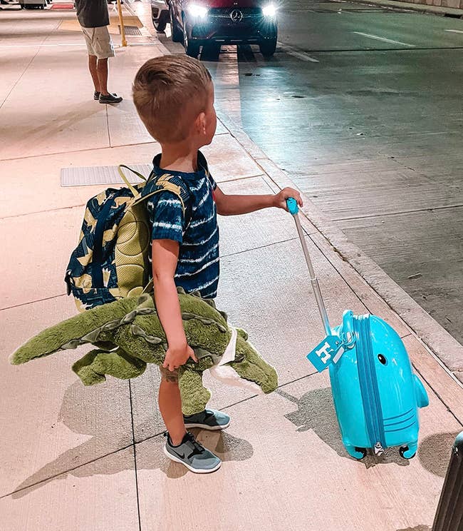 We hope you love our recommendations! While every product is independently chosen by our editors, BuzzFeed and our publishing partners may collect a share of sales or other compensation from the links on this page. You can read more about how our affiliate partnerships work in our Editorial Standards & Ethics Guide. Life's about the journey, not the destination — except when you're traveling with a toddler. Let's just get you there. Promising review: "Got this for a holiday weekend trip. We got lots of smiles for this suitcase at the airport. It held five days of clothes and pajamas for a toddler on one side, and a blanket and large stuffy on the other. The toddler loves it and it holds up to use (abuse) by a little one. The build quality is great and this thing will definitely outlast the time the kid will need it. The shark tooth zipper pulls and shark tooth material on the on the interior are cute. 100% recommend, it's adorable." —Amazon reviewer Get it from Amazon for $36.11+ (available in four designs). Promising review: "These are so cute! Perfect for kids clothes while traveling. These are wonderful to organize clothes when packing. It keeps clothes from moving around inside the luggage while it’s being jostled about during travel." —TrixieLee27 Get it from Amazon for $39.99+ (available in seven designs). Promising review: "I'm a mom of a toddler, and these wipes live in my diaper bag, my car and honestly my coat pocket. They're super gentle and don't have a strong alcohol smell, which I love. I travel a lot with my son, and these were a lifesaver at the airport. They don't irritate his skin at all, even with constant use. If you're a mom who's always on the go, these are just one of those things you end up relying on without realizing it. Definitely a staple for us!" —Teddy Get 150 wipes from Amazon for $11.99 (also available in two smaller quantities). Promising review: "These are great books to throw in your bag for ANY kind of travel and, best part, you don't need to worry about a mess. You fill up the pen with water. Your kiddo (or, honestly sometimes you) simply paints the water onto the page and the picture magically appears! After a few minutes, the picture fades back to white as the water dries. When your kiddo is done with the book, just dump out the water and put away. The only downside is that, if your kiddo uses too much water, the pages warp a bit, but it still works great! My son has had his books for two years now and still will take them out and play with them! It's great!" —Honest reviewer Get it from Amazon for $6.70+ (available in six styles). Promising review: "I bought these for our family trip to Disney World. I used all 4 Air Tags and they worked great. They were easy to set up and now I don't have to worry about losing our items. I placed one in a wrist holder for my toddler as well." —Victoria Promising review: "I use these with my two kids whenever we travel or go on an adventure. When my younger child was little and would grab at anything on his wrist, I put it on his ankle, and it fit comfortably. The bands are comfortable, and my kids hardly notice that they're on. They've been used numerous times, and the bands and airtag protector are holding up very well." —DaSilva Family Get it from Amazon for $7.99+ (available in 12 colors and various two packs). Promising review: "The best for traveling, diaper bag staple for toddlers and kids. The set has a perfect amount of tiles to build and play with. Case is metal so the tiles stick. Case shuts solid and we don’t worry about loosing pieces. Love it." —Caitlin Get it from Amazon for $19.99 (available in three styles). Promising review: "Water bottle is durable, and keeps drink cold. It is perfect for my toddler on our outdoor adventures." —Allbeth Get it from Amazon for $24.99 (available in five colors and three larger sizes). Promising review: "This fan is absolutely perfect. We are frequent Disney World travelers and if you have a young child this is the fan you want. We have gone through three other brands of fans and this one takes the cake. It has three different fan speeds and it also has a built in light with three different brightness. I would buy this fan for every trip if we had to." —Alexis D. Get it from Amazon for $25.99+ (available in six colors). Promising review: "This has been such a hit with my 3- and 4-year-olds and keeps them entertained for hours. It operates JUST like an adult digital camera but has some fun added filters like a mustache, kid face, and different border designs. It is a small size that allows them to operate it with ease. My kids walk around the house taking pictures of random things and then love to come and show me. Battery life is great and it seems pretty indestructible! I have purchased this three times now for birthday party gifts as it’s an affordable great gift!" —Above and Abode Get it from Amazon for $25.49+ (available in five colors). Promising review: "We LOVED it. We purchased this because of the comfort/cushion on the back and straps. It was easy for our daughter to carry/store her items in on our travels. It also has a strap in the front, so that the book bag doesn’t slip from her shoulders. We were very happy with our purchase and would recommend this bag!" —Adriana Get it from Amazon for $14.999 (available in 15 colors and three larger sizes). Promising review: "Bought this for my daughter for cold snacks but also came in handy for traveling with a bottle for my youngest!" —Jeffrey Bowers Promising review: "Very good for traveling, my kids keep their snack and games! Only think if you put to much stuff its giving you less space for you legs in the car! But, still works for us! Especially if you have toddler and you want to keep their stuff all in one place, works good!" —Elvis Promising review: "I bought this for my toddler to use on a trip to Disney World. It worked on every single toilet in the Disney World parks tha