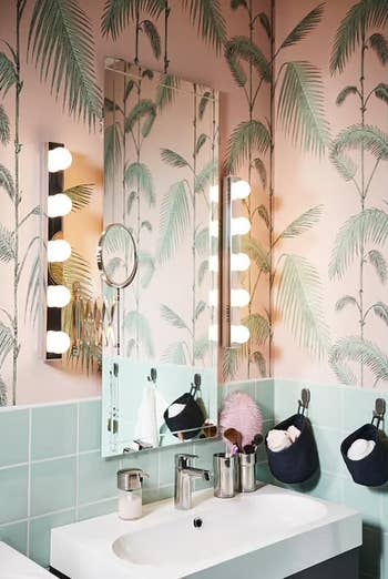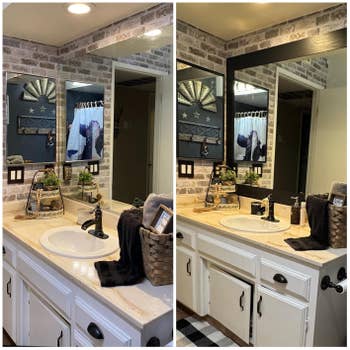 We hope you love our recommendations! While every product is independently chosen by our editors, BuzzFeed and our publishing partners may collect a share of sales or other compensation from the links on this page. You can read more about how our affiliate partnerships work in our Editorial Standards & Ethics Guide. Way to get a big return on a tiny bit of work. If you've denied yourself dreams of a non-stained toilet or task lighting *exactly* where you want it because you fear renovation costs, well I've got some news for you. There are all kinds of bath upgrades you can make without blowing your budget! Promising review: "Where do I start? I absolutely LOVE this product. I wanted to replace our bathroom mirror, but due to the size, it would have cost a lot! I came across this on Amazon and decided to give it a try. The application process was super easy and applied without bubbles as long as you go slow and rub it down as you go. I kid you not. It looks like wood and feels like it, too! You can feel and see the 'wood grain.' It’s absolutely stunning and looks like I bought a whole new mirror." —Taylor Promising review: "Two weeks ago, I didn’t even know stone bath mats existed! But wow! What a game changer! I’m one of those people that avoids my cloth bath mat when it’s wet. Because eww! Now, I can take a shower right after my husband and not have to worry about stepping on a wet bath mat. The stone absorbs the water so fast! Can’t wait to upgrade my other bathroom mats." —Angela Promising review: "I bought two to use as curtains in my studio apartment. They are translucent without being transparent, and the print is cheerful without being of an overwhelming scale." —Ursula Promising review: "OMG!!! It works!!! After having this toilet buildup I gave up on everything, but I saw that this product 'worked' and decided to give it a try... with a little elbow grease and some music blasting in the background I managed to remove it all!!! I can’t believe it. I’m so happy, I was so embarrassed when company came over and would see that, not no more... yay!!!" —Asdrubal Orantes It's super quick to install, and one cartridge can last up to three months! Promising review: "This is an excellent invention for keeping the toliet bowl fresh without a tablet that harms the flush seal. I was frequently replacing the seals in the tank but with this setup the seals last and last." —Awesome Guy Get two from Target for $21.99 (available in two colors). Promising review: "The design and color suit my mid-century decor. This plastic cabinet is easy to assemble and easy to hang. Priced so well I bought two!" —Suzanne Check out a TikTok of the cherry toilet brush in action. Promising review: "This toilet brush makes me want to clean my toilet. It is so cute, exactly what I wanted, and works perfectly!! Fits nicely into my bathroom decor. It was delivered in perfect condition and I've used it three times now. If you're thinking about buying this...do it!" —Michelle Maroon The towel warmer (from a small biz!) has four timer settings (15, 30, 45, or 60 minutes) and an auto shutoff feature. It can fit two large towels. Promising review: "Absolutely my favorite thing purchased from Amazon. You will never be able to take a shower without this once you have it. Just like right out of the dryer towels!" —Erin Promising review: "Great vanity light. This light looks lovely — nice and bright- BUT know that it is not dimmable." —Harriet And if you're especially petty, you can copy my move of saving said switch plates with a piece of marked duct tape so you know where you put 'em when you leave. This was one of the first things I did in my current apartment, thus rendering the switch plates barely noticeable — which is how I like them! Get a 10-pack of plates for plugged outlets for $8.29 and a variety of switch plates from Amazon. Snug Plugs is a small business that specializes in home improvement products. I used one of these for the exact scenario I outlined above and it's going strong a year later! Promising review: "I saw Snug Plug on TikTok and immediately ordered them. I have outlets at home AND at work that I couldn't keep anything plugged into because they're so loose. Snug Plug quickly and easily solved that problem and now I can finally have a phone charger in my den. Yay! I highly recommend this product." —KSay Get a pack of 10 from Amazon for $10.99. Promising review: "I was skeptical about being able to conceal hairline cracks in our bathroom tile that is marbled. After matching the base color, filling the cracks and waiting for the areas to dry, I honestly had a hard time finding the cracks again to apply the clear lacquer. Wish I had found this product sooner. Will recommend to all my friends." —Aileen G. I've used this in my own rental bathroom several times. I find that it stays put for about a year on my tile floor! It's easy but a bit tedious, depending on your tiled floor design. Just put on a podcast episode and get to work. Promising review: "We moved into our new home, and the shower had a really yellow grout. Cleaning didn’t do anything, and I saw this grout pen online. What a saver! Otherwise, I would have just hired someone to replace my shower. I used this grout pen, and my husband was so impressed :D The tip loses its shape fast, but just pull out the TIP AND FLIPPED IT OVER, and you’ll have a new tip." —jennifer Get it from Amazon for $8.99+ (available in two sizes). Promising review: "Best purchase ever, love that it brightened and give my bathroom a new fresh look. Easy to put together and only took about two hours." —Billy ToiletTree is a small biz specializing in bathroom and cleaning products. Promising review: "I bought this mirror for my husband. He loves it. It was so easy to put together, and I installed it on the bathroom shower. It was like 1-2-3. Very strong adhesive on the back side, and it moves up or down. I highly recommend this 