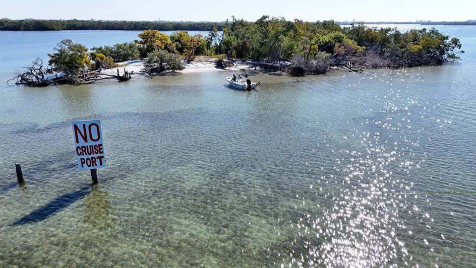 On a sunny February morning, the blue-green flats of Terra Ceia Aquatic Preserve are calm, clear and shimmering with light, waters like stained glass encircling a small island that locals call “Paradise.” From above, the island is a splotch of green brush and white sand just south of Interstate 275. From ground level, it’s a world of its own. Tiny crabs skitter the shoreline. Oysters dangle on mangrove roots. Seabirds dive shallow waters inhabited by fish and sea turtles. Despite its proximity to the highway, this pocket of Tampa Bay has a quiet calm that makes it feel removed from urban Florida — an atmosphere that attracts wildlife and nature-seekers. But some worry that could soon change. Two companies, SSA Marine and Slip Knott LLC, are proposing to build a new cruise terminal on this untouched landscape to accommodate megaships incapable of passing under the Sunshine Skyway Bridge. The companies have pitched the preservation of Rattlesnake Key, which SSA Marine now owns, as a conservation tradeoff ahead of their plans to develop the Knott-Cowen Tract into a central hub of cruise port activity. While details are so far slim, their plans also show Paradise Island and Skeet Key within the footprint of the project, which would require significant dredging and development in the area. The owner of nearby Ed’s Key also recently proposed developing a resort there to complement the cruise port. But many locals want to see the entire area — including its islands, wetlands and shallow bay flats — left untouched. Just offshore Paradise Island, a recently placed sign reflects that sentiment, reading simply: “NO CRUISE PORT.” What could a cruise port change? Here’s a closer look at the area as it exists today.
