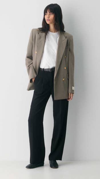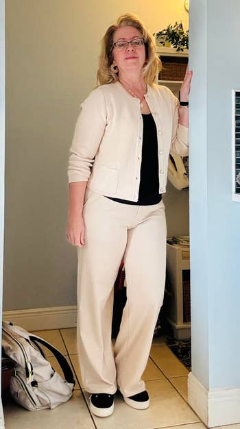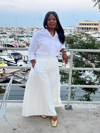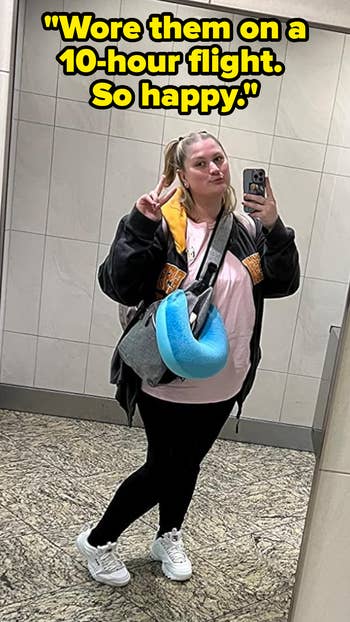 We hope you love our recommendations! While every product is independently chosen by our editors, BuzzFeed and our publishing partners may collect a share of sales or other compensation from the links on this page. You can read more about how our affiliate partnerships work in our Editorial Standards & Ethics Guide. You know that moment when you step off the plane and find yourself walking through a crowd of people waiting to board the next flight? It’s basically a runway, darling, and you’ve got to dress to impress. No one wants to wrestle with stiff, restrictive clothing when you’re elbow-deep in the overhead bin or curled up in a tiny airplane seat. The struggle is real when you’re searching for travel pants that check all the boxes: stretchy, breathable, wrinkle-resistant, and, of course, fabulously chic. If you have a trip coming up, you can't go wrong with any of these picks — like Quince linen pants to keep you cool and sweat-free even during long layovers; Popflex leggings that can handle the hustle and bustle as you dash to make it in time for boarding; and a beautiful pair of palazzo pants that are chic enough for a restaurant lunch after landing. You’ll be comfy and oh-so-stylish from take-off to arrival and beyond. Unless otherwise specified, all sizes in this post are listed in women's. Quince 100% European linen pants because even though you've been traveling for your bestie's dreamy destination wedding, you don't want to show up *looking* like you just flew for eight hours. The soft, breathable linen keeps you cool and cozy on long flights, while the chic design ensures you step off the plane looking polished. BuzzFeed Shopping editor and seasoned traveler Chelsea Stuart says: "I already had these pants in driftwood, black, and martini olive — and I just picked up two more colors for an upcoming trip — because I can't get enough. They're extremely comfy, wash beautifully, and deliver a low-fuss look that's still super pulled together. I agree with the majority of reviewers who say they run large, so size down if you're between sizes!" Promising reviews: "I loved these linen pants so much I ordered them in two colors. My go-to summer pants; they're great high-quality linen and so comfortable. Easy to dress down at the beach or wear with a tailored top or sweater out to dinner. Already thinking of how I'll style them for fall! A must-buy. Runs slightly large, so size down!" —Ashley C. "These are accompanying me to Costa Rica, and I already love them — the fabric is soft rather than crunchy, and the fit is so comfortable for traveling." —Janet H. Get them from Quince for $42 (available in sizes XS–XL and in 11 colors/designs). Some wide-leg "dress pants" that are actually — *surprise* — YOGA PANTS. Reviewers praise these bottoms for their smooth, buttery fabric, wide waistband, and pockets. They're versatile enough for both casual outings and dressy occasions, making them a safe bet in case you don't know the vibe of the welcome brunch after you land. Rejoice, comfort at last! Promising review: "These are among the most comfortable pants I’ve ever owned. I bought them because they were recommended as travel pants that could pass as dressier pants. I’m an elementary school teacher, and they’re fine for my somewhat casual school. I wore them while on a trip for my 60th birthday. They were the pants I wore while driving for two and a half hours; they’re that comfortable. I plan on buying a navy pair soon." —Barbara Get them from Amazon for $26.33+ (available in sizes XXS–3XL, five lengths, and 38 colors) Popflex Supersculpt leggings designed to move with you, whether you’re bending, squatting, or chasing after a runaway toddler on the loose. Wrangling little ones on a family vacation while dealing with uncomfortable clothing holding you back is an equation we want *no* part of. Promising reviews: "I love these leggings. They’re perfect for teaching, working out, and traveling. I’m slowly replacing all of my workout gear for these." —Raven C. "These are AMAZING! They fit perfect, they don’t ride down, and they look fantastic on. I’m always reaching for these!!!" —Addi M. Get them from Popflex for $75 (available in sizes XXS–3XL and five inseams). Artizia Effortless pants, a sartorial lifesaver for when you’ve just touched down and, instead of schlepping to your hotel to change, you’re headed straight to a pre-conference mixer. Promising review: "The detail and the way these pants fall is perfect! They are incredibly comfortable to wear all day. Absolutely getting more!" —Kimberly P Get them from Aritzia for $148 (available in sizes 00–16, three lengths, and in 16 additional colors). Some Gym People joggers future you will be *delighted* you snagged when you're stuck in a three-hour layover and the airport lounge is now your temporary home. With a whopping 18,000 5-star ratings, these beauties are like the holy grail of comfy pants, and reviewers say they’re every bit as good as Lululemon's popular Align pants. Promising review: "A pleasant surprise. These are my new favorite travel pants! Comfy, nice stretch, soft. I am absolutely excited and can’t wait to wear them again. The cuffs on the ankles weren’t too tight and stayed in place if I wanted to scrunch them up on my leg a little higher. The perfect weight not thin and not to thick, not see through at all! Kept me the perfect temperature on my long flight. Great quality and nice price. I highly recommend as a must have! I will be ordering more in other colors." —Susan Get them from Amazon for $25.99+ (available in sizes XS–3XL and 26 colors). Gap CashSoft sweater pants that are lightweight enough to not feel bulky, but they're still warm enough to fend off that Arctic plane air. Promising review: "Ultra soft, so warm and cozy, love traveling with these pants, perfect for the plane or everyday casual comfy wear." —anonymous Get it from Gap for $69.95 (a