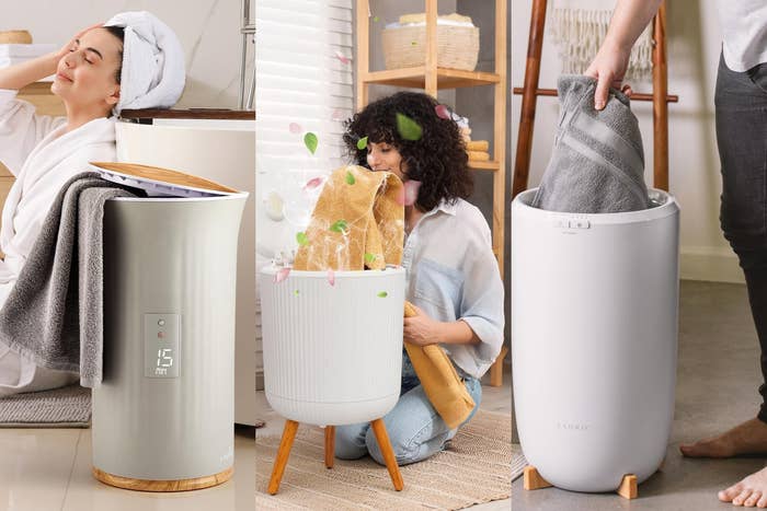 We hope you love our recommendations! While every product is independently chosen by our editors, BuzzFeed and our publishing partners may collect a share of sales or other compensation from the links on this page. You can read more about how our affiliate partnerships work in our Editorial Standards & Ethics Guide. A warm towel can make the shock of going from a steamy shower to a temperate room a lot less jarring. Wrapping yourself in a warm cocoon of terrycloth will make you feel like you’re at a spa — not a home with a pile of laundry that needs washing. You know that feeling of pulling on your favorite sweats straight out of the dryer? It’s like that. Of course if you want warm towels at home, you’ll need a towel warmer. Towel warmers may sound bougie, but they can last years for under $100, and there’s a wide range to choose from, depending on the type you like best and how much space you have to devote to it. Ready to spoil yourself? Here are seven to consider. How fun is this midcentury modern-looking warmer with its three wooden legs? It has a 12-liter capacity that can fit one large towel, if you don't want something so giant taking up space in your bathroom, and the auto-shutoff timer can go all the way up to 90 minutes. This warmer also includes scent discs for aromatherapy, to add a lovely fragrance to your towels that'll make wrapping yourself in them that much nicer. Promising review: "Honestly the SereneLife Towel Warmer is ridiculously easy to use! I mean "setup" involved me popping the legs in that's it If you can handle three clicks you can handle this. The real win is the timer. Just throw your robe or towel in hit the 30-minute setting and forget about it. When you get out it's perfect. The best part is it stays hot long after the timer quits. It even has a lock on the lid in case you have little ones or pets that might be a little nosey." —Amii Gordon Get it from Amazon for $73.95+ (available in three styles). If you don’t have a ton of space to devote to a towel warmer, this super stylish model may be the best option. Even better, you can choose from four timed heating intervals (15, 30, 45 and 60 minutes). Able to fit two oversized 40-by-70-inch towels, this bucket-style warmer comes in two colors and features a 15-minute adjustable timer with auto-shutoff (up to 60 minutes), a removable lid with a carrying handle and stabilizing feet to keep it from sliding around on your bathroom floor. Reviewers also say it's continued to serve them well several years after their initial purchase, and that it really gets the job done to heat up towels. Get it from Amazon for $99.99 (available in two colors). The space needed for a round towel warmer is nonexistent in some bathrooms, but if you want something that might be a better fit for your space, check out this large-capacity warmer that's less than a foot wide while still able to hold two large bath towels. The warmer is double-wall insulated, has an auto-shutoff timer up to 60 minutes and is available in four colors. This one also comes with aromatherapy discs. Promising review: "This is the perfect towel warmer. It is large enough for two towels but I use it for one towel and my pajamas. Items are heated up slightly after 3-5 minutes and nice and toasty after about 10 minutes. The small lemon scents that come with it are great. The time functions are great and easy to use. This is a great value for the price point. I would buy this again." —Jodi Get it from Amazon for $79.99+ (available in four colors). With room for either two towels or a big, fluffy bathrobe, this option has a high customer rating of 4.4 stars out of 5. There are several timing settings to choose from and it heats everything inside evenly. Promising review: "I bought this towel warmer for my wife’s spa, and we both love it. It heats the towels quickly and keeps them warm for a long time. The size is perfect, the quality feels very solid, and it’s super easy to use. It has made her spa services feel much more professional and comfortable. Definitely a great purchase!" —Manuel A. Get it from Amazon for $69.99+ (available in three colors). Need your warm towels fast? No problem with this large-capacity option, which offers rapid heat up in just a minute, and takes a total of six minutes to reach its high temperature. It can also hold up to two oversized towels thanks to its 21-liter capacity, and comes in two colors (white and pink). There are three layers of temperature protection to keep you safe. It also comes with a fragrance disc to help your towels smell nice for some extra indulgence. Get it from Amazon for $89.98+ (available in two sizes and four colors). This heated cabinet is just like the one you’ll find at your local spa. It holds either eight regular-sized towels or 24 washcloths. It gets toasty too, reaching up to 175 degrees — a higher temperature than many other towel warmers. Get it from Amazon for $69.99+ (available in three colors). Reviews for this post have been edited for length and/or clarity. BuzzFeed Shopping is service journalism first: our writers and editors spend all day shopping so you don’t have to, vetting products, fact-checking brand claims, and surfacing what actually helps in real life. We center readers over revenue, recommend products with authenticity (using real experiences, not ad-speak), and reflect our diverse audience, inclusive of a variety of price points, people, and needs. We cut through fake deals, favor useful info over glossy fluff, and recommend both budget and splurge options with context so you can decide what’s right for you — and still have a little fun along the way.