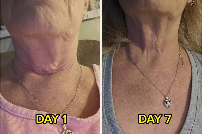 We hope you love our recommendations! While every product is independently chosen by our editors, BuzzFeed and our publishing partners may collect a share of sales or other compensation from the links on this page. You can read more about how our affiliate partnerships work in our Editorial Standards & Ethics Guide. Cold sores, yellow teeth, and rosacea are just some of the things I've found solutions for — you can thank me later. Promising reviews: "Best exfoliator out there. I've been using this product for about five years and nothing else compares to its ability to get rid of dead, flaky skin. Other kinds of physical scrubs are harsh and can damage your skin. I'm in my fifties, and I use Retin-A, which leaves your skin a bit dry and flaky. This product helps to remove that and leave a smooth surface as well as prepare the skin for treatments, moisturizers, etc... My teenage daughter, who has acne, uses it and loves it as well. The key is to put it on your clean, dry face and rub gently. If there isn't a lot of dead skin, not much will come off. If you have a lot, then the little white pills of dead skin will roll off. Magic!" —Diane H. "I am obsessed with this stuff!! I only use it about once a week, but it works wonders!! Starting to break out on your back? This stops it before it gets out of control! Ingrown hairs on the bikini line? This exfoliates the skin so they are gone before you know it!! And lastly, of course, I use this on my face... my skin never looks better!! This is a MUST-HAVE in your skincare arsenal and not just for your face!! I wish I could give it more stars!!" —Basil Meadows Get it from Amazon for $34.50 (also available in multipacks). Promising review: "This stuff is miraculous! It sprayed out just fine. I started rubbing my feet, and layers of dead skin just fell right off. I wiped the product off with a wet washcloth and then raked my nails gently over the area on my feet, and more layers of dead skin just fell right off. I'm 51, and my feet were looking awful. I can't afford to get pedicures very often, so I thought the price of this foot spray was doable. I may never get a pedicure again! I'm so glad I found this foot spray and decided to give it a try. If you have dead skin on your feet that you want to get rid of, this is the right stuff!" —JHossman Get it from Amazon for $5.48 (also available as a two-pack). Promising review: "I have extremely sensitive teeth from over-whitening in high school, but this product has been such a lifesaver! I am a daily black coffee and red wine [drinker], so my teeth have taken a toll as far as staining goes. Seriously, I was very hesitant about getting this because of how sensitive my teeth are, but I wish I got it sooner! This is such a great product!" —Mimi Doherty Get it from Amazon for $9.95+ (also available in packs of two or four). Read more about the skincare benefits of caffeine at the Cleveland Clinic. Promising review: "I love this product and have noticed a huge difference when using it consistently. I am on the younger side and don’t have the worst under-eye bags, but on those occasional mornings when my eyes are puffy with somewhat visible dark circles, this product definitely does the trick! Honestly, I love all the Good Molecules products." —Hayden Smith Promising review: “I tried EVERYTHING! I tried tree tea oil for years and various different products. Nothing worked. The reviews were so great on this that I decided to try to cure it one more time. But when you have had a condition for 35 years, you aren’t too hopeful! I followed the suggestions of some of the reviewers and cut my toenails (I only had it on my big toes) everywhere that the fungus was present. I started applying this gel, which is super easy to use. I swear to you that I noticed a difference after one application.” —WIAPilot Get it from Amazon for $16.97+ (also available with a nail file). It's fragrance-free, and you can apply it morning and night. Promising reviews: "This neck cream works!!!... I am in my 60s, I sleep on my side, and have been a sun worshiper my whole life. Thus, I have deep wrinkles and fine lines on my neck and chest. The Firm Intentions neck cream was rich and hydrating, but was quickly absorbed...After using the cream for around ten days, I was very happy to see the deep wrinkles and fine lines were smoother and my skin was plumper. The fine lines were way less noticeable! I cannot wait to see the results after a month. I definitely recommend!" —Kari H. "Game changer! ...Love it and have only been using it for about a week and already see results! Will definitely repurchase!" —Carline Trevorrow Caffeine has a number of skincare benefits, including brightening and temporarily reducing the appearance of stretch marks and cellulite, if that's something you're looking to do! You can read more about the skincare benefits of caffeine at the Cleveland Clinic. Promising review: "I could not get rid of the cellulite on my legs. I started using this product six weeks ago and can noticeably see a difference. I apply morning and evening, before bed for optimal results. It goes on smooth and has a creamy, non-sticky feel. The smell is dreamy, and even my husband has commented on the improvement. Make sure you apply in a circular motion for optimal coverage, absorption, and circulation." —Amazon Customer Get a large 240-mL tub from Amazon for $48 (available in three sizes, including a small 75-mL tub for $24). Reviewers with thin or fine hair LOVE this hair treatment, and various hair types from 3b to 4c say that it helped their damaged hair. Even folks with dyed or bleached hair say it's safe to use. TL;DR: It works! Promising review: "Like many others, I tried this as a replacement for Olaplex. Honestly, Olaplex never had a great effect on my hair and certainly wasn’t worth the price. This did an unreal job on my hair!! I was skeptical (tried a little bit first because I was petrified it would burn 