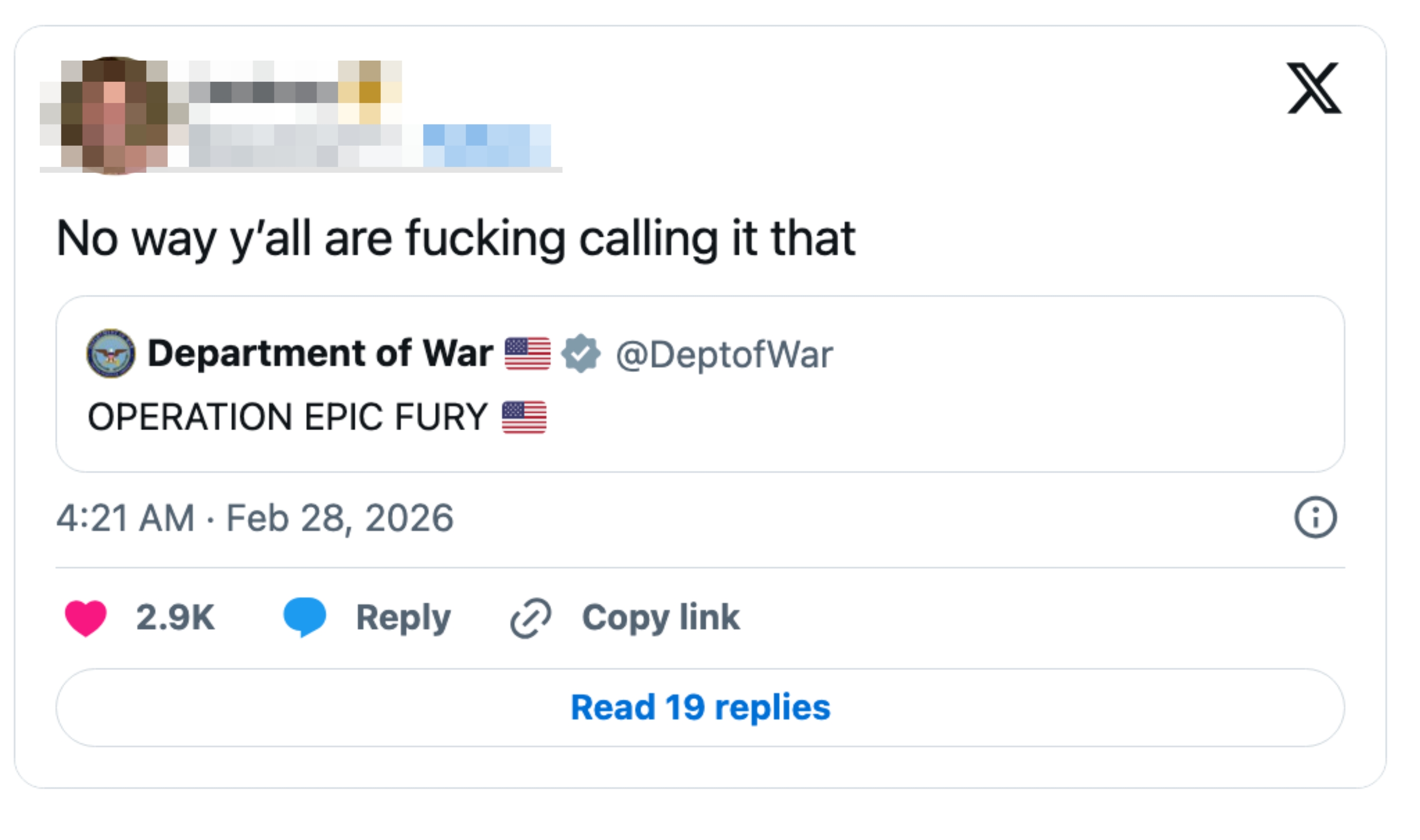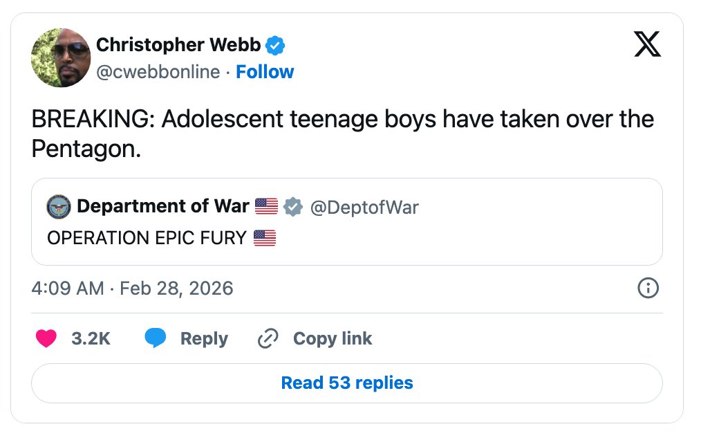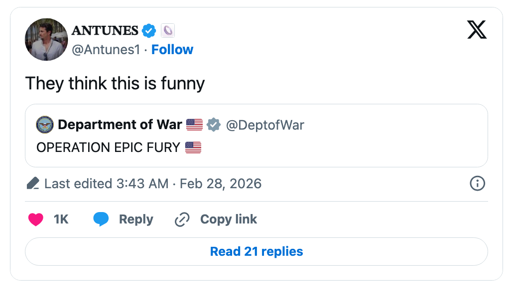 People Can't Believe What The Department Of War Just Named Their Attack On Iran