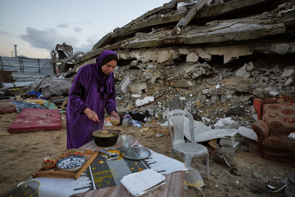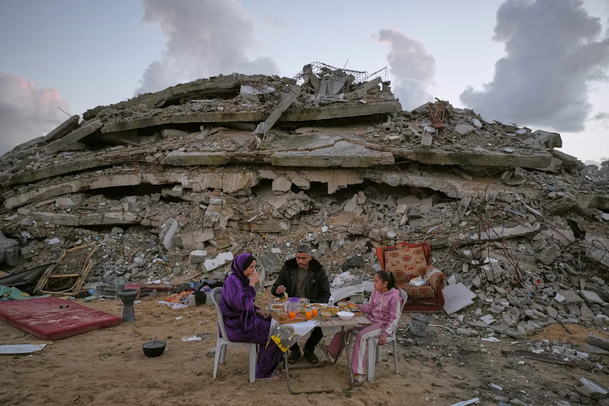 GAZA CITY, Gaza Strip (AP) — As the sun sets, Saddam al-Yazji, his wife and their daughter sip a noodle soup, breaking their daily Ramadan fast in Gaza City. They sit around a folding table set up in the dirt at the foot of a towering pile of rubble, twisted metal and concrete slabs that was once their home. Buried under the debris are the bodies of much of their family. The three are virtually the family's only survivors. Al-Yazji’s parents, his three brothers and his sister, along with most of their children, and his wife’s parents and siblings — 40 relatives in total — were all killed in a single strike when Israeli forces bombed the house in December 2023. The Islamic holy month of Ramadan is traditionally a time for family, with large, festive gatherings for iftar, the sunset meal that ends the daily fast. In the Gaza Strip, it has become a season when wartime losses hit especially deep for the many families grieving loved ones killed by Israeli forces, which have been fighting Hamas for more than two years. “I look at photos of our gatherings in Ramadan and cry,” the 35-year-old al-Yazji said. “Where is my family? All are wiped out.” “It’s the third Ramadan without them.” During Ramadans before the war, al-Yazji’s father, Kamel al-Yazji, brought all his children and grandchildren together for iftar around a large table piled with meat and rice and other dishes, recalled Saddam’s wife, Heba al-Yazji. Ramadan, when Muslims fast from dawn to dusk, is a month dedicated to religious reflection and worship. It also builds community, with the giving of charity. The elder al-Yazji was a former judge with the Palestinian Authority and a well-known sports figure in Gaza, serving as chairman of the Palestinian Athletics Federation. Saddam al-Yazji earned a living running a supermarket on the ground floor of the four-story family home in Gaza City’s Rimal neighborhood. The airstrike came only a few months into the ferocious Israeli bombardment that was launched after the Hamas-led attack on southern Israel in October 2023. The house was leveled on top of everyone inside. “We were in the same house, in other part of the house,” Saddam al-Yazji said. “We survived miraculously.” The only other survivors were the daughter and the pregnant wife of one of his brothers. Among the dead were 22 children. Some of the bodies were retrieved at the time. One of al-Yazji's brothers is buried in a grave marked with sticks at the foot of the destroyed house. Around 20 relatives remain buried under the rubble. After the strike, the couple and their daughter, 11-year-old Maryam, lived in a tent elsewhere in Gaza City for much of the war. During the previous two Ramadans, they tried as much as possible to come visit the rubble of their home and have iftar there. When a ceasefire deal came into effect in October, the three moved to a tent next to their old home. “Life is empty,” Heba al-Yazji said. “The war took everything from me. We wish we had died with them rather than remain alone.” Throughout the war, Israel has struck homes and tent camps sheltering Palestinians, often killing large numbers of families at once. Israel says it targets Hamas militants, though it rarely says who were the specific targets. Israel’s campaign has killed more than 72,000 people, nearly half of them women and children, according to the Gaza Health Ministry. The ministry, which is part of the Hamas-led government, maintains detailed casualty records seen as generally reliable by U.N. agencies and independent experts, though it does not give a breakdown of civilians and militants. Around 8,000 more are still buried under the rubble of destroyed homes, according to the ministry. Retrieving most of those bodies was out of the question when airstrikes and ground assaults were raging. Under the ceasefire, recovery efforts have increased, though they are still hampered by a lack of heavy equipment. The Israeli campaign was triggered by the Hamas attack that killed some 1,200 people in Israel and took more than 250 others hostage. The hostages have been released, mostly as part of ceasefire agreements. Almost everyone in Gaza has lost at least extended family members. Nearly the entire population of 2.1 million is homeless, with most living in vast tent camps. More than 80% of the strip’s buildings have been damaged or destroyed. A landscape of rubble that was once the Rimal district extended all around the small Ramadan table where the three surviving al-Yazjis ate their meal. Saddam al-Yazji recalled the “great dining table” of his family’s past Ramadan gatherings and how they all looked forward to it every year. “I feel like I have betrayed them by being alive,” he said. ___ Magdy reported from Cairo.