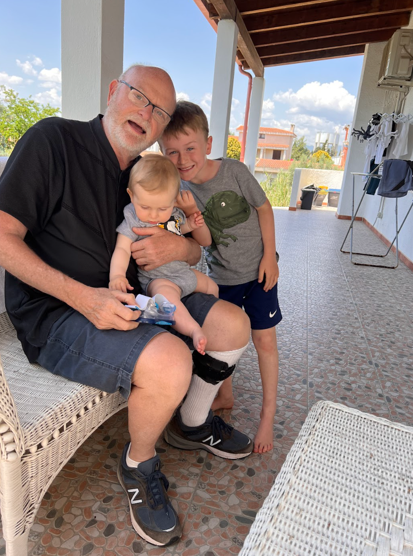 "At a time when the universe had robbed me — of my husband’s health and companionship, of security, contentment and peace of mind — she offered me a gift." Ten minutes after my husband arrived in his hospital room, the space throbbed with doctors, nurses, therapists and technicians. Warnings beeped on machines. White coats huddled and whispered. And then Joel was rushed back out the door, gurney wheels spinning, propelled by a fleet of scrubs in sprint mode. We had just returned from the Olympic Games in Rio de Janeiro. Our next trip would be from Wisconsin to Portland, Oregon, to welcome our first grandchild. But first, Joel elected to have a hip replacement. He counted on it to improve his quality of life. Instead, a nick from the retractor caused a life-threatening bleed that set off a cascade of catastrophes. Within a few hours, he went from a healthy, active, 63-year-old to an unconscious, life-support-dependent ICU patient. Kidney failure followed, plus an obstructed colon and compartment syndrome — all complications of what should have been a routine procedure. To make matters worse, the doctor who fucked up his hip replacement was in charge of fixing the mistake. I had trusted too much — the doctors, the hospital, the statistics proclaiming hip replacement common and safe. Why hadn’t I asked more questions? I thought, berating myself. Why hadn’t I educated myself about the risks? Why hadn’t I asked for the procedure to be done at a larger, regional facility? Prepared for a one- to three-day hospital stay, with a return to normal in six weeks, Joel instead embarked on a monthslong hospitalization with no guaranteed survival. And since he was drugged into incoherence, I made decisions for him. With no medical knowledge and little experience in trauma, surgeries or hospitals, I once again trusted too much. The staff invited me to daily briefings, but their terminology confused me, and I missed information because they talked so fast. I wanted to go back in time. I hoped it was all a dream. Still, I tried to memorize their words and repeat each message to our daughters. The community hospital’s small cadre of ICU nurses monitored Joel around the clock, checking his breathing tube, supervising dialysis and scheduling multiple surgeries per week. Nurses handed me consent forms with little explanation, assuring me each surgery was essential to remove dead tissue from Joel’s leg. I signed the forms until 90% of his lower leg muscle was gone. The author (background left), her husband Joel (foreground left), her daughter, Elizabeth, and her partner, Josh, celebrating a birthday in Wauwatosa, Wisconsin. I had so many questions: Why was the doctor who botched the hip replacement now in charge of Joel’s recovery? Why did the lead surgeon disregard the colon specialist’s recommendation to have Joel evaluated elsewhere? Why was there a rotating staff instead of one director in charge of intensive care? And why were two of Joel’s doctors arguing at the central ICU desk? “You know what they’re arguing about, don’t you?” she said. She never asked if we were Jewish (we’re not) or if I needed spiritual guidance. Just minutes before, a nurse had told me one doctor advocated amputating Joel’s leg; the other disagreed. The argument continued. Why only two doctors instead of a larger team? I wondered. Why did they not ask my opinion? Who would make the ultimate decision? “You can request a different hospital,” she told me calmly, as though she had been reading my thoughts. “You could have your husband transferred.” Twenty minutes to the east was a prominent medical facility affiliated with a medical college and staffed with hundreds of doctors, research teams, and state-of-the-art equipment. But in the fuzz of shock and stress, I hadn’t considered this alternative. “Maybe discuss it with your daughters,” the rabbi said. For the first time in two weeks, I sensed someone on my side. She had assessed the situation and proposed I abandon the place that employed her. She suggested there was a better place than the one she represented. But more than that, she gave me agency. She assumed I had power even as I felt powerless. She assumed I was fierce even as I felt impotent. Her suggestion seemed impossible. Doctors, not wives, made decisions. Would anyone listen to me? I wondered. How would I move a critically ill man who needed minute-by-minute monitoring? Still, I knew if I didn’t act quickly, my husband’s leg could be gone. He could even lose his life. Joel playing with grandchildren Stanley and George in Sardinia, Italy. "Joel and I joined our daughter, Gwen, there to help with childcare while she trained for and raced a triathlon," the author wrote. I went home, and I made phone calls to that regional hospital. I discovered a team of limb salvage specialists who saved legs instead of amputating them, and I found a doctor to supervise my husband’s case. At 7 a.m. the next day, intimidated and fearful, I approached the authority figures I had been taught to trust — the medical professionals who towered from their self-constructed pedestals. I told them I had initiated a transfer and my husband would be leaving their facility. All day, I endured delays, waiting for a bed, waiting for approval, waiting for coordination — waiting, waiting, waiting. At 10 p.m., Joel was transferred in an ambulance to the larger hospital, where he would spend the next 2 1/2 months. He still required surgeries, feeding tubes and dialysis. But now, he had a team of doctors dedicated to saving both limb and life, with resources beyond those in the local hospital. And he had a wife with a voice. Would I have found my voice without that rabbi? I’m not convinced I would have. But once I initiated change, I intended to do it again. Not all my requests were heeded. But sometimes, when I pointed out a symptom or insisted on a test, my inquiry led to a new treatment. My husba