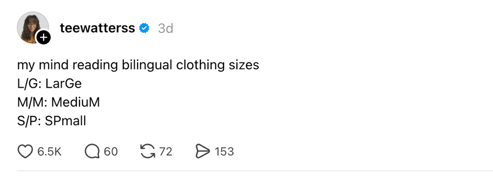The ladies of the internet never fail to brighten our day with their brilliant and succinct wit. Each week, HuffPost Women rounds up their hilarious musings. Scroll through this week’s great tweets, threads and other posts from women, and then visit our “Funniest Tweets From Women” page for past roundups. Sign up for our Funniest Tweets of the Week newsletter here. my bf is beefing with the 6 year old i babysit bc he has a crush on me. he’s asking me things like “are you with him right now?” yeah and we’re watching roblox conspiracies one time i was on an elevator and a guy dropped a bunch of loose grapes on the ground & was like “omg sorry i haven’t eaten grapes in a while” & i think about him whenever i have to handle grapes after a long break why do people named thomas go by tom & not ass the bond between a girl and the mediocre book she read when she was 13-14 is unbreakable That one time my anxiety was so bad I googled “is it legal to do laundry at night” There are no 2 temperatures further apart than 55° in March and 55° in September one time I told my therapist I was scared I might be a narcissist and she immediately goes “okay tell me 3 things you like about yourself” and that was the funniest way to relieve my anxiety all this RTO vs WFH stuff can be solved so easily: when my hair looks really good, everyone has to come into the office. otherwise, whatever at my desk silently saying “what the hell are you even talking about” every time i receive an email. even if it’s an email i understand and was expecting Reading as an adult is cool and all, but where’s the personal pan pizza for reaching my reading goals? my roommate that hates me is sobbing in her room and i’m in the kitchen making a baked potato… i feel awful imagine you’re crying and you leave your room to see a girl you hate making a baked potato at the doctor's office booing all the names being called that aren't mine just heard a hair stylist say to her client “it’s so crazy how we both have different information based on our algorithms” i’ve never clocked into the eavesdropping factory faster *takes sip of drink on first date* so should we start with openai or iran One time when I was like 11 my dad took me to an Italian restaurant and the waiter asked what my name was and I said “Sam but you can call me captain ravioli” and my dad just looked at me and said “what the fuck was that? don’t do that” and I’ve been chasing that high ever since. if they nuke us can they make sure to do it in the morning i don’t wanna work all fucking day just to come home and get nuked Applauding the innovation shown by this restaurant that tried to conceal their C rating from the Department of Health pic.twitter.com/Wqwh00upjE I’m a quadruplet and my mom always tells the story of how as a kid I would look out the window and ask “are there maybe other kids to play with” Teyana’s daughter, Rue, graduated summa cum laude from the Blue Ivy School of Management 👩🏾🎓pic.twitter.com/4pNDkInvRm https://t.co/G2oTUjEvhh People come over to ur house and are like “can i get myself a glass of water” and you’re like “sure” and u look over and they've chosen literally the most random glass you've ever seen. & for the lady, perhaps a fucking break? I have never see a hot/handsome man call women “mid”. It’s always the ones who look like God submitted them at 23:59. i just ate a pancake in front of my grandma and she said "i thought you hated those" because i told her once that i like waffles. i guess twitter isn't the only place Education. That’s the Portuguese flag sir. https://t.co/y2amJVxsX9 I don’t know what's longer:a microwave minute or watching a video while someone else is holding the phone insisting it's hilarious. By entering your email and clicking Sign Up, you're agreeing to let us send you customized marketing messages about us and our advertising partners. You are also agreeing to our Terms of Service and Privacy Policy.