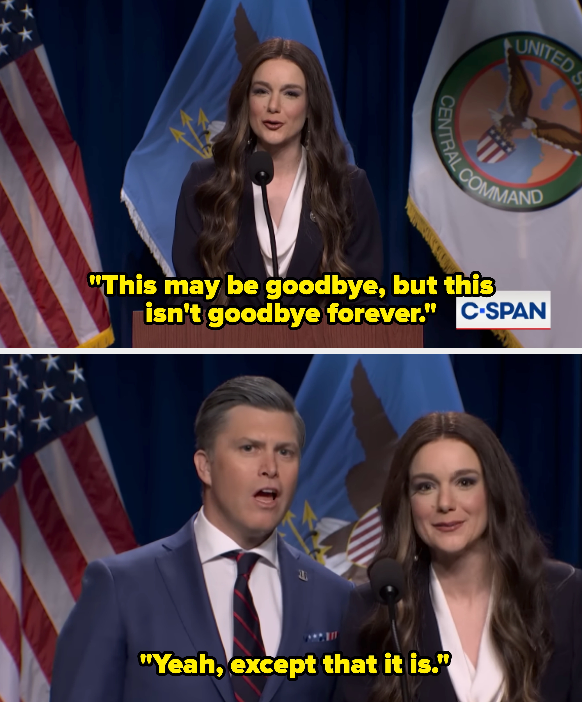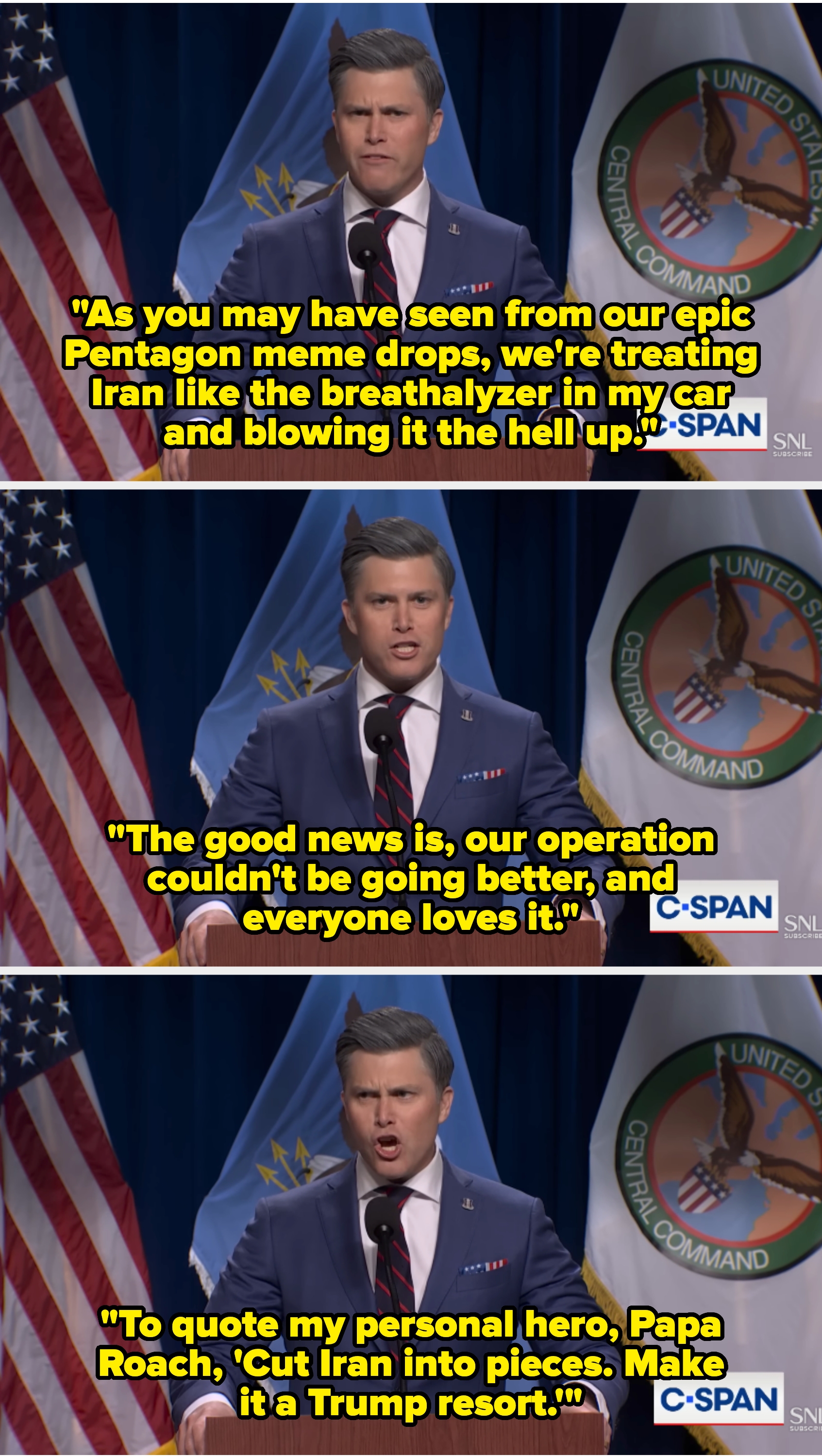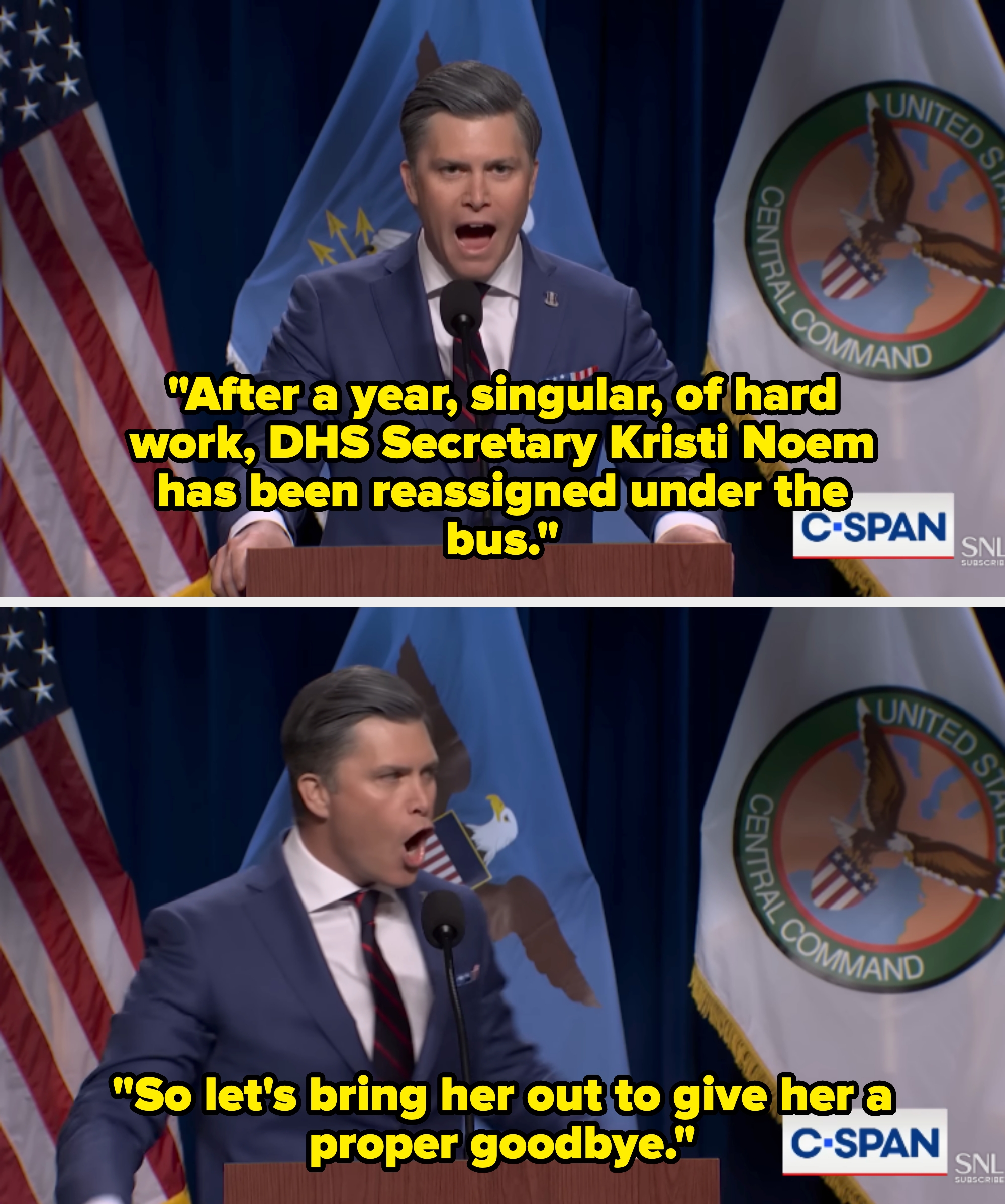 "There's nothing better in these times to watch than Jost's secretary of incompetence." If you must know, I based my entire personality on Seasons 2-5 of "Girls," and I'm a huge gamer. "Even Hegseth would agree Colin captured his 'warrior ethos' perfectly," one person wrote. Another said, "You had me at Hegstand." "He's soooo good as Hegseth it's incredible," someone else added. Another person said, "Jost as unhinged fratboy hegseth will never not be funny." One person said, "Honestly, I can't see Hegseth now without thinking of Colin," and someone else added, "These Hegseth skits will go down in history as some of the best." "There's nothing better in these times to watch than Jost's secretary of incompetence," another user wrote. This person praised Noem's portrayal, writing, "Alex Padilla got Noem's voice perfectly." "That moment when you realize SNL is no longer writing scripts, they're just doing slightly dramatized reenactments of reality," one person said. Someone else wrote, "SNL has now become America's most credible news source." Another added, "If it wasn't for the SNL end card would we know it wasn't the actual press conference?"ย Lastly, someone asked, "When did SNL turn into a documentary program?"