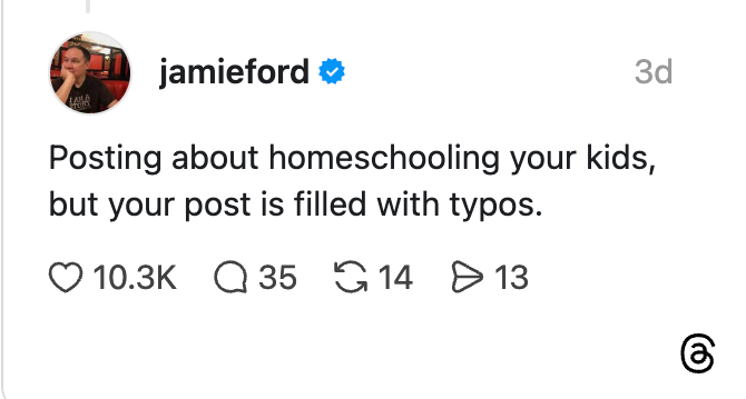 "Posting about homeschooling your kids, but your post is filled with typos..." As BuzzFeed's politics lead, my job is to do the doomscrolling for you.