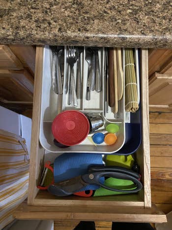We hope you love our recommendations! While every product is independently chosen by our editors, BuzzFeed and our publishing partners may collect a share of sales or other compensation from the links on this page. You can read more about how our affiliate partnerships work in our Editorial Standards & Ethics Guide. But, you know, let your landlord know that it's all temporary or reversible. Let's get that security deposit back! Anyone who's cooked a meal or 20 in a rental kitchen (present party included) likely has a mental list of things they'd change if they could. But, y'know, it's a rental. Welp, there lots of little upgrades that can make your kitchen work better for you and/or *look* nicer without compromising you getting your security deposit back after moving. Think a small cabinet-mounted kitchen trash can that won't be an eyesore, an under-sink organizer that'll fit around your pipes, and lots more stuff built to make life easier. StoveShelf is a small business, and these shelves are built to last a lifetime. Promising review: "This product is so simple but already feels like it has a huge impact on my kitchen. I have a tiny kitchen, so I need to sneak any extra storage where I can, and this adds a shelf that wasn’t there before. I am looking forward to adding the Stoveshelf oil bottle set to my collection, so my most frequently used cooking oils are that much easier to grab." —Alison W Get it from Amazon for $39.99 (available in three types and three sizes). I have VERY narrow kitchen drawers in my NYC one-bedroom apartment kitchen and buying one of these organizers has transformed my cutlery drawer. I'm able to safely reach in and grab whatever I need (like a manual can opener for tuna salad or a mini whisk for a hot chocolate) without having to sift tools around. You can peep the full TikTok showing how easily these go on. They're made by small biz ReVent Covers. They also make custom covers for air vents to make them less of an eyesore, so check those out if you have some unsightly vents in your home. I like the sleek look of these white ones, but Amazon sells these in a bunch of fun designs too if you're looking to add a pop of color. Get it from ReVent Covers on Etsy for $39.99+ (originally $49.99+; available in five designs and many sizes). Promising review: "TikTok inspired me. Guys, this thing is the real deal. Everything that doesn't fit on my spice rack ended up cluttering my cabinets. This thing solved that problem efficiently, quickly, and reasonably. We added a little extra double sided tape to the bottom to make it extra secure. Love it." —Kaitlyn B. Promising review: "Can't beat the quality for the price! Solid weight, none arrived scratched, bent or broken. Definitely get the template! It makes installation a breeze! With the template, I had 24 handles installed in less than 45 minutes! Immediately upgraded my cabinets. Very happy with this purchase!" —alexa Get it from Amazon for $6.99+ (available in quantities 1–60 and in seven colors). Promising review: "I ordered these just to determine if we really needed under cabinet lighting. I really wasn't expecting much because of the price. It is very easy to install, with five levels of brightness with the included remote control, timers for on and off, and a manual on/off switch in the connecting wiring if you don't use the remote. Standard 2025 button battery for the remote. I really don't know how they can be sold for the price I paid. Also received in two days. The photo was taken in a very dark kitchen. Updated: I ordered two more packages to finish the lighting required. The electrical plug is much better since it does not stick out from the wall so far. Very pleased with these units." —Anthony E Spearman Get three 12-inch lights from Amazon for $13.59. Promising review: "This has been the best situation for organizing my recycling. I no longer have to deal with another bin on the floor." —Dora SnapPower is a small biz that specializes in unique and innovative lighting products. Promising review: "I ordered this after seeing it on TikTok. I’m very happy with this product!" —Miss. Harris "Game changer. When I get up, I don’t want to wake everyone up with flipping on lights and all. These provide plenty of walking through the house light. Super easy installation, too." —Monica Martinez Get it from Amazon for $22.98 (available in three outlet styles and four colors). Promising review: "I installed an expensive soft white tile (if there is such a thing) floor in the kitchen when I bought my house. At the time, it was a new product and it was beautiful – that fuzzy, warm feeling changed the first time I dropped a fork. I have been so frustrated no wanting to rip up and put down replacement tiles. The grout pen made it look new again, I am thrilled with the results!" —K. Robles Get it from Amazon for $8.99+ (available in two sizes). Psst, as you can see above, this set also comes with a crumb catcher where your stovetop meets your countertop! Promising review: "I've been using the foil ones and while they do the job, they're not so nice to look at. I like that this is black so it matches the original color of the appliances, but more importantly I like that this has a larger surface area to catch the drips that the foil ones never could before. They're also trim to fit, so they get right up into each burner without leaving gaps where drips can burn where it's hardest to clean. Time will tell if they're as durable/reusable as they claim. If they are, then I'll try to trim two of the spares to fit the center large burner. Overall recommended." —Michael Get an 8-pack from Amazon for $10.99 (also available in four colors). Enhances the natural beauty and depth of grain on finished *and* unfinished wood. For use on antiques, dining tables, kitchen cabinets, wood doors and trim, etc. Promising review: "I have tried numerous products on my wood kitchen cabinets, and nothing has worked. You can