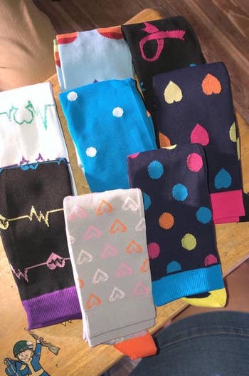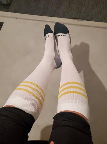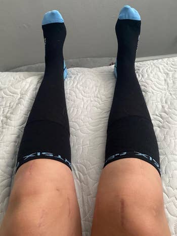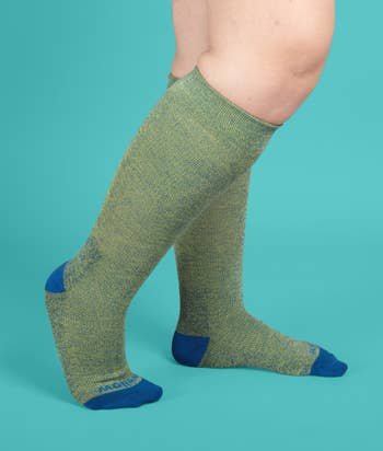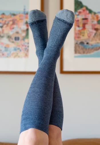 We hope you love our recommendations! While every product is independently chosen by our editors, BuzzFeed and our publishing partners may collect a share of sales or other compensation from the links on this page. You can read more about how our affiliate partnerships work in our Editorial Standards & Ethics Guide. Leg pain, fatigue, and swelling don't have to put a damper on your travel plans. Booking a flight to a far-off destination is exciting, but travel isn't always easy on our bodies; in fact, it can come with a lot of discomfort, particularly in the lower body region. Compression socks are a popular solution for the leg pain, swelling, and fatigue that can come along with long plane rides or 12-hour days on your feet spent exploring a new locale — but it's important to know exactly what you're buying and why before filling up your carry-on with compression socks. Compression socks are measured in mmHg (which stands for millimeters of mercury), and the higher the number, the greater the compression. Most compression socks offer what's called graduated compression, which puts the greatest squeeze on your ankles and lightens the pressure as it goes up your leg. For travel purposes, graduated compression socks offering light to firm compression is likely what you're looking for. That being said, it's important to talk to your doctor about whether compression socks are a good option for you, and the right level of compression for your needs. (You can also read more about compression socks at the Cleveland Clinic.) The best compression socks for travel include those that are breathable, moisture wicking, and cushioned, plus shorter length options for those who don't want a knee-high sock. Some brands offer extended size ranges for wide calves, and fortunately for those who like to stay stylish while jetsetting, they come in a bunch of cute styles too. Level of compression: 18–25 mmHg (moderate/firm) Wellow compression socks check all the boxes for a solid pair of travel compression socks. They come in a bunch of cute colors and wide calf sizes, and they offer moderate compression to help support blood circulation in your legs, reduce fatigue, and prevent swelling in your feet. Wellow socks are made from bamboo-derived viscose, which means they're moisture-wicking and breathable, in case you're prone to sweaty feet. And they're super soft (not scratchy) — they were literally designed to feel like a gentle hug on your legs. Promising review: "My legs feel so much better when I wear compression socks on a long flight. I normally have three complaints about normal compression socks: I get too hot, they come up too high and pinch behind my knee, and my calves are wide so they're too tight. These socks are really nice — they're thick but not too hot. I managed to keep them on for most of a 10-hour flight." —Paula Get a pair from Amazon for $29.99 (available in sizes S–XL and M–XL Wide (on a separate listing), and many styles). Level of compression: 15–20 mmHg (moderate) Comrad nylon compression socks that are thinner and stretchier than some other pairs, so they're a great lightweight option for long travel days. And if you're in need of odor control, these have antimicrobial silver ion technology that helps stop the stink so you can wear them 3–4 times before washing — definitely a plus if you're traveling with just a carry-on. Also, lots of pregnant reviewers mention these really helped with swelling while flying. Promising reviews: "Just wore these on a 14.5-hour flight in my second trimester, and my feet did not swell at all! I also got up every two hours and drank a lot of water / electrolytes, but I’ve never gotten off a long flight with no swelling before." —AtticusF "These have been my favorite compression socks to wear while pregnant. I like that they are thinner and nylon so my feet don't get too hot. They stay in place, go up to my knee, and really help with the swelling." —Shayna Get a pair from Amazon for $33.99 (available in sizes S–XL and M–L Wide, and 27 styles). Level of compression: 15–20 mmHg (moderate), 20–30 mmHg (firm), and 30–40 mmHg (medical grade) Vim & Vigr compression socks that come in a ton of styles and include wide-calf sizing, and they even let you pick between three levels of compression. Their socks also come in four different materials — cotton, merino wool, nylon, and moisture-wicking nylon — so you can shop by your preference! Note: Vim & Vigr socks are available with 30–40 mmHg medical-grade compression, but talk to your doctor before choosing that level of support. Promising review: "These socks put the fun in functional. They are super comfy and not hard to put on. Plus, they look great. I love stripes so I had to get a pair. I rocked them out on recent flight and my legs thanked me for it. I have 16-inch circumference calves and they fit great." —Kathryn C. Get a solid-colored pair from Vim & Vigr for $38+ (available in sizes S–XL and S–XL Wide, and three compression levels). And shop all their other compression sock styles, with four material options. Physix Gear compression socks, an Amazon-popular pair with over 60,000 5-star ratings. Reviewers rave about how these help with fatigue, leg cramps, and swelling during long travel days, and they're popular for workouts and sports use as well. Check out our full Physix Gear compression socks review for more deets. Promising review: "These are my favorite, go-to compression socks for travel. This is the second pair I’ve purchased. I wear these on short-haul flights (1.5–5 hours) and long-haul flights (10+ hours) and my legs feel great, no swelling, no fatigue at all. I bought this second pair for flights to France and the UK, and they didn’t bunch up, roll down or feel too tight — but be sure to get your correct size so they fit comfortably." —California Pointe Get a pair from Amazon for $18.63+ (available in sizes S–XXL and 13 styles). Fitrell