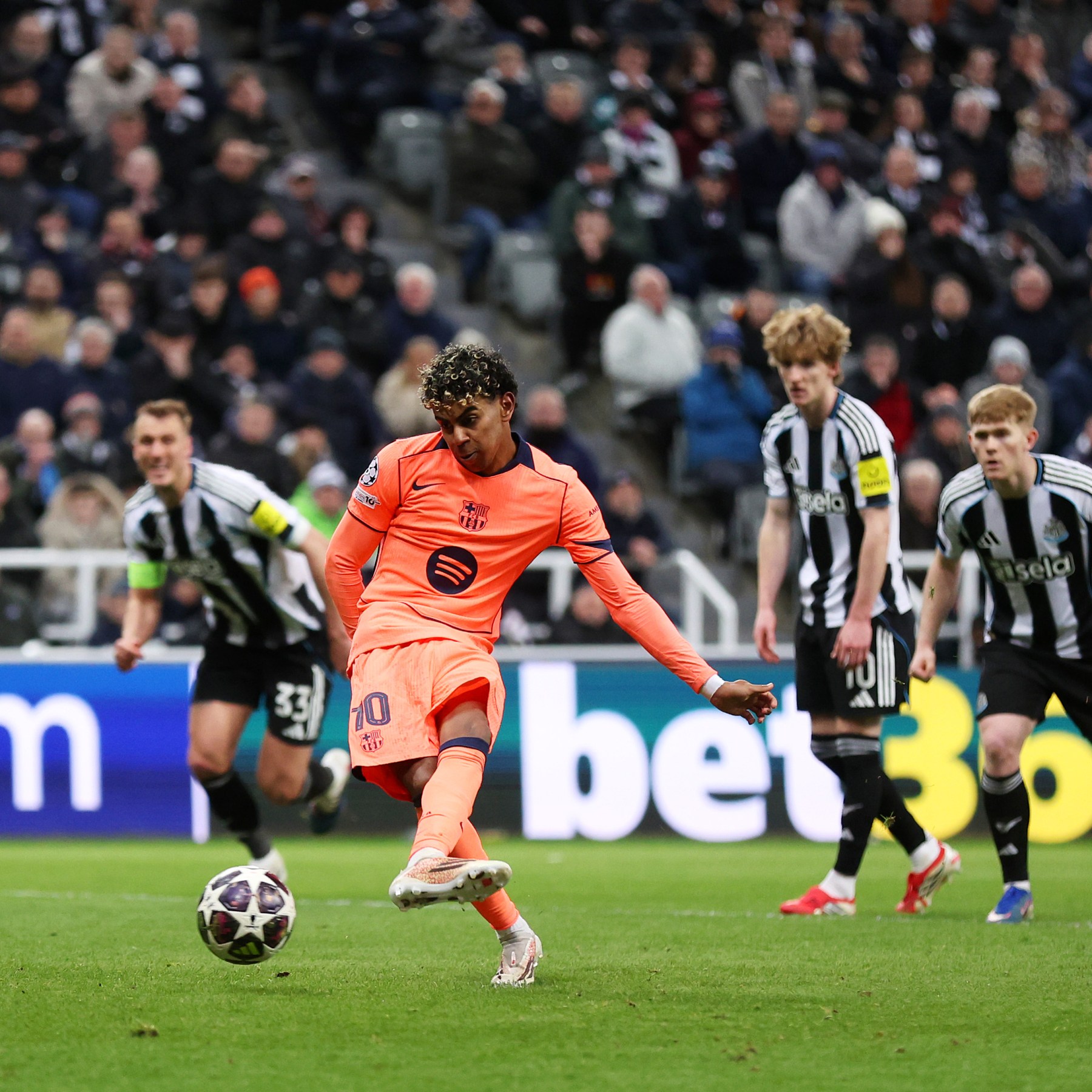 Barcelona needed Lamine Yamal’s penalty with the last kick of the game to cancel out Harvey Barnes’s opener. Share Save Barcelona’s Lamine Yamal struck from the penalty spot with the final kick of the game to salvage a 1-1 draw with Newcastle United in the first leg of their Champions League last-16 tie, cancelling out a late strike from Harvey Barnes. Newcastle appeared set to take a slender advantage into the second leg after Barnes scored in the 86th minute, when he volleyed home Jacob Murphy’s cross on Tuesday. But elation for the home fans turned to heartbreak when Malick Thiaw brought Dani Olmo down in the box in the fourth minute of stoppage time, and Yamal fired the penalty into the bottom corner as Aaron Ramsdale dove the wrong way. Newcastle’s Joelinton thought he had scored earlier in the second half when he smashed home the rebound of Barnes’s shot off the post, but the linesman quickly raised his flag for offside. The second leg is at Barcelona on March 18. Elsewhere on Tuesday, Mario Lemina’s early diving header handed Galatasaray a 1-0 victory over Liverpool in their Champions League last-16 first leg in Istanbul, leaving the tie finely balanced after a compelling contest in which both sides saw goals disallowed. The Turkish champions struck after seven minutes, when Lemina nodded home after Victor Osimhen headed a corner back across goal, giving them a precious advantage ahead of the second leg at Anfield. In Italy, Bayern Munich dismantled Atalanta 6-1 in a dominant Champions League last-16 first-leg performance on Tuesday, seizing control from the outset in Bergamo. The visitors surged into a three-goal lead within the opening 25 minutes, leaving the home side struggling to gain any sort of foothold in the contest. Meanwhile, Atletico Madrid tore Tottenham Hotspur apart in a stunning first-half blitz on Tuesday, powering to a 5-2 victory in the first leg of their Champions League last-16 tie and leaving the Premier League side with a mountain to climb in London. The visitors’ 22-year-old goalkeeper, Antonin Kinsky, endured a night to forget on his first appearance since October and only his third of the season. Two costly errors from the Czech helped Atletico race into a commanding lead, and he was substituted in the 17th minute by manager Igor Tudor immediately after Atletico’s third goal.
