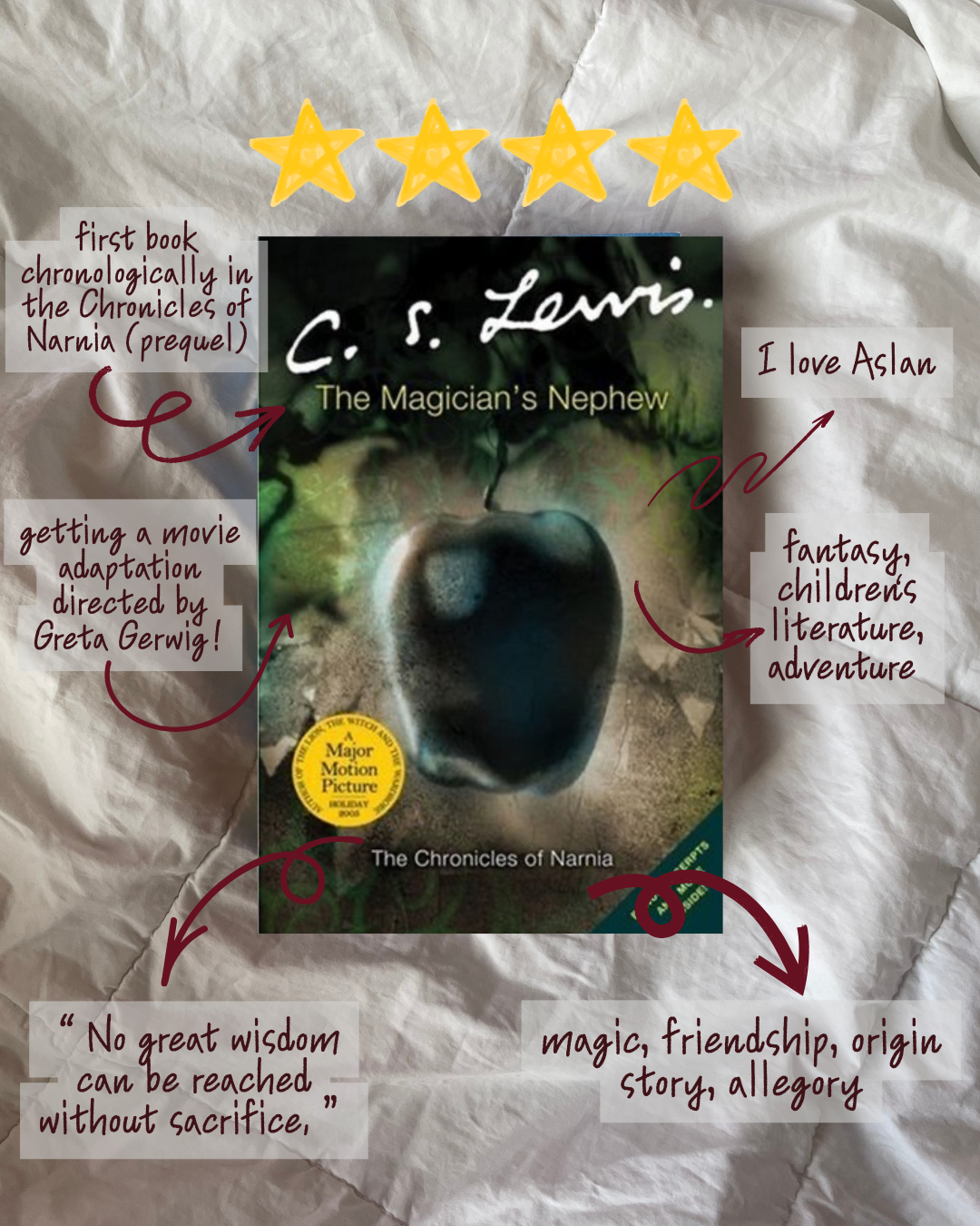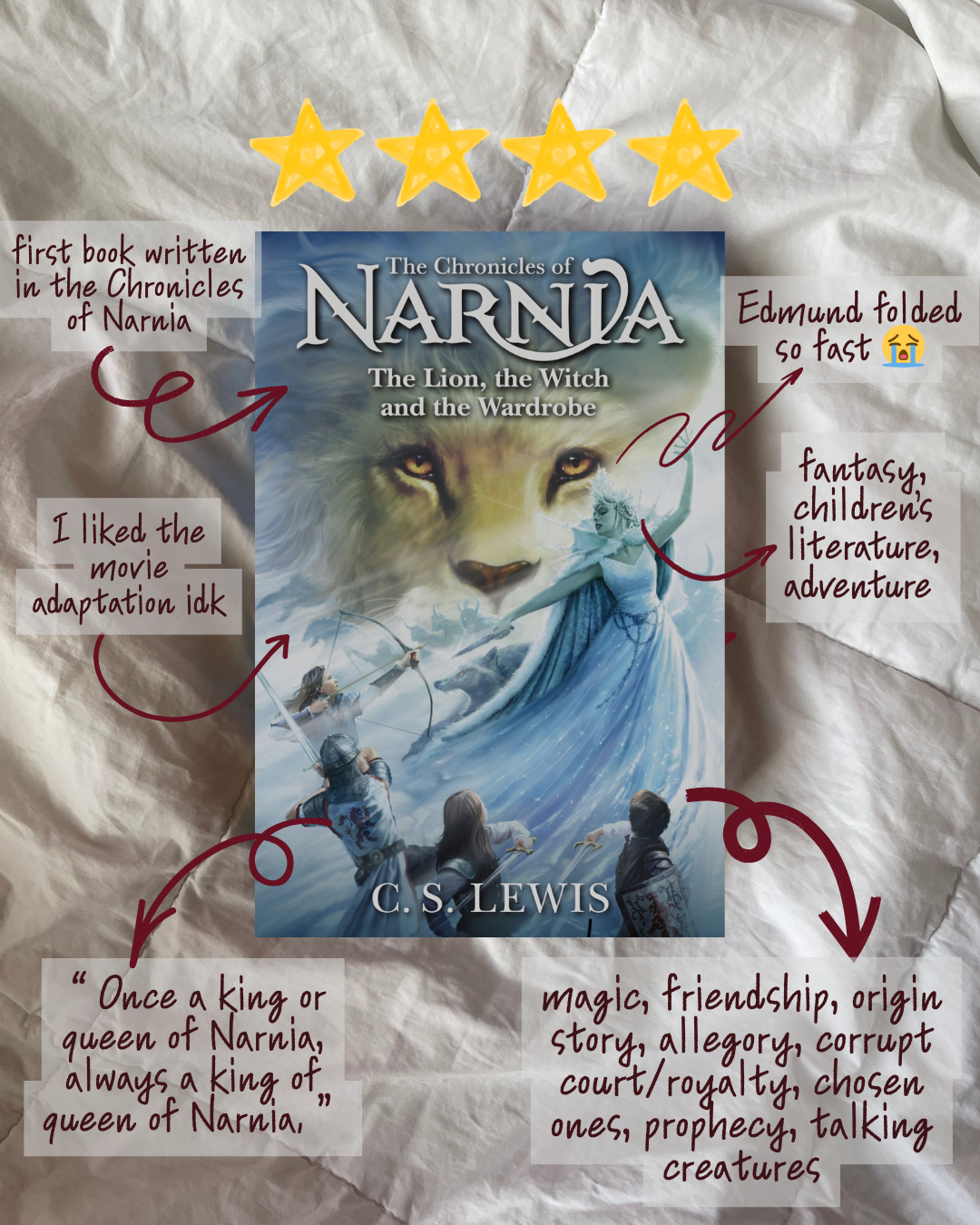 A shorter month packed with magic tea, a lion Jesus, Turkish delights, swashbuckling, and breaking the fourth wall... I'm a Southern California-based writer on the Lifestyle team who likes to try and rank viral foods and read and recommend awesome books. Not going to lie, this was my reading goal last year, but I didn't make it. Like, I was waaaaay far off (22 books) because, well, I was busy, which is why I'm trying again this year — and am even more determined to reach it. (I also read a majority of my books on Kindle because I was in New York for a good chunk of February to visit my sister, nephews, and niece, and I didn't want to bring my physical books.) Ning is a talented shénnóng-tu, aka a magic tea brewer apprentice who's been following in the footsteps of her mother, a shénnóng-shī (basically master status). But when Ning fails to detect a poison in the tea she brewed for her mother and sister, it leads to her mother's death, and her sister falling gravely ill. When Ning finds out about a competition taking place at the Imperial Palace, where the winner becomes the royal shénnóng-shī and is promised a favor by the princess, she sets off from her hometown, determined to use the favor to save her sister. But political tension and danger lurks throughout the palace, and Ning has to rely on herself, her magic, her newfound friends, and a mysterious boy to survive through it all. This is basically the origin story of Narnia and answers all the questions I have whenever I watch The Lion, the Witch, and the Wardrobe. To set the scene, we have Digory and Polly, two neighborhood kids who've become friends. While exploring, they end up in Digory's Uncle Andrew's study, where he basically spends all his time being obsessed with magic and his experiments, thinking he's found a way to travel to a different dimension/world (spoiler alert: he has). Well, Uncle Andrew forcibly sends Digory and Polly through space and time, and they eventually stumble into a new world that's literally being created right before their eyes by a majestic lion (and I think you know who I'm talking about). But when Aslan finds out that Jadis, a witch from another world, followed the kids into Narnia, he sends Digory on a task that tests his integrity, honesty, and character. Again, I'm just going to assume everyone knows about The Lion, the Witch, and the Wardrobe, but if you don't, the tea is that during WWII, four siblings (Peter, Susan, Edmund, and Lucy) are sent to live with Professor Digory (!!) in the English countryside. There, they stumble into a wardrobe that transports them into the world of Narnia, where the White Witch reigns in endless winter. However, there's a prophecy connected to the kids that could lead to the White Witch's demise — and she does everything she can to stop it from coming true. With the help of some animal friends, really sharp swords, and Aslan the almighty, Peter, Susan, Edmund, and Lucy begin an adventure of a literal lifetime. After her father abandoned her on a dangerous island after her mother died in a shipwreck, Fable has been working for years as a talented dredger, trying to get enough coin to buy passage off the island with dreams to reunite with her dad and work on his crew. After finally saving up enough, she convinces West, the captain of a ship called the Marigold (and her main buyer), to take her on and bring her closer to her father. But as the voyage continues, Fable notices there's a reason why the Marigold's crew is so small, why West was so hesitant to bring her with them, and why her father seemingly stopped looking for her all this time. In a world that's constantly underestimating her, Fable must navigate her loyalties, suspicious bargains, and her growing feelings toward West — all while trying to survive at sea. God-like and powerful, the performers of the Playhouse, the Players, have made the people of Theatron fearful and afraid, or obsessed and fanatic — depending on which side of the Cut you're on. And ever since Riven was cursed as a child by a Player, she's been ostracized by the rest of the people in the North, where there are no stories, music, or mirrors. Now, at 18, Riven is met with the opportunity of a lifetime: The Playhouse is hosting a competition to find their next Player, and whoever wins gets power and immortality. But to Riven, it's just a chance to get rid of her curse. Desperate, she finds herself in the Playhouse under the mentorship of Jude, the charming lead Player, and strikes a dangerous bargain to save her life. But everything isn't as it seems in the Playhouse, and Riven finds herself questioning who the real heroes and villains are. (But honestly, sometimes I have to check myself and remember that I'm not supposed to read books through what I think I would do in the character's shoes. But still.) Here are the five books I read in February:• A Magic Steeped in Poison by Judy I. Lin (⭐️⭐️⭐️⭐️) • The Magician's Nephew by C.S. Lewis (⭐️⭐️⭐️⭐️) • The Lion, the Witch, and the Wardrobe by C.S. Lewis (⭐️⭐️⭐️⭐️) • A Stage Set for Villains by Shannon J. Spann (⭐️⭐️⭐️.8) What book genre should I read in March?• 👻 Horror• 💖 Rom-Com• 🛸 Sci-Fi• ⚔️ MORE fantasy• 📚 Historical Fiction• 🦁 Girl, go read Prince Caspian