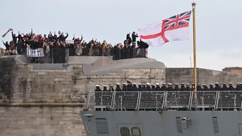 HMS Dragon has begun its journey to the eastern Mediterranean to join the UK's defensive operations in the region. The Type 45 destroyer left its dock in Portsmouth on Tuesday afternoon, having only recently come out of maintenance. It will be the UK's first and only warship in the region when it arrives in about a week. It comes hours after the government placed a naval support ship, the RFA Lyme Bay, on "heightened readiness" to be sent to support British nationals in the Middle East if needed. HMS Dragon's primary role will be protecting RAF Akrotiri, which was hit with an Iranian-made drone earlier this month. The strike was said to have caused "minimal damage" to a hangar on the base. Defence Secretary John Healey told the House of Commons on Monday that the drone had come from Lebanon or Iraq. Three US bombers also took off from RAF Fairford in Gloucestershire on Tuesday. Prime Minister Sir Keir Starmer earlier approved "defensive" US action against Iranian missile sites from UK bases. HMS Dragon is armed with Sea Viper missiles and will be assisted by Wildcat helicopters from the 815 Naval Air Squadron equipped with Martlet missiles capable of taking out aerial drones, the Royal Navy said. "My ship's company have worked tirelessly to ensure we are ready for our mission to the eastern Mediterranean," the ship's commanding officer Cdr Iain Giffin said in a statement. Healey praised the efforts of the Royal Navy in preparing HMS Dragon for deployment, saying: "What is normally six weeks of work was completed in just six days - a remarkable effort delivered round the clock. The very best of Britain in action." Meanwhile, the RFA Lyme Bay has been told to be prepared to deploy "as part of prudent planning... should she be needed to assist in maritime tasks in the eastern Mediterranean", the Ministry of Defence has said. The auxiliary vessel is equipped with an aviation platform and has medical facilities, meaning she can play a role in evacuations and medical treatment. The MoD would not be drawn on what the primary purpose of the RFA Lyme Bay would be were it to be deployed, but its facilities as a support ship make it well-suited for humanitarian and disaster relief missions. The vessel is currently in Gibraltar and has not yet been tasked. The MoD stressed the change in status was precautionary. The RFA Lyme Bay is a Bay Class landing ship, not a warship, and its primary function is to deliver troops, vehicles, stores and ammunition in the case of amphibious assaults. The Sun reported that the RAF is due to deliver military medics and a mobile field hospital that can operate aboard the ship. HMS Prince of Wales - one of the UK's two aircraft carriers - has also been placed on heightened readiness, with defence sources telling the BBC that its crew had been told to be ready to set sail in five days. However, this was not explicitly for a potential deployment to the eastern Mediterranean and an MoD spokesperson said on Tuesday that the ship's scheduled deployment to the north Atlantic had not changed. Elsewhere, the MoD said three Wildcat helicopters with anti-drone capabilities had arrived in Cyprus this week, alongside a Merlin helicopter. Healey told MPs that RAF Typhoon fighter jets had taken out two Iranian drones, one over Jordan and a second heading towards Bahrain. F-35s were also destroying drones over Jordan, the defence secretary said, while UK jets were also conducting defensive sorties over the United Arab Emirates. Counter-drone units were defending against attacks on coalition bases in Iraq, he added. A drone heading towards coalition forces was taken out overnight, the MoD said on Tuesday. The UK government has not joined the US and Israel in offensive operations against Iran, but has offered the US use of UK airbases to conduct what it calls defensive strikes against Iranian missiles and launchpads. It has stressed that it has been positioning military assets in the region since January and has sent more since the conflict began. The UK government has faced accusations of not responding to the crisis in the Middle East quickly enough. Conservative leader Kemi Badenoch said: "We have put bases in other people's countries, and those countries are saying we're not doing enough to help them. I think that's absolutely shocking." A number of Gulf nations housing US facilities have been targeted with Iranian missiles and drones during the war, which began on 28 February. Bahrain and the UAE are among Gulf nations that have been subject to strikes by Iranian drones and missiles, including some that have hit civilian targets such as hotels and airports. With airspace restrictions still in place across the region, commercial flights in and out of the region are slowly resuming after many airlines cancelled services. However, British Airways said on Tuesday that it was cancelling its flights to Amman, Bahrain, Doha, Dubai and Tel Aviv up to and including 28 March. The UK government has arranged evacuation flights for British citizens in the region. The first flight landed at Stansted on Friday. Around 45,000 UK citizens had been evacuated so far. The defence secretary also told MPs that the warship HMS Dragon would set sail for the Mediterranean in the next couple of days. The Cypriot government has criticised how the UK has handled information sharing after drone attacks. The ยฃ1bn deal for 23 aircraft will help to secure the future of the site in Yeovil. HMS Dragon is being loaded with ammunition in Portsmouth having just recently come out of maintenance. The explosives team in charge of clearing the area say more than 30 staff took part in operations.
