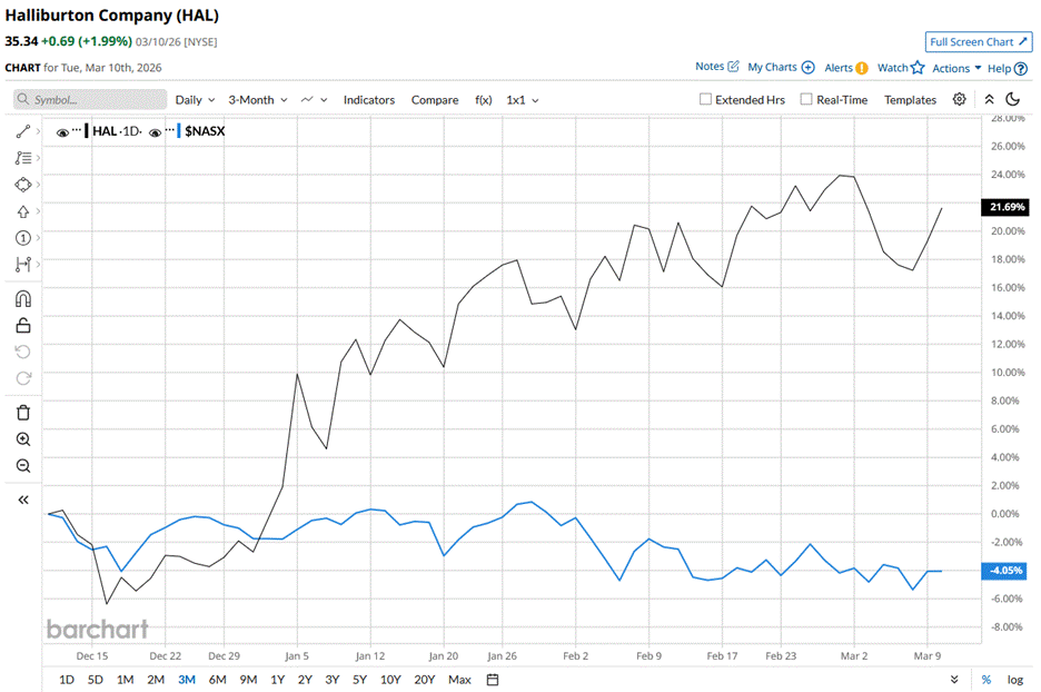 Houston, Texas-based Halliburton Company (HAL) is one of the largest oilfield service providers in the world, offering a variety of equipment, maintenance, and engineering and construction services to the energy, industrial and government sectors. The company has a market capitalization of $29 billion and operates through Completion and Production, and Drilling and Evaluation segments. Companies with a market cap of $10 billion or more are typically referred to as "large-cap stocks." Halliburton Company fits right into that category, with its market cap exceeding this threshold, reflecting its substantial size and influence in the oil and gas equipment and services industry. 2 Energy Stocks to Watch as Strait of Hormuz Risk Spikes Oil Volatility Strait Talk: How To Play Oil Volatility Right Now as the Strait of Hormuz Shakes Stocks Nat-Gas Prices Fall on Hopes for Near-Term End to the War in Iran Stop Missing Market Moves: Get the FREE Barchart Brief – your midday dose of stock movers, trending sectors, and actionable trade ideas, delivered right to your inbox. Sign Up Now! HAL stock reached its 52-week high of $37.03 on March 02, and has slipped 4.6% from that peak. The stock has surged 21.7% over the past three months, outperforming the Nasdaq Composite ($NASX), which declined 4.1% during the same time frame. Over the longer term, the scenario has stayed the same. HAL is up nearly 42% over the past 52 weeks, outperforming the 29.9% return of the NASX over the same period. Meanwhile, HAL has been trading above its 200-day and 50-day moving averages since last year, signaling bullish momentum. Amid rising geopolitical tensions and concerns about disruptions to global oil supply, energy stocks have found renewed interest from investors – and Halliburton has been one of the beneficiaries. As oil markets tighten, exploration and production companies tend to ramp up drilling activity to secure supply, increasing demand for oilfield services where Halliburton plays a crucial role. The company’s strong operational performance has also supported the rally. Over the past year, Halliburton has delivered solid results driven by resilient international operations, disciplined cost control, and a consistent focus on returning capital to shareholders. Notably, the company has been paying dividends since 1972, reinforcing its long-standing shareholder-friendly approach. Investor confidence was also strengthened after Halliburton’s Q4 2025 earnings release on Jan. 21. The company reported $5.7 billion in revenue, slightly higher year over year and ahead of Wall Street's expectations, while adjusted EPS of $0.69 also topped estimates, helping push the stock higher. When stacked against its closest peer in the oil and gas equipment and services industry, TechnipFMC plc’s (FTI) shares have climbed 156.5% over the past 52 weeks, outperforming HAL stock. Wall Street’s view of HAL stock is cautiously optimistic. Among the 25 analysts covering the stock, the overall consensus rating is “Moderate Buy.” Its mean price target of $36.92 suggests 4.5% upside potential from current price levels. On the date of publication, Sristi Jayaswal did not have (either directly or indirectly) positions in any of the securities mentioned in this article. All information and data in this article is solely for informational purposes. This article was originally published on Barchart.com