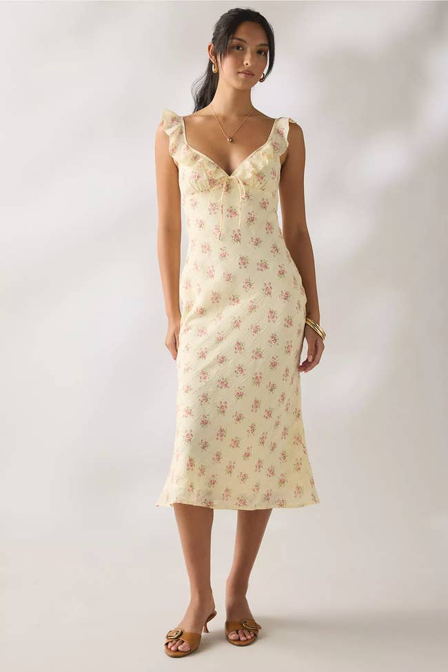 We hope you love our recommendations! While every product is independently chosen by our editors, BuzzFeed and our publishing partners may collect a share of sales or other compensation from the links on this page. You can read more about how our affiliate partnerships work in our Editorial Standards & Ethics Guide. We agree that all eyes should be on the happy couple... but boy will it be hard when you walk in dressed this good. If you've got a fridge full of wedding invites, I have no doubt that you're already thinking, "What the heck am I going to wear?". From garden party attire to black tie, we've rounded up the most gorgeous long flowing gowns, mini statement dresses, (of course) everyone's favorite Reformation dress, and every worthy floral and ruffled dress in between. Cheers to the bride, the groom, and to you having the best wedding guest looks around. Unless otherwise specified, all sizes in this post are listed in women’s. Get it from Urban Outfitters for $58 (available in sizes XS–XL). Promising reviews: "I ordered this last minute for a formal event, and let me tell you, I was pleasantly surprised! It runs true to size and [fits] you in all the right places... a MUST-BUY!" —Ryan "My new FAVORITE wedding guest dress. This dress was soooo perfect for our friend's summer wedding...The material is so thick and beautiful. I received sooo many compliments in this dress." —Amazon Customer Get it from Amazon for $49.99 (available in sizes XS–XL and in 24 colors). Promising review: "This was the perfect wedding guest dress. It is so stretchy and comfortable but still formal for an event." —Jessica Fee Get it from Amazon for $9.99 (available in sizes XS–XL and in 25 colors). Promising review: "LOVE this dress. Wore this to my sister’s wedding in the Dominican Republic. I received many compliments, and I didn’t feel squished... it was perfect with heels, a little long without. I had room to dance, it felt airy, I loved how it fit. Really happy with this one!" —Kathryn Tamondong Get it from Amazon for $69.99 (available in sizes 0–30 and in 31 colors) Promising review: "Stunning! I am short and a bit curvy, so usually shapeless column silk dresses like this are... too tight,... too loose, or look like a tent on me. But this dress is magic! It has just enough room to skim the body without being too loose or too tight. Super comfortable, and I got so many compliments. And it came in petite length so no hem required! Love love love it." —AngelaRegina Get it from Anthropologie for $168+ (available in sizes XXS–3XL, in standard, petite, and plus fits, and in three colors). Promising reviews: "A classy vintage feel with the niceties of being modern. This dress fit exactly as described [and] it has just the right amount of stretch... I've really dressed this up (I wore it to a wedding), and then it's great for a more casual setting, too. I've gotten so many compliments...but the main thing was how I felt like 'A Lady' wearing it! It's a real confidence booster!" —Gr8ful Nurse "A must-buy! I purchased two of these dresses (one for my daughter and one for myself) to wear to a wedding. We received so many compliments. We will be ordering this dress in more colors. It’s beautiful and comfortable!" —Slau Get it from Amazon for $39.99 (available in sizes S–XXL, 18 colors, and in straight pencil or fishtail styles). Get it from Boohoo for $39.20 (originally $98; available in sizes 12–24). Promising reviews: "I got sooo many compliments on this dress, and I felt super comfortable and stylish while wearing it! I got the blue one, and it's the perfect color for the beach or a summer event. The material is lightweight, and it moves gracefully while you walk. You can wear off the shoulder or on the shoulder." —Kristy and Norris Hartog "Love this midi/maxi off-the-shoulder ruffle dress, it's perfect for spring, summer, and vacations! I personally would style it up for summer weddings too! The fit is great [and] the ruffle is definitely trending, highly recommend." —Nikita C. Get it from Amazon for $37.98+ (available in sizes XS–XL and 15 colors). Promising review: "Just get it, perfect for a summer wedding! I was a little hesitant at first because of the shoulder flower, but honestly, this dress was beautiful... It fit beautifully, and the biggest perks were: 1) didn’t show a lot of wrinkles because of the fabric and print, 2) didn’t have me looking like a sweaty mess despite the very hot weather, 3) has some stretch and is very lightweight (but not see-through!). Be mindful the slit is high, I wore bike shorts under." —Kailey McEvilly Get it from Amazon for $49.99+ (available in sizes 6–18 and 17 colors). Get it from Reformation for $298 (available in straight sizes 0–12 and in seven colors/patterns, and in plus sizes 14–24, in three colors/patterns). Promising review: "I don’t ever write reviews, but had to because this dress is literally EVERYTHING!! It’s so pretty, and the fabric is high-quality. I just wish for more occasions to wear it!!" —Norah Barnes Get it from Amazon for $64.99 (available in sizes 0–28 Plus and in 13 colors). Promising reviews: "This dress is perfect! It fits my body well. The draping and ruching [is great]... I got so many compliments. Honey, the color — rich! Very saturated." —Sheila D. "I absolutely love this dress. My son got married in October, and it was perfect for the day. The blue is stunning, and the material is beautiful. It surpassed my expectations, and I will be buying another color!" —Bdale Get it from Eloquii for $75.98 (originally $189.95; available in sizes 14–32 and in three colors). Promising review: "I was worried about ordering this dress because some of the reviews stated that the sizing is weird. I'm 5'4" and around 112 lbs, so I ordered an XS, and it's PERFECT! I wore it to my brother's wedding and got so many compliments. The straps being adjustable helped to make it a perfect fit. Thi
