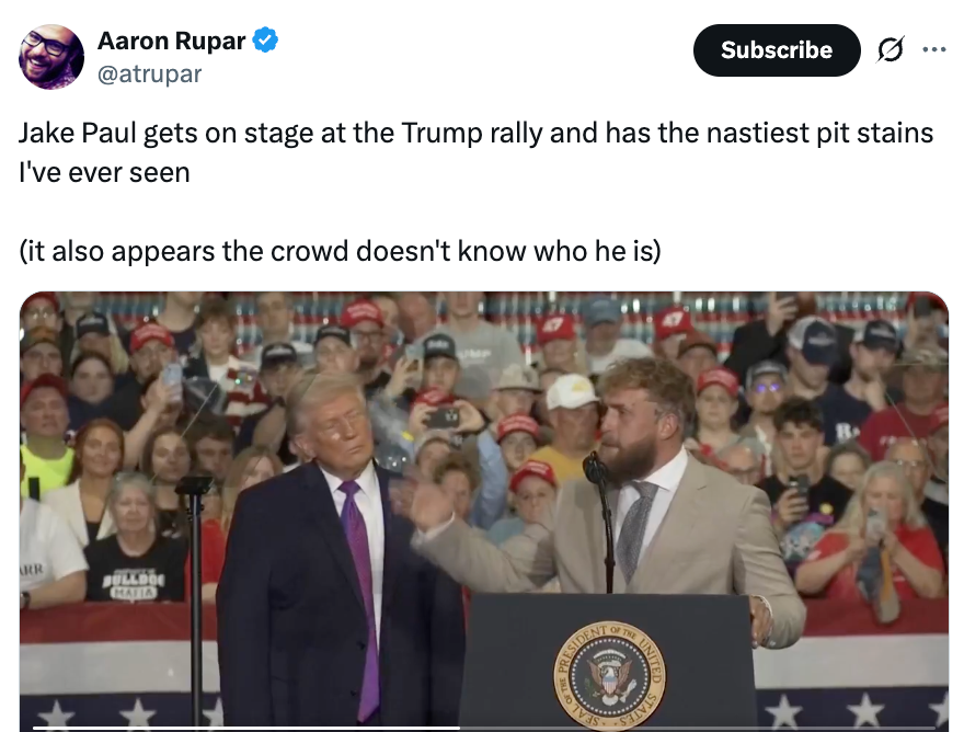 Trump endorses Jake Paul for political office pic.twitter.com/0HGHMccX4l