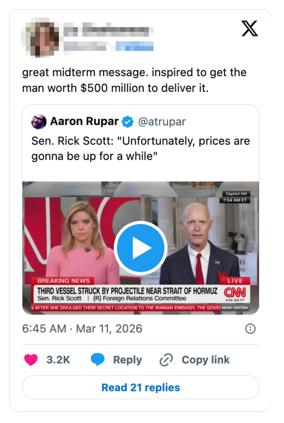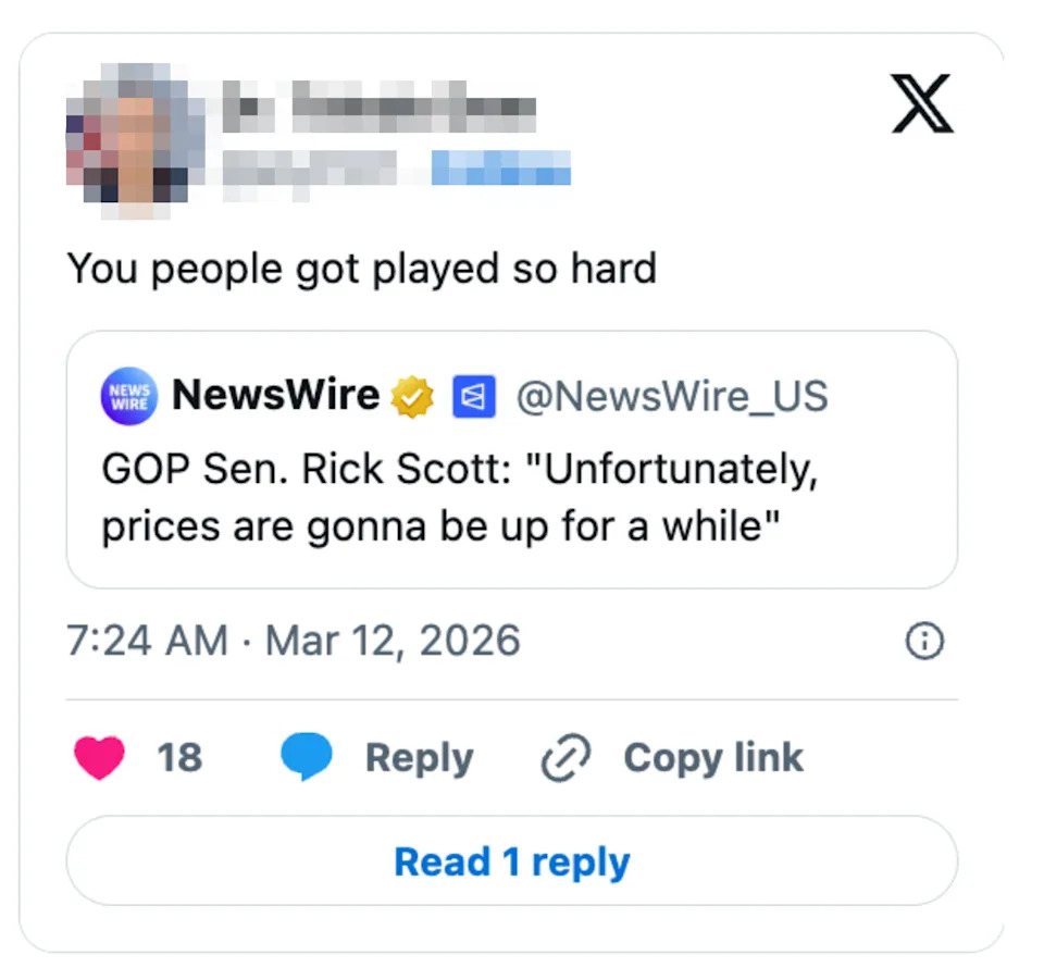 The Whole Internet Lost It After GOP Sen. Rick Scott Said Prices Are "Unfortunately" Going Up… And Yes, He's Reportedly Worth $500M