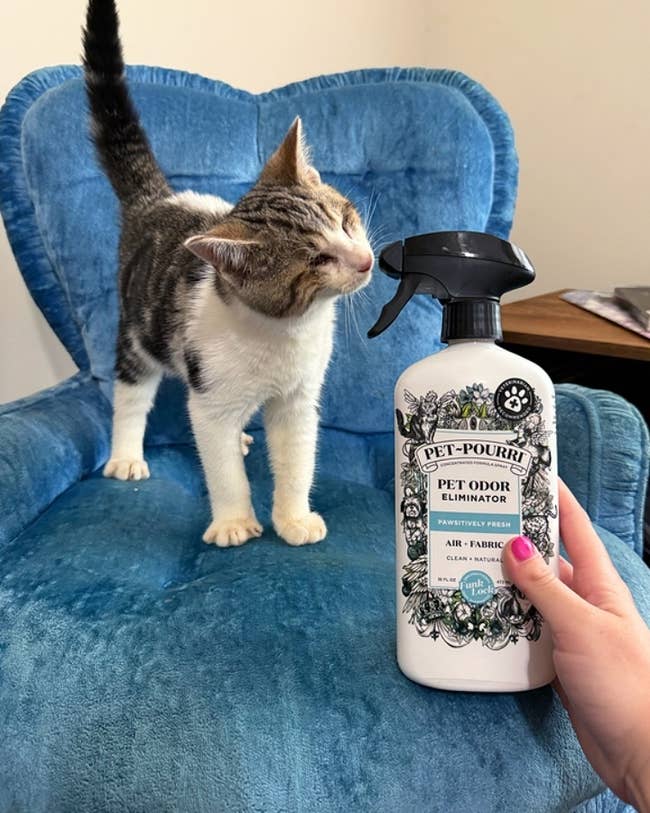We hope you love our recommendations! While every product is independently chosen by our editors, BuzzFeed and our publishing partners may collect a share of sales or other compensation from the links on this page. You can read more about how our affiliate partnerships work in our Editorial Standards & Ethics Guide. Because loving your pet should not mean your home smells like a mystery you are afraid to solve. Promising review: "I live in an apartment complex, and I don't have a detachable shower head. My husky and my shepherd definitely needed one, so I can bathe them at home. This thing is amazing; it just pops on, and no tools are required. It is the best thing I have bought hands down. My dogs love it too." —Kaiza Get it from Chewy for $29.99 (originally $39.99). Use it with the Pet Pro Oxy formula to protect against future stains, too! Promising review: "I give 5 stars. This thing saved me during a not-so-fun dog emergency. My dog had an upset stomach, and this cleaned it up way better (and faster) than paper towels ever could. Strong suction, easy to use, and actually works on gross, real-life messes. My only regret is not ordering it sooner; I could’ve avoided a lot of gagging. If you have pets, this is a must." —Jennifer M Get it from Amazon for $119.97+ (also available in five other styles). Promising review: "With three cats and two dogs, it’s almost impossible to keep my hardwood floors and carpets clean. My three-step process of sweeping, then vacuuming, then mopping has been condensed into just one step with this thing. I can clean all my floors in just 15 minutes instead of 45!! My hardwood floors look beautiful, and my carpets have never had less fur and dirt! It also effortlessly cleaned up dog throw-up from my rug. The self-cleaning mechanism for the roller is incredible, too! I’m seriously over the moon about this thing." —:) Get it from Amazon for $169.99 (also available in two other styles). Promising review: "Smells amazing! Truly seems to eliminate pet odor, not just sit on top of it. Makes the house smell fresh and clean. Very large bottle for the price." —Devon Lang Get it from Amazon for $14.99+ (available in three scents and in a two-pack). Promising review: "My Doberman had thrown up on my 100% wool rug about two months ago. I shampooed and washed the spot by hand every week for three weeks. I could still smell the sourness from the vomit. I could not get that smell out of my rug even after all that scrubbing. I was at my wits' end and thought I would have to throw my rug out! I bought this to try, sprayed it all over the area, and vacuumed. I knew immediately that the smell was gone! AMAZING! Anyone that owns pets needs a bottle of this in their house. I will never buy anything else now!" —KoCo Get it from Amazon for $17.96+ (available in two sizes and two scents). One Fur All is a small biz that specializes in home fragrances for pet owners. And check out our Pet House Candle review for more deetz! Promising review: "Oh my gosh, these things are wonderful!!! With two large dogs in the home, I feel like I'm fighting a constant battle against funky dog smell. Light these up, and rest assured, the smell is vanquished. Even better, it helps quickly battle the unfortunate smells that occur when our older dog has accidents in the home. I feel so much more confident having guests in the home, not worrying that my house smells like 'dog.' The con is the price — yes, these are way more expensive than some other candles. However, you definitely get your money's worth. I burn them pretty frequently for a few hours at a time, and they're still going after two months!" —Smith Get it from Amazon for $23.99 (available in 32 scents and in two-packs). Promising review: "We picked this up after our two Frenchies had a bath at the vet and smelled so good for so long! It’s a clean smell, not overbearing. Their fur stays super soft, too! Highly recommend." —Amazonia Get it from Amazon for $16.99+ (available in two sizes). Promising review: "I have used this product for years — puppies, adult dogs, senior dogs, healthy and ailing, and I would not be without it. Accidents happen, and when they do, this product removes the evidence — no smell, no stain." —Connie Get it from Chewy for $13.57+ (originally $15.99+, available in two sizes). Promising review: "This does more than control smell. It absorbs moisture really well, which helps prevent urine from pooling or leaking to the bottom of the box. The litter stays drier, cleaner, and easier to scoop, and the box itself doesn’t get that gross buildup as fast. It blends right into the litter without making a mess or leaving residue, so overall cleanliness is noticeably better. The bottle capacity is generous, and since you only need a small amount each time, it lasts a long while. Because of that, the value for money is great. One bottle goes much further than expected. If you want better moisture control, less odor, and a cleaner litter box without constantly replacing litter, this is absolutely worth it." —Jamie Promising review: "OMG this is disgusting!!! I hope this isn't all just cat pee that shows up cause there is a lot! I bought this because I thought my cat was peeing in one room and couldn't find the exact spot, so I bought this. Found the spot and more. Would recommend." —Momof3boys Promising review: "Bought these for when my long-haired Dachshund puppy lies down in the dirt on walks or has a little poop left on her butt. They've been great for when she's just a little dirty but doesn't need a full wash down in the bath. They are virtually unscented, very soft, and have been moist enough to get the job done while not being dripping wet. Great product!" —Katelyn S. Get a 100-pack for $9.99 (available in three scents, unscented, and in other multipacks). Promising review: "Initially, I bought this because I’m potty training a puppy, and it’s not going great. This product really worked