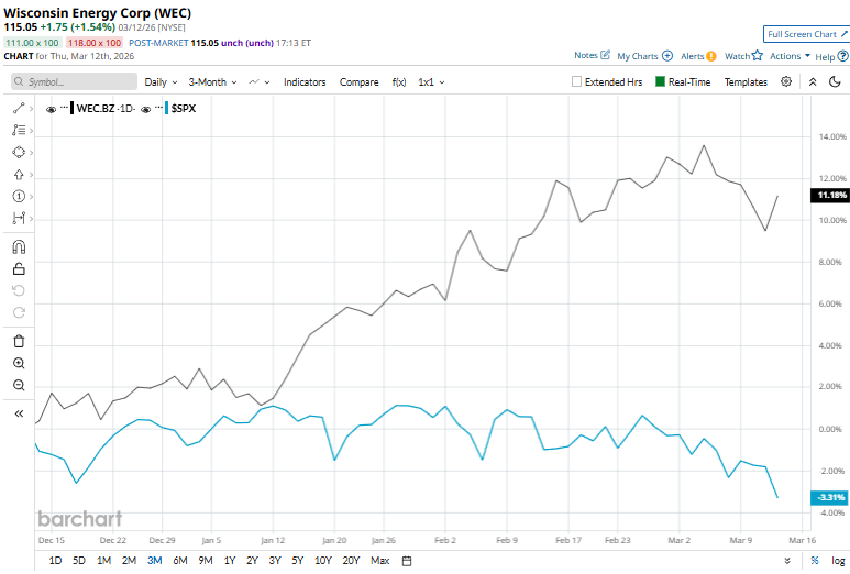 Valued at $36.9 billion by market cap, WEC Energy Group, Inc. (WEC) is a prominent diversified utility holding company headquartered in Milwaukee, Wisconsin. The company is primarily engaged in the generation, transmission, and distribution of electricity and natural gas, serving millions of customers across Wisconsin, Illinois, Michigan, and Minnesota. Companies worth $10 billion or more are generally described as “large-cap stocks,” and WEC perfectly fits that description. The company’s operations are largely regulated by state utility commissions, which provide stable revenue through approved rates and infrastructure investments. In addition to traditional utility services, WEC also invests in renewable energy projects such as wind, solar, hydroelectric, and battery storage, reflecting a strategic shift toward cleaner energy generation and long-term sustainability. SoFi Stock Outlook: Can SoFi Technologies Recover After a 30% Drop? Stocks Slump on Iran War and Credit Woes Qualcomm Stock Warning: Why Bank of America Is Betting That QCOM Will Underperform Tired of missing midday reversals? The FREE Barchart Brief newsletter keeps you in the know. Sign up now! Despite its notable strength, WEC slipped 2.7% from its 52-week high of $118.18, achieved on Oct. 22. Over the past three months, WEC stock surged 10.8%, outpacing the S&P 500 Index’s ($SPX) 2.3% fall. Shares of WEC rose 4.1% on a six-month basis, outperforming SPX’s 1.3% rise. However, the stock climbed 9.8% over the past 52 weeks, underperforming SPX’s 19.2% returns over the last year. To confirm the bullish trend, WEC has been trading above its 50-day and 200-day moving averages since mid-January. WEC Energy Group has lagged the broader market over the past year primarily due to the defensive nature of utility stocks and company-specific pressures. While the broader market has been driven by strong gains in high-growth sectors like technology, regulated utilities such as WEC typically deliver slower earnings growth and attract income-focused investors. In addition, earnings misses, rising operating costs, and challenges with regulatory and infrastructure investments have weighed on investor sentiment. In the competitive regulated electric utility industry, Xcel Energy Inc. (XEL) has taken the lead over WEC, showing resilience with a 10.2% uptick on a six-month basis and 17.4% gains over the past 52 weeks. Wall Street analysts are reasonably bullish on WEC’s prospects. The stock has a consensus “Moderate Buy” rating from the 19 analysts covering it, and the mean price target of $122.73 suggests a potential upside of 6.7% from current price levels. On the date of publication, Kritika Sarmah did not have (either directly or indirectly) positions in any of the securities mentioned in this article. All information and data in this article is solely for informational purposes. This article was originally published on Barchart.com