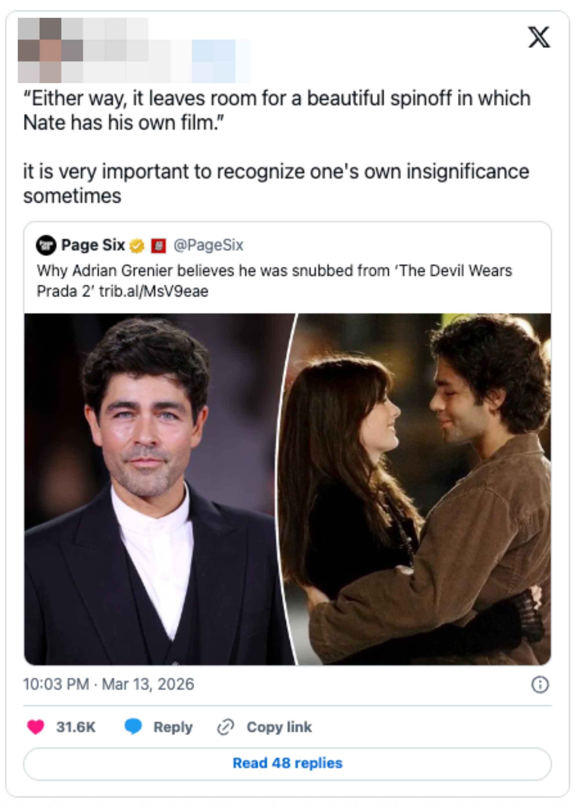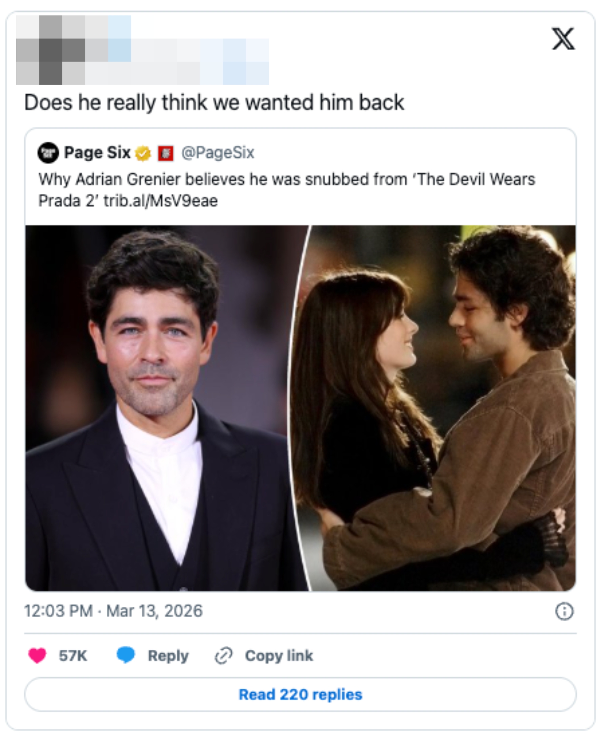Adrian Grenier's Response To His "Devil Wears Prada 2" Snub Has Everyone Saying The Same Thing