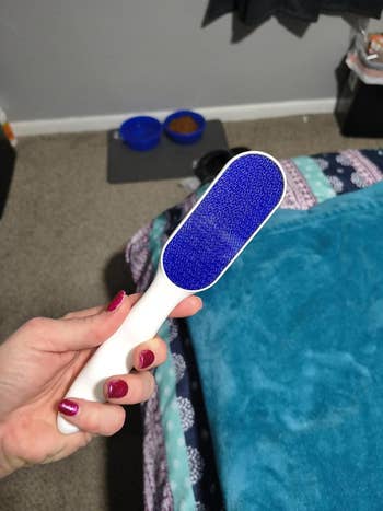 Promising review: "I'm not kidding, this is literally the best foot file ever. I recently moved to a drier climate and have been struggling with dry skin on my feet, and nothing worked until now. I've tried pumice stones before, but they did not even come close to the results I got with this foot file. It is super easy to use and comfortable to hold, with a sturdy handle and just the right amount of grit. It exfoliates really well without hurting at all. I tested it on one foot after soaking in warm water, and one foot dry. I definitely preferred using it after soaking because my results were much better, but I love that it also works great on dry skin with no issues. I also love that it is reusable and easy to clean. My feet have honestly never felt this soft since moving to this climate, not even after a pedicure. I am so excited to keep using this product." —Dana