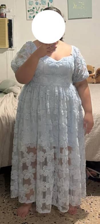 Promising review: "This dress is a showstopper! I ordered it for family pictures, and it didn’t disappoint. The material is super soft and not see-through at all." —daniel cowen