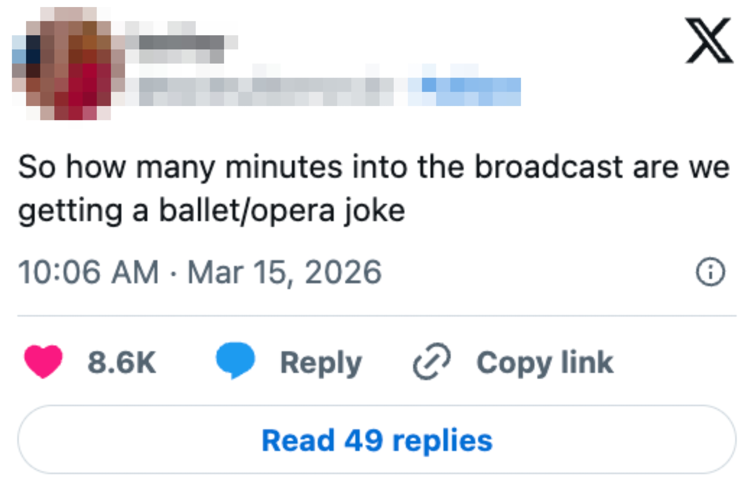 Hiiiii, I'm Bella, a Costa Rican-American writer based in Southern California on the trending news team here at BuzzFeed. Editor's Note: While we can't endorse what X has become, we can bring you the worthwhile moments that still exist there, curated and free of the surrounding chaos. “and the winner of best actor goes to… what the hell? HUDSON WILLIAM!” pic.twitter.com/Ek9qGShmme not predicting the oscars this year just along for the ride pic.twitter.com/BUAiHg9GLj Timmy is gonna do this as an apology to the opera community if he wins pic.twitter.com/rCjqgwqviI what if he starts doing this mid acceptance speech as a tribute and an apology to the opera and ballet people pic.twitter.com/xkNf1bPaot “and the oscar goes to…. RYAN COOGLER” pic.twitter.com/pXdlh33jwS