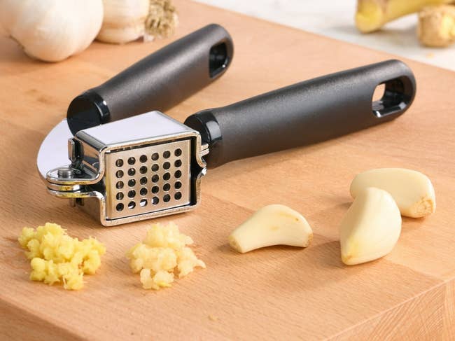 We hope you love our recommendations! While every product is independently chosen by our editors, BuzzFeed and our publishing partners may collect a share of sales or other compensation from the links on this page. You can read more about how our affiliate partnerships work in our Editorial Standards & Ethics Guide. Including an immersion blender that doubles as a vegetable chopper, so you can make delicious soup. Promising review: "So far, every marketing claim has been 100% true. I'll be replacing my 20-year-old All-Clad set with a set of these." —David Promising review: "Nice, and sharp, and easy to handle. Love the floral designs." —Moby The stackable set includes a 5-quart saucepan, a 10-inch deep wall fry with a helper handle, a 3.5-quart sauté pan, two universal lids, and three scratch-proof inserts. Promising review: "This set of cookware pleasantly surprised me. The set is solid and well-constructed. The interchangeable lids also help in reducing space. The set also has an extremely nice nonstick coating throughout. Very nice set and at this very reasonable price point, it's a no-brainer. Jump on this if you can, you won't regret it." —willisa Promising review: "I love this tool. I have only made three cakes, so I'm just starting out. My first time around I didn't have this tool and I really struggled. With my two most recent cakes, I used this tool, and my icing was so smooth and way more professional-looking. Super impressed!" —Emily Promising review: "The six-stage angle system takes the guesswork out of sharpening, and switching between angles feels intuitive even if you're not experienced with sharpening tools. The design is straightforward, and the instructions are clear enough that you can start using it right out of the box." — Koushik Promising review: "This design is my favorite of all my Nordic Ware bundt pans. Cakes turn out flawless and super easy to clean. Made a cake for an auction at a fundraiser, and it sold for $90. This design is a showstopper." —Vicki Promising review: "I love fresh garlic, and a good press is hard to find. I purchased this one because my good, expensive one broke. I have to say that I am truly impressed with the feel, quality, and performance of this budget-priced garlic press. I started out with one clove at a time, then moved to two and three without a second thought. I was concerned about the handle and materials after reading the reviews, but I can assure you that I feel no flex or give in the handle, and I'm a man with strong hands. This is by far the best garlic press I've owned, and I've been around for a bit." —Jerry Promising review: "Looks good, easy to use, and is very effective! Very good value for the money. If you like crisp fries (potato and sweet potato) and vegetables (broccoli, cauliflower), and you want them in 10 minutes or less, this is the unit for you! The unit is also very easy to clean." —Val R Price: $159 (available in seven colors) Promising review: "It's great to have several timers when cooking. I designate a color to each cooking project (as needed), as I bake a lot of bread — these really help..." —Georgia Promising review: "I don't dislike anything about these spatulas. What I like about them is that they are actually better quality than I expected. I like their size and that they are stainless steel. They are easy to handle because they are not too big. They are also thin enough to easily maneuver under a delicate piece of fish or a fried egg, but not so thin as to be flimsy. The price was also fair and not outrageous for two spatulas. They were a good purchase for me!" —anonymous Promising review: "Many thermometers to choose from. Glad I picked this one. Longer, which makes it so much easier to use!" —Peggy Promising review: "My KitchenAid broke after three years of non-heavy use (maybe used once a week or every two weeks), and I was going to look into getting it fixed since I bought it new at about $400. I decided to buy this, and holy crap, it's so good! I have made fresh dough with it, no problem, cookies, cakes, and my own butter with it. It greatly outperforms my previous KitchenAid, and it's super cute! My KitchenAid would get very hot when making dough, and this mixer handles it like a champ. I LOVE IT!!!!" —Hannah Promising review: "Great knives for the cost. Love the covers for the knives that are included. Great protection for the edges, and also when you get them out of the drawer. Protects your fingers from getting cut." —Vicki Promising review: "I learned about using quality pans while working at a bakery. Quality pans bake your goods more evenly. You're taking the time to bake, so make it as good as it can be. A quarter sheet is half the size of your typical baking sheet or cookie sheet. These are not lightweight pans and should last you years and years. You'll notice the difference and will never go back to those thin, cheap pans." —Ellen Promising review: "This actually works SO well! I don't do many reviews, but I felt I should for this product. I made an omelette using 4 eggs and maybe a little less than 1/4 cup of unsweetened almond milk. I put it in for 2:30. I was amazed how evenly it cooked, and it was the fluffiest omelette I've actually ever had. Good size and very easy to clean. High-quality construction. I can't wait to try the poacher, too. It also gives a little guide on how long to cook each type of item. Overall, great product. I love it!" —Sarah Promising review: "It's EVERYTHING I wanted in a blender. It quickly purees to perfection. Easy to use and easy to clean. I love the 16-oz cup, which is the right size for my individual smoothies, which consist of more vegetables than fruit. And the fact that it can crush and puree hard vegetables such as beets, carrots, cabbage, cauliflower, and broccoli, and ice is no problem, which is indicative of the power of its motor! Plus, it doesn't take up much countertop space at all." — sanaa Promising rev