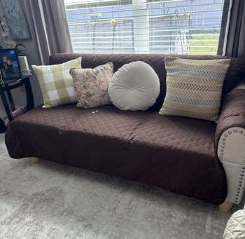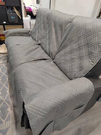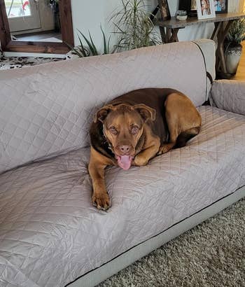We hope you love our recommendations! While every product is independently chosen by our editors, BuzzFeed and our publishing partners may collect a share of sales or other compensation from the links on this page. You can read more about how our affiliate partnerships work in our Editorial Standards & Ethics Guide. Your couch was an investment. It's worth protecting from dirt, claws, and pet accidents. We know you love your slobbering and accident-prone pup. Enough to let them chew their favorite bone on the sofa. But maybe you don't love that their slobber and accidents have turned your once-pristine couch into a bit of a landfill. Never worry about stains, scratches, or slobber again! Whether you're trying to prevent your leather beauty from accumulating claw marks or you just want something that'll keep fur off your prized velvet sectional, this post has got you and your couch covered! Not only do these covers have anti-slip backing, but they're also fitted to each individual couch cushion, so they're reallllly on there, ya know? Made of premium jacquard fabric (with a chic cross-hatch design) and a bit of Spandex, they won't wrinkle *and* will look like they've been shaped specifically for your couch. They're also water-resistant and offer stain and scratch protection if you're into that kind of thing. Promising review: "Everything fit perfectly, and it's sooo easy to clean up. I have four cats and two dogs, so between all of the fur, dirt, and occasional fur balls, I appreciate the ease of removing the covers for a quick cleanup. No more pulling out the shampooer. Just yank off the cover that needs cleaning and pop it in the washer." —Morgan R Get it from Amazon and Nolan Interior for $16.09+ (available in three sizes and 11 colors). Featuring a five-layer design topped with 100% waterproof TPU, this couch cover has all your basics, well, covered! It's got slip-resistant backing made of silicone because your sleepy pup tends to toss and turn when napping. I bet they're dreaming of running in the park. Promising review: "I am really impressed with this blanket. I ordered it to protect my sofa from my two very large German shepherds. So far, it has not budged, even with both dogs jumping up and settling in. The non-slip backing actually works, and the material feels durable without being stiff. "The blanket is lightweight, which makes it easy to spread over the couch, even in this big size. I chose the light taupe color, and it blends nicely with my living room. I also like that it is machine-washable, rip- and tear-resistant, and waterproof, which are all must-haves in a home with two energetic dogs. I am impressed enough that I am already planning to buy more." —Leah Alden-Jaswal Get it from Amazon for $17.94+ (available in six sizes and seven colors). I mean...you *can* give it to your dog, but dang. It's soooo soft and plush, I wouldn't blame you for keeping it for yourself. This blanket is great if you don't want something that lives permanently on your couch, and do want something that you can easily toss onto your bed or your dog's bed. And because it's double-sided — one is fleece, and the other is corduroy — this blankie is sure to keep your pup comfortable. Promising reviews: "My older bulldog sometimes does not know when she has to go out if she is sleeping. I did not want to keep her off the bed since she has been sleeping there nightly for many years. I keep this blanket on the bed all the time, just in case. She has had two accidents in the last three months, and the bed stays completely dry." —LillyAyn "My dogs absolutely love this soft, small, waterproof blanket. The blanket is ribbed and ultra soft on one side, and fleece on the other. Perfect for dogs that love to lick themselves but end up licking more of the couch than themselves." —thewitt82 Get it from Chewy for $19.99+ (available in three sizes and two colors) or from Amazon for $17.99+ (available in five sizes and four colors). Your butt and your dog will thank you for getting this padded couch cover. Cushion atop cushion? What more could you ask for? Oh, I guess you could ask for something that doesn't undermine your elegant aesthetic. Well, well, well. In addition to being ever so dashing and debonair, it's also water-resistant and has an anti-slip underside. You can even remove the cover and machine-wash the insert. Promising review: "I really appreciate this cover for several reasons. It’s soft to the touch and complements my neutral-colored sofa nicely. I also love that it’s washable, which makes maintenance easy. The grippy bottom prevents it from sliding around, and it has a streamlined design that isn't bulky. Overall, it’s a practical and stylish addition to my dog-friendly living space." —DMR Get it from Sunday Citizen for $63+ (available in three sizes and colors). As much as you love your little furball, you actually aren't that big a fan of balls of fur on your couch. No problem! This couch cover's three-layer design features a soft microfiber top layer, which is suuuuper easy to clean fur off of (just wipe, vacuum, or toss it in the washing machine). This reversible and water-resistant cover can easily be draped over your couch. And its non-slip elastic straps help keep it in place, so even if your furball has the zoomies, this cover ain't going anywhere! Promising reviews: "Two of my dogs are very heavy shedders, and dog fur is a real problem. With this cover, I can just use a whisk, broom, or vacuum to easily remove the hair. I have already washed one, and it does not shrink or look wrinkled after washing. I also have one for my loveseat, which is now technically the dogs' loveseat! :-)" —SmilenErin "This is actually my second one of these; I bought it so I could swap and wash one every couple of weeks. It's been almost two years now. The fit is good, and the design is genius — the little plastics to help tuck in are great. I only have to adjust it a little bit every few