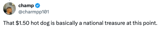"The hot dog price will not change as long as I'm around."