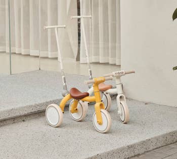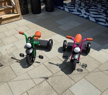 We hope you love our recommendations! While every product is independently chosen by our editors, BuzzFeed and our publishing partners may collect a share of sales or other compensation from the links on this page. You can read more about how our affiliate partnerships work in our Editorial Standards & Ethics Guide. With warmer weather finally on its way, you better believe I'm kicking my front door wide open, grabbing my tiny gremlins, and heading out to the park. If you're anything like my family (and I'm sure you are), you know that more time outdoors = and less time away from the pile of kids toys in your living room. Instead, you'll be chasing your kids as they speed away on ride-on toys and tricycles. If you're in the market for your kiddo's first trike — look no further! From an affordable Bluey tricycle and iconic options from Radio Flyer to the splurge-worthy Doona Liki Trike that'll grow with your kids for years, I'm here to help guide you in the right direction (which is, hopefully, the same one your toddler is currently running in.) This trike is a great starter option for your little one! In addition to its exciting light-up wheels (no batteries needed!), it features a three-position adjustable seat and a two-position handlebar lift to ensure kiddos can get the perfect fit. Not to mention, it has detachable baskets in the front and back, so they can stash their precious snacks or take their beloved plush toy along for the ride. It's also only 6.6 pounds, so when they inevitably ditch it to run across the playground, you won't be left with an aching back. Reviewers have also noted it's not difficult to put together — always a bonus! Promising review: "Ridiculously easy to assemble! Great directions, and a solid product for the price! Our nephew loves it and was immediately mesmerized by the lights on the back wheels! Definitely recommend!" —coralreef Get it from Amazon for $49.99+ (available in seven colors). You're never too young to get your first Harley-Davidson, right??? This one can hold up to 55 pounds, has a sturdy frame and durable tires, and a secret storage compartment in the seat. Kiddos will love riding up and down the block like they're starring in a kid version of Sons of Anarchy. My son actually got this bike as a gift a few years ago and at age 4 is still a fan! Promising review: "Such a sick little trike. My 6-year-old can ride regular bicycles but loves powering around on this in the backyard, screaming, 'How do you like the sound of my pipes?!' Adding the stickers to the bike is also a good little kids’ activity. Reasonably sturdy, but wouldn’t risk a heavier older child on it. Hopefully, the 2-year-old will be able to reach the pedals soon, as it’s light enough to be powered by a tiny person. Colors are traditional Harley, and the little storage under the seat is a cute touch. Recommended buy!" —rizalvaro To infinity and beyonnnnnnd — or at least around the block! Your toddler will love jumping right onto this trike and pedaling around the neighborhood alongside their bestie, Buzz Lightyear. There's even a button on the handlebars that'll play familiar phrases and sounds from Toy Story! This bike is ideal for younger kiddos, think ages 18–36 months. Promising review: "My kid is obsessed with Buzz right now, so when I saw this, it was a must-have, especially being at a great price. It was easy to assemble, and I had a hard time getting him inside because all he wanted to do was ride up and down the sidewalks! Great purchase!" —Cfrancis21 A trike for less than $30? Is this "for real life?" as Bluey would say. IT SURE IS! Your tyke will be over the moon excited to ride around on this tricycle — it has a bunch of cool sound effects from the show and can be assembled without tools. It also has an extra-wide front wheel to help keep them nice 'n' stable as they galavant around the neighborhood. Promising review: "Easy to put together. My little one loves this little trike, and it’s so affordable for a Bluey-themed product. We were excited to get our hands on this!" —Ashly This cute starter trike was clearly made with first riders in mind. It weighs only 5.25 pounds, has a supportive backrest, and soft, easy-to-hold handles. It can be used indoors or outdoors, luckily for you, since the second your kiddo gets on this bike, they're not going to want to get off. Promising review: "I Am Trike is a great first trike for any baby or toddler out there. I love that it has an inspirational quote on it. It was easy to assemble and seems very sturdy. It rolls great on the carpet and hard tile floor. I love that it boosts confidence in those just starting to walk that may use it as a walker, and also those that are better at walking, who can use it as a trike to ride on. It's the perfect size." —Valerie02 Get it from Walmart for $30+ (available in four colors). Honestly, when I think of "tricycle," I think of this exact bike from Radio Flyer. You simply can't go wrong with this iconic red trike! The brand has been around since the '50s, so you know you'll be putting your money in good hands. This classic trike has an all-steel frame, spoked wheels, comfy handgrips, and reliable rubber tires. Promising review: "This tricycle is of the same quality and construction (all metal) as it was in the '50s and '60s. I bought it for my 3-year-old grandson, and he loves it! It was so easy to assemble; he could have done it himself. I highly recommend this product." —Jesse E. Get it from Amazon for $69.99+ (also available in pink). This Radio Flyer trike (an Amazon exclusive!) is exactly what you want if your kiddo typically likes to ride in public places like playgrounds or parks. It features quiet-ride wheels (lovely!), an adjustable seat (to grow with your kid), a covered rear storage bin, and an easy-to-carry seat back handle. It's made from steel, so it'll definitely stand the test of time. Promising review: "The Radio Flyer Red Rider Trike is exactly 