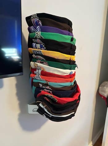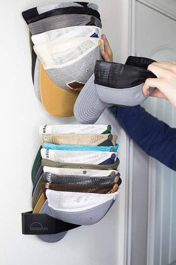 We hope you love our recommendations! While every product is independently chosen by our editors, BuzzFeed and our publishing partners may collect a share of sales or other compensation from the links on this page. You can read more about how our affiliate partnerships work in our Editorial Standards & Ethics Guide. Even something to corral leftover sauce packets in the fridge. Even when you think that you've run out of space and you can't really declutter more stuff, there's always a way to be a little more efficient. Easily eyeing all 40 of your ties at once or quickly telling the difference between your ankle-length and capri-length leggings in a snap can make a huge difference on the reg. Here are some compact organizers that'll make a huge difference. Promising review: "Such an efficient and easy way to store hats. Whoever came up with this is a genius!" —Melissa Humphrey Get it from Amazon for $19.99+ (available in white or black and individually or as a two-pack). Promising review: "LOVE this! Previously, I had an extension cord that looked messy, and got all the cords tangled, and held dog hair in the tangled mess. I found this because it was recommended on a TikTok, and I am SOOO glad I ordered it. I figured I had nothing to lose because of Amazon’s amazing return procedure! It has a nightlight and USB ports that are extremely convenient. It looks so much better and took my extension cord mess anxiety away!" —Janine D This comes in a pack of four with two pockets each so everyone can get one! And because they're clear, you'll be able to see what's inside so you can actually use it. Promising review: "I used the product to clear up space that was used for condiment packets, but they also worked out great to hold my mom’s insulin pens so they don’t get lost in the fridge." —GuVal Check out how they work on TikTok! And PS: Wonder Hanger is a small biz! Promising review: "I wish I had taken the time to take a before and after pic because I have so much more room in there now than I did before. I found the cutest tops in there that I had completely forgotten about because my clothes were crammed in the closet so tightly. Most of the time, I felt like I had nothing to wear, LOL, and now, I know exactly what I have, and it's even organized by sleeve length and color. I would definitely buy again and actually plan to buy more for my husband and children to use as well." —Mariko Lamb Get a 10-pack from Amazon for $22.90+ (available in three colors and packs of 10 or 24). Each hanger holds 10 pairs of leggings. I FINALLY caved and bought a pair of these after putting them in so many stories, and they've truly transformed my clothing organization and take up the space of about two dresses on my closet rod. And for where my leggings used to reside? It freed up nearly a third of a drawer! Promising review: "Yes...I have too many clothes. I LOVE my leggings. These saved me soooo much room! Now I have much more space, AND I can see them all easier." —Larry Seymour Get a pack of two from Amazon for $13.99. Promising review: "I bought this product in a two-pack for my T-shirts because I hate folding and putting laundry away, and thought it would be a more convenient way for me to keep my clothes organized, and Wow! When I saw how durable and well-made they were, and how much space they saved, and how easy they were to use, I bought more! They were also a great value for the money, and I was able to just walk into my closet and see all my clothes, so they were all visible as soon as I opened my closet, no more searching through drawers. The next two packs I bought, I even used to hang my hoodies; these things are super durable and sturdy. I highly recommend these little darlings for anyone trying to get organized." —Sissy Get a two-pack from Amazon for $14.99 (available in three colors as well as individually and in packs of four). Promising review: "I love everything about this item. This is my second one. We use one for Lego Duplos and the other I got for our massive Fisher-Price Little People collection. It's expensive but worth every penny! If you have to scoop small toys into a bin daily...do it. It works exactly as it says and makes cleanup of small items a breeze." —R. Stratton Get it from Amazon for $45.99 (available in four colors). Elypro is a small business in New York City making clever organization products for the home. Promising review: "I use these to organize my coffee mugs and my glasses in smaller cabinets. They not only look nicer, they save space without tilting when you try to stack mugs without support. I also use these to stack ramekins and that is also better now. These are adjustable to fit different sizes. I highly recommend these organizers!" —Amazon Customer Get a set of six (to organize 12 mugs) from Amazon for $24.99 (available in three colors). Sink Topper is a small biz that specializes in this product. Promising review: "Great for messy teenagers. Cool item for my teenager's bathroom. She likes to lay her hair/makeup stuff on it so she can keep her other bathroom decor on the sides. When she's done she puts what she was using under the sink and folds up the sink tray so it can slide under the sink as well." —Melina Get it from Amazon for $24.99 (available in two sizes and three colors). Promising review: "I was sick of my cords and compressor hose hanging off of and on top of my table saw. I saw these on Amazon and have (or had) some available wall space in my workshop. What a great solution!" —LrngToFly Get a six-pack from Amazon for $16.99 (available in other sizes and quantities). Promising review: "Good product, great space saver, would definitely recommend. The convenience of locating a tie with ease saves so much time. Would buy again!" —Tosha Promising review: "The pockets are just the right size and easy to get in and out. I have purchased before and needed more space as my earring collection continues to grow. So convenient fo
