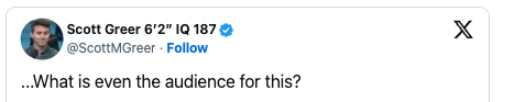 "This is legitimately the cringiest s— I have seen all week." If you must know, I based my entire personality on Seasons 2-5 of "Girls," and I'm a huge gamer. The SAVE America Act is policy so simple even a baby would support it!! 🤣🤣🤣 pic.twitter.com/8YR4h9zpaX