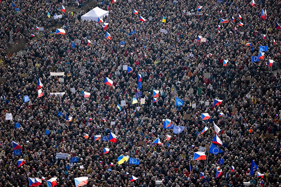 PRAGUE (AP) — Tens of thousands of people protested in Prague on Saturday against the policies and plans of the new Czech government led by populist Prime Minister Andrej Babiš. The protesters from across the Czech Republic attended the peaceful demonstration at Letná park, the scene of huge gatherings in 1989 that greatly contributed to the fall of communism. They came to express their concerns that Babiš, a billionaire, and his coalition Cabinet, are a threat to democracy, steering the country away from supporting Ukraine and toward an autocratic path. People in the crowd, who organizers estimated at 200,000, were waving Czech national flags, while one of the banners on display read: “Let’s defend democracy.” “We’re here to clearly stand against dragging our country onto the path of Slovakia and Hungary,” said Mikuláš Minář, the head organizer from the Million Moments for Democracy group, referring to the pro-Russia and autocratic leanings of those two countries. Babiš returned to power in the Czech Republic after his ANO, or YES, movement, won big in the country’s October election and formed a coalition with two small political groups, the Freedom and Direct Democracy anti-migrant party and the right-wing Motorists for Themselves. His new alliance with the groups, some of whose views are considered extreme, the government began to significantly redefine the nation’s foreign and domestic policies. Babiš has opposed some key European Union policies on environment and migration and rejected any financial aid for Ukraine and guarantees for EU loans to the country fighting the Russian invasion, joining the ranks of Prime Ministers Viktor Orbán of Hungary and Robert Fico of Slovakia. The new government is preparing a bill that critics say is inspired by a Russian law on foreign agents and would require nongovernmental organizations and individuals involved in vaguely defined political activity and receive foreign aid to register or face big fines. “This law can easily be used to restrict personal freedom,” Václav Pačes, the former head of the Academy of Sciences, told the crowd. Another plan on the agenda is to change the funding of public radio and television, a move many say would give the government control of the broadcasters. Organizers said that they decided to hold the rally after a recent decision by the lower house of parliament to reject a motion to lift the immunity from prosecution of Babiš in a $2 million fraud case involving EU subsidies. Approval would have allowed a court to issue a verdict any time soon, but the rejection of the motion means that he can stand trial only after his term in the house expires in 2029. Lawmakers also refused to agree to allow for the prosecution of lower house Speaker Tomio Okamura, the head of the Freedom party, on charges of inciting hatred. The Million Moments group said t hat those decisions divide the nation into two categories: “the ordinary people and the untouchables.” “I came to defend something that is extremely important to me,” said Michael Černohlávek, a 19-year-old student. “I know that the system we have, our freedom, can’t be taken for granted and it is important for me to protect it.” More protests are planned to follow.